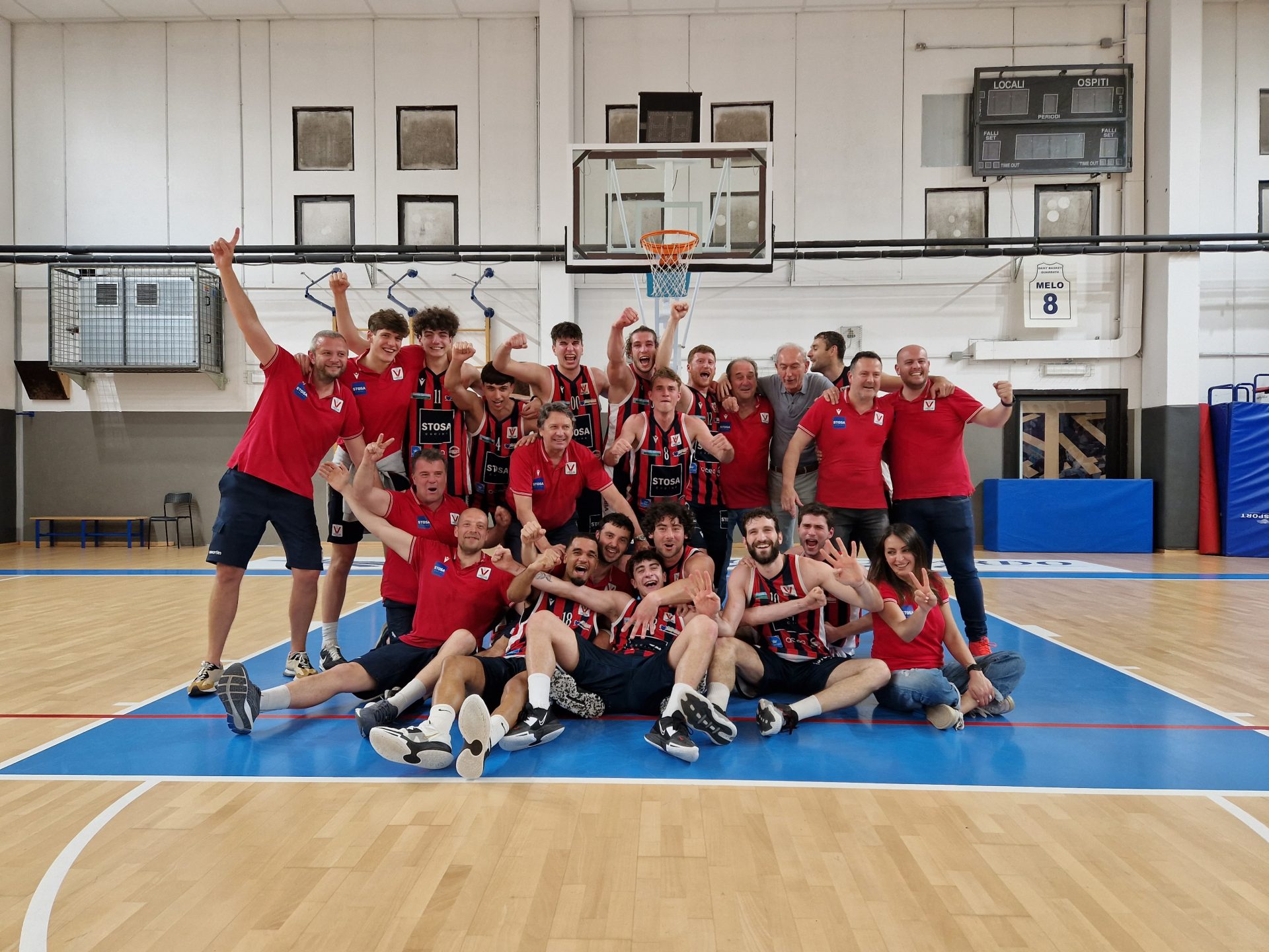 Il terzo quarto è ricco di parziali e controparziali: la Virtus scappa, Quarrata accorcia, la Stosa scappa ancora. Il palcoscenico nella terza frazione è tutto di Calvellini, che segna 5 punti in fila per chiudere il quarto sul 58-69. Nell’ultima frazione i rossoblu volano sulle ali dell’entusiasmo. Quarrata prova a reagire, ma a metà quarto la Stosa segna tre triple in fila che mandano al tappeto i padroni di casa. Finisce 66-88, la Virtus vince, chiude la serie e festeggia la promozione in serie B.
