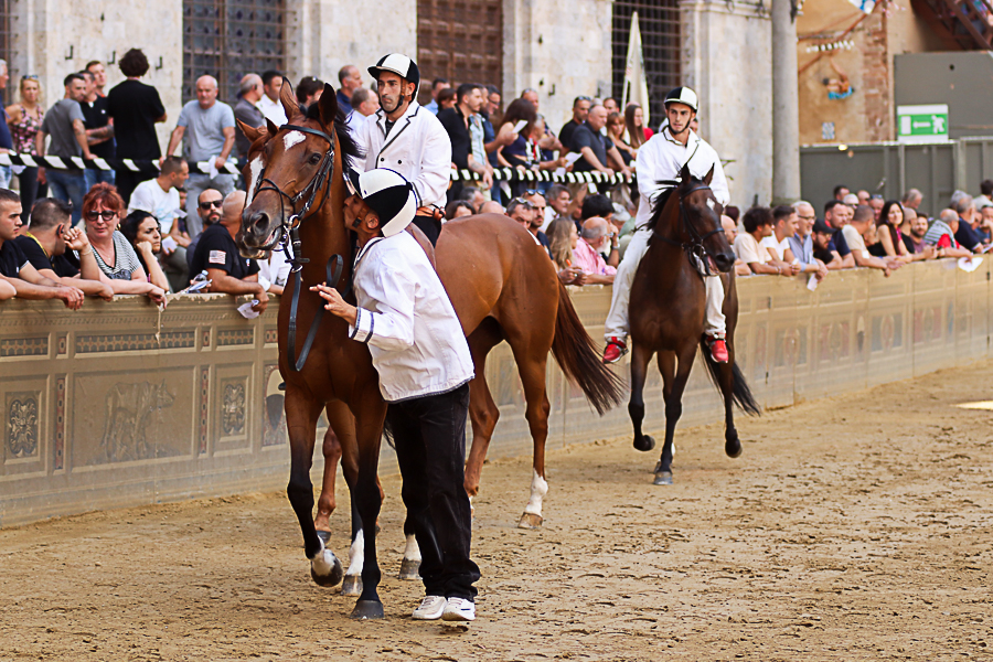 Cinque le batterie della Tratta del Palio del 16 agosto, che si sono corse stamani, in un orario inconsueto a causa della pioggia della notte. Alcuni momenti catturati dall’obbiettivo di Nicolò Ricci