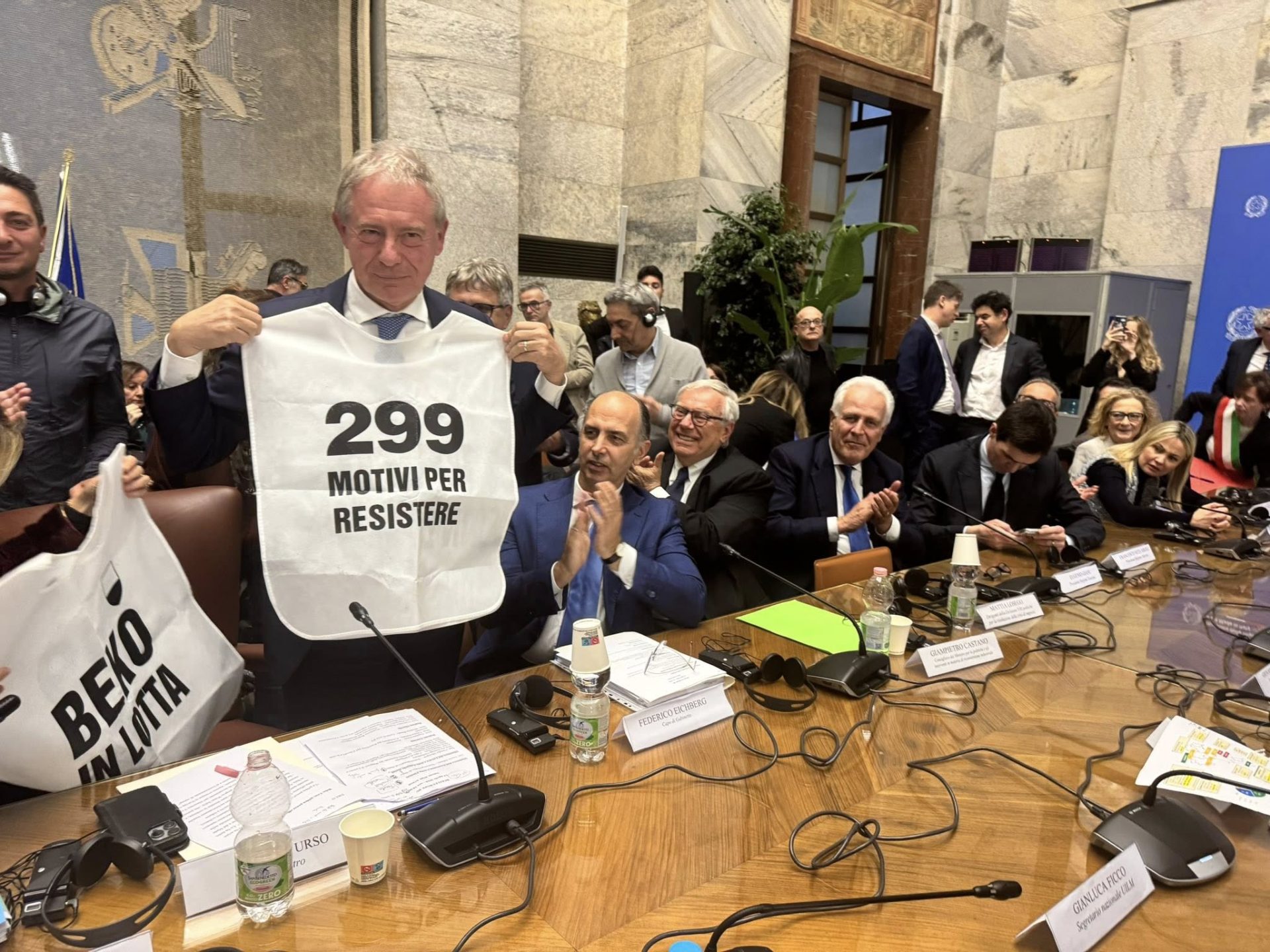Poco prima delle 20 di oggi, lunedì 14 aprile, è arrivata la firma sull’accordo con Beko alla presenza del Ministro Adolfo Urso, della sottosegretaria Fausta Bergamotto, delle sigle sindacali Fiom, Fim e Uilm, del Sindaco di Siena Nicoletta Fabio, del Presidente della Regione Eugenio Giani e della presidente della Provincia, Agnese Carletti. In questa occasione il Ministero Urso ha anche indossato la pettorina che in questi mesi di presidio ha contraddistinto i lavoratori senesi.