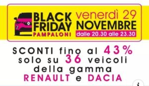 Secondo un’altra tesi, l’origine del momento deriva dal traffico sulle strade e dalla congestione dei negozi, provocata da migliaia di americani attratti dagli sconti di quel giorno. Insomma, di storie legate al Black Friday c’è ne sono tante, ma una cosa è certa: il Black Friday è il giorno delle opportunità da non farsi scappare, comprese quelle per comprare un auto. La concessionaria Pampaloni, sita in Via Massetana Romana 30/32 a Siena, dedica una promozione speciale a questa giornata è offre l’opportunità di acquistare, solo dalle 20.30 alle 23.30 di venerdì 29 novembre, 36 veicoli della gamma Renault e Dacia con sconti fino al 43%. La concessionaria Pampaloni, con oltre 50 anni di esperienza, vi aspetta. Clicca qui per scoprire come usufruire dell’opportunità: www.pampaloniblackfriday.it
