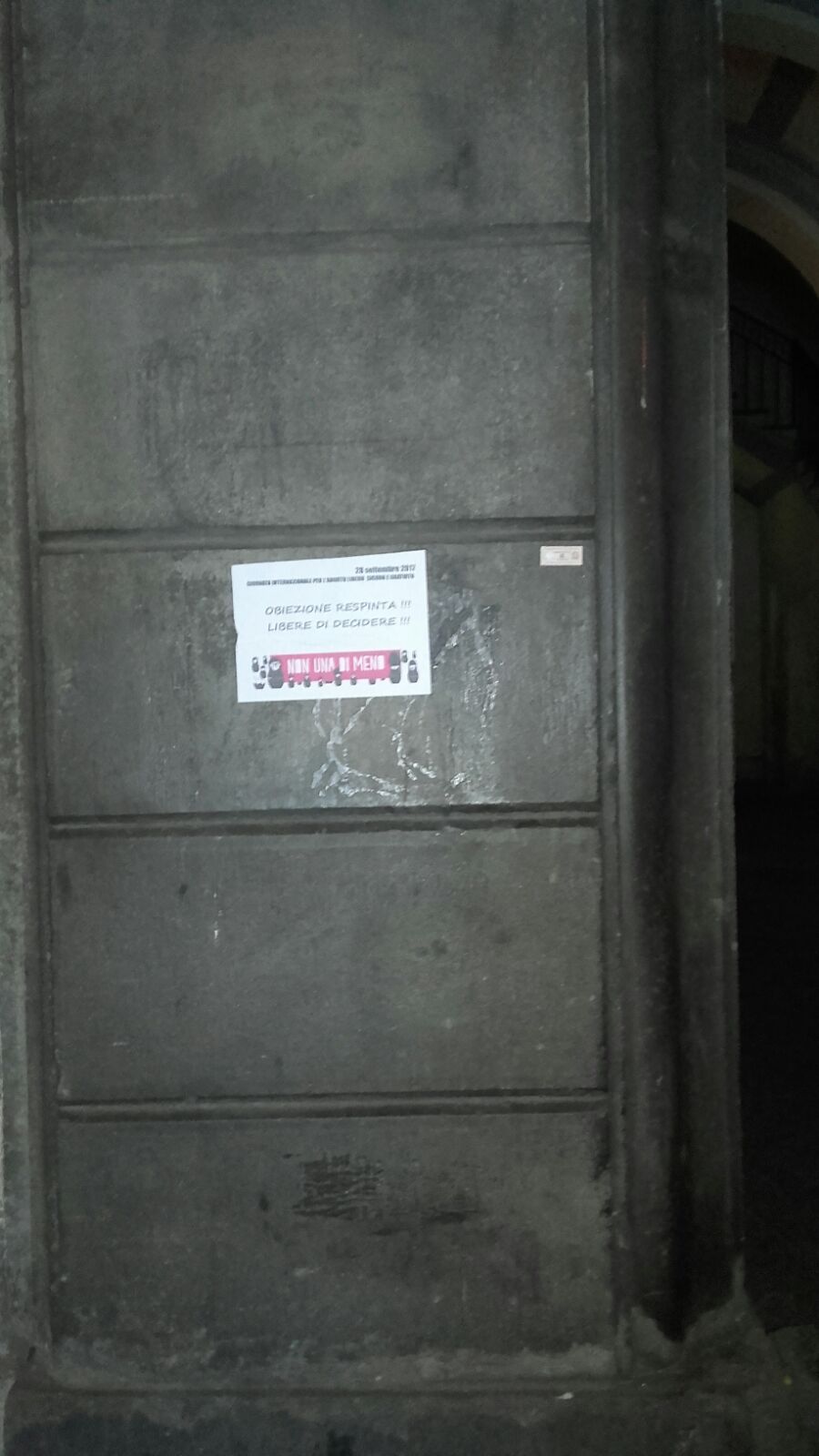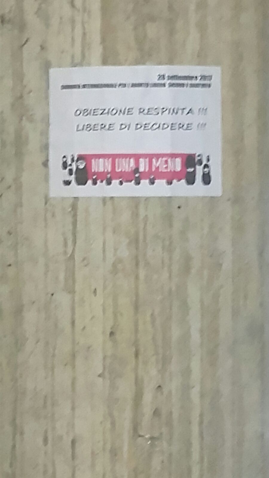 “Non una di meno” tappezza la città di volantini per l’aborto libero e la pillola del giorno dopo