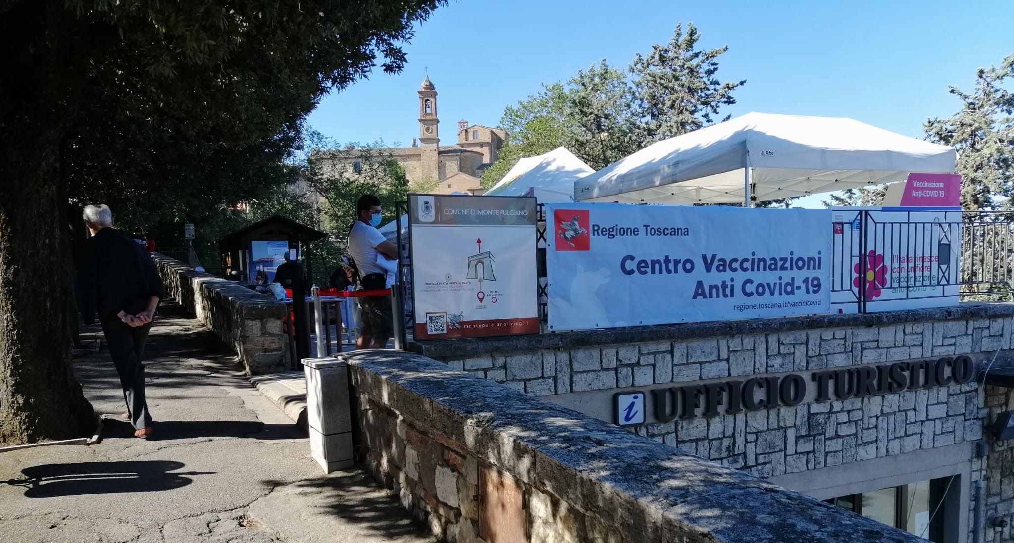 Questa mattina, nella terrazza sopra l’ufficio turistico di piazza Don Minzoni, nel cuore di Montepulciano, in occasione del Bravìo delle Botti è stata allestita una postazione vaccinale dall’Asl Toscana sud est, grazie alla collaborazione con Comune di Montepulciano, Magistrato delle Contrade e Misericordia di Montepulciano. Sono state 54 le persone che, tramite prenotazione sul portale o con accesso libero direttamente sul posto, si sono vaccinate tra le 9 e le 15.