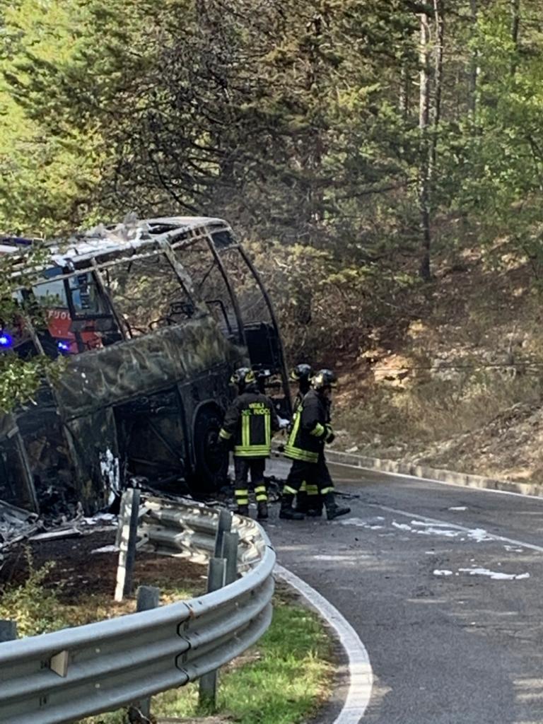 Un incendio spaventoso quello che ha avvolto il bus turistico che questo pomeriggio ha preso fuoco a Castellina in Chianti. Il mezzo, italiano, con a bordo turisti stranieri impegnati in un tour del territorio, stava transitando quando si è improvvisamente fermato per un guasto, sulle cui cause stanno indagando i carabinieri. L’autista, intuendo il pericolo, ha fatto scendere tutti e subito dopo il bus ha cominciato a bruciare, andando a sprofondare nella scarpata. Il rogo lo ha completamente distrutto. Per fortuna tutti gli occupanti sono risultati sani e salvi, ma si tratta di una tragedia scampata, che riaccende i riflettori sulle condizioni di sicurezza dei bus turistici, spesso al centro di controversi casi di cronaca. Sul posto sono giunti i vigili del fuoco di Siena per domare le fiamme, i volontari Racchetta e anche la polizia municipale di Castellina, per gestire il traffico. L’intervento è durato alcune ore, per motivi di sicurezza è stata provvisoriamente chiusa la viabilità sulla Chiantigiana al bivio tra Fonterutoli e bivio San Leonino, dove era visibile lo scheletro del bus arso dalle fiamme, rimosso in serata.