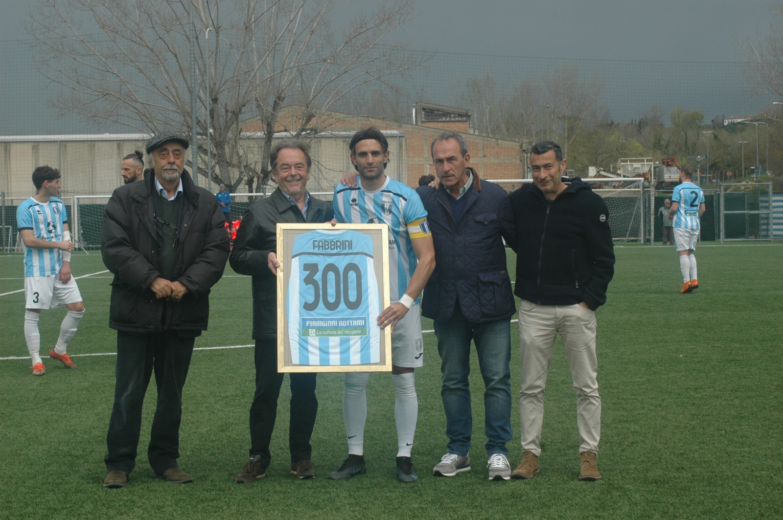(Nella foto il capitano Piero Fabbrini che è stato premiato con una maglia celebrativa per il raggiungimento delle 300 presenze in biancoceleste)