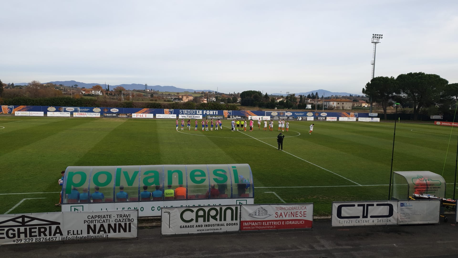 Nel finale cresce la Sansovino: Ricci calcia da ottima posizione ma manca lo specchio della porta. È solo il preludio al gol vittoria, che arriva pochi minuti dopo: un nuovo tiro di Ricci, deviato, spiazza Cefariello e vale l’1-0 definitivo.