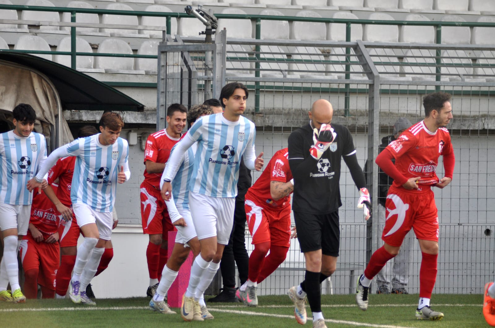 Il Mazzola torna da Firenze con una sconfitta pesante, un 3 a 0 che penalizza oltremodo la formazione ospite nonostante una prestazione di assoluto livello. Mazzola subito in attacco dopo 50 secondi, Rocchetti in anticipo recupera cercando il filtrante per Cioni, palla leggermente lunga che termina fuori. Risposta immediata della “rondine“, punizione battuta rapidamente da Ricchi per mettere in movimento Massai, il traversone basso attraversa tutta l’area terminando sul fondo. Mazzola a centimetri dal vantaggio al 12′: angolo battuto corto per il traversone di Discepolo, Campatelli stacca altissimo impattando alla perfezione ma colpendo in pieno il palo interno, la sfera carambola poi tra le braccia di Dainelli. La Rondinella, proprio dal legno colpito dai biancocelesti, riparte in contropiede guadagnando un tiro dalla bandierina, Polo in area riesce a calciare sparando alto. Nonostante l’ottimo inizio del Mazzola è la Rondinella a passare in vantaggio al 25′: azione d’angolo, Mazzola pesca la deviazione di testa di Cellai che si insacca sul palo lontano. Non è finita qua perchè i biancorossi piazzano un uno-due micidiale, ripartendo rapidamente in contropiede con Saccardi, palla a rimorchio per Polo che calcia di prima intenzione battendo ancora Chiarugi. Il Mazzola prova a reagire a questo pugno in pieno viso con Discepolo, tiro di destro che esce alto da posizione molto defilata. Ennesima protesta stagionale del Mazzola al 45′, Ricchi trattiene Bonechi all’interno dell’area di rigore ma nè il direttore di gara nè il primo assistente prendono una decisione. La prima frazione si chiude con la Rondinella avanti 2 a 0. I senesi partono meglio nella ripresa, al 52′ ottima azione costruita per la botta di Gianassi, sfera destinata all’angolino basso se non fosse per il tallone di Corcione che respinge il bolide dell’esterno mancino. Mazzola vicinissimo a riaprire il match al 61′, pressione insistita che si chiude con il traversone di Rocchetti e la sponda di Corsi, Cioni devia la sfera che esce in angolo dopo una serie di clamorosi rimpalli. Ospiti sfortunatissimi un minuto dopo, conclusione di Corsi che viene salvata sulla linea di porta da Ricchi. Altra opportunità Mazzola all’85′, tiro dalla distanza di Discepolo respinto in tuffo da Dainelli. L’immagine della partita si completa al 93′, il Mazzola attacca e la Rondinella segna: contropiede biancorosso con Corcione che, nel tentativo di crossare, infila la palla alle spalle di Chiariugi. Termina 3 a 0 per la Rondinella, punizione troppo pesante per il Mazzola nonostante la buona prestazione. I biancocelesti fanno i conti con la seconda sconfitta consecutiva ma all’orizzonte c’è già la terza trasferta consecutiva, valevole per la semifinale di Coppa Italia, sul campo della Sangiovannese.