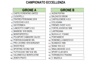 Eccellenza Toscana, in base all’art. 25 comma 4 del Regolamento della L.N.D. il Consiglio Direttivo, nella riunione tenutasi in data odierna, ha provveduto alla compilazione dei gironi dei campionati. Ecco la composizione dei gironi A e B in attesa del Siena, che potrebbe presto subentrare: il Comune di Siena ha ricevuto una lettera dalla Figc con la quale si apre alla possibilità di iscrivere un neonato sodalizio sportivo in rappresentanza del Comune, proprio in Eccellenza.