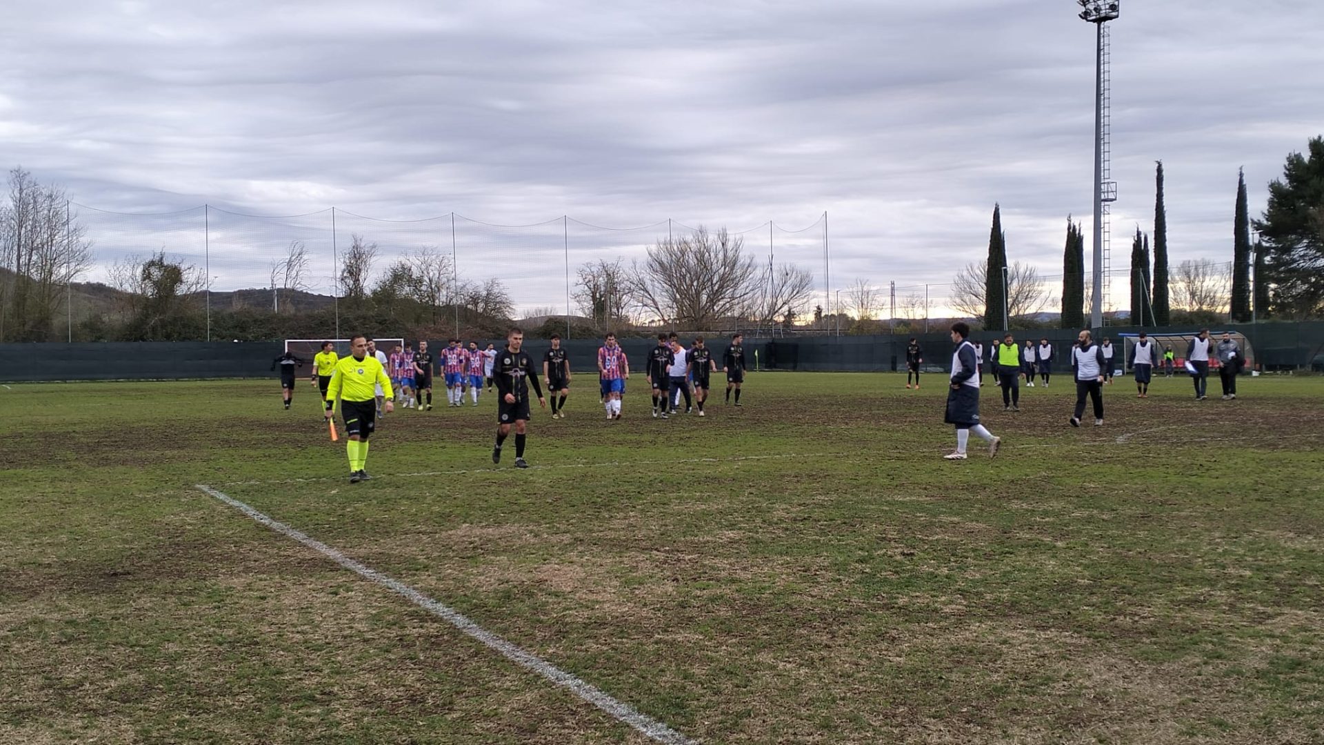 Al 7’, però, la gara si mette in salita. Un contatto in area tra Ceccatelli e Tempesti induce l’arbitro a concedere il rigore, trasformato dallo stesso Tempesti per lo 0-1. L’episodio accende gli animi e per oltre mezz’ora il gioco resta spezzettato, con numerosi cartellini e proteste da entrambe le parti.