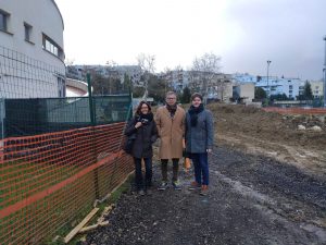 Sopralluogo del sindaco di Siena Luigi De Mossi presso il cantiere nel quartiere di San Miniato. I lavori, in particolare, riguardano la deviazione del tracciato di via Enrico Berlinguer, ma sono propedeutici alla trasformazione di Piazza della Costituzione e quindi ridisegnano l’intera zona.