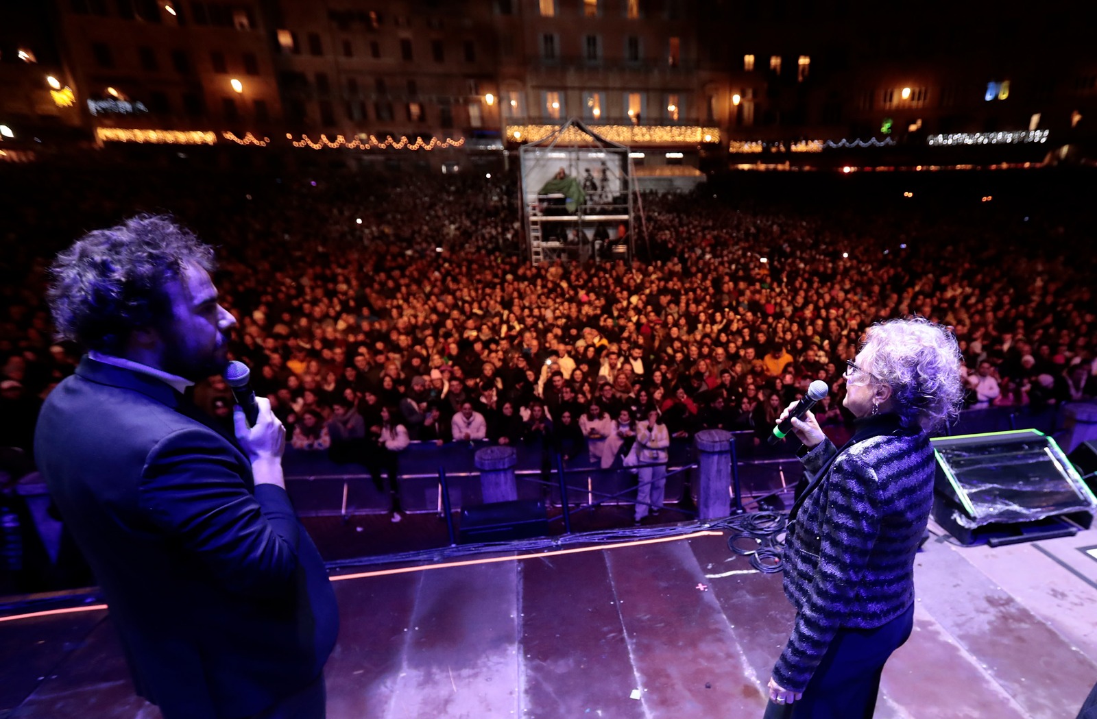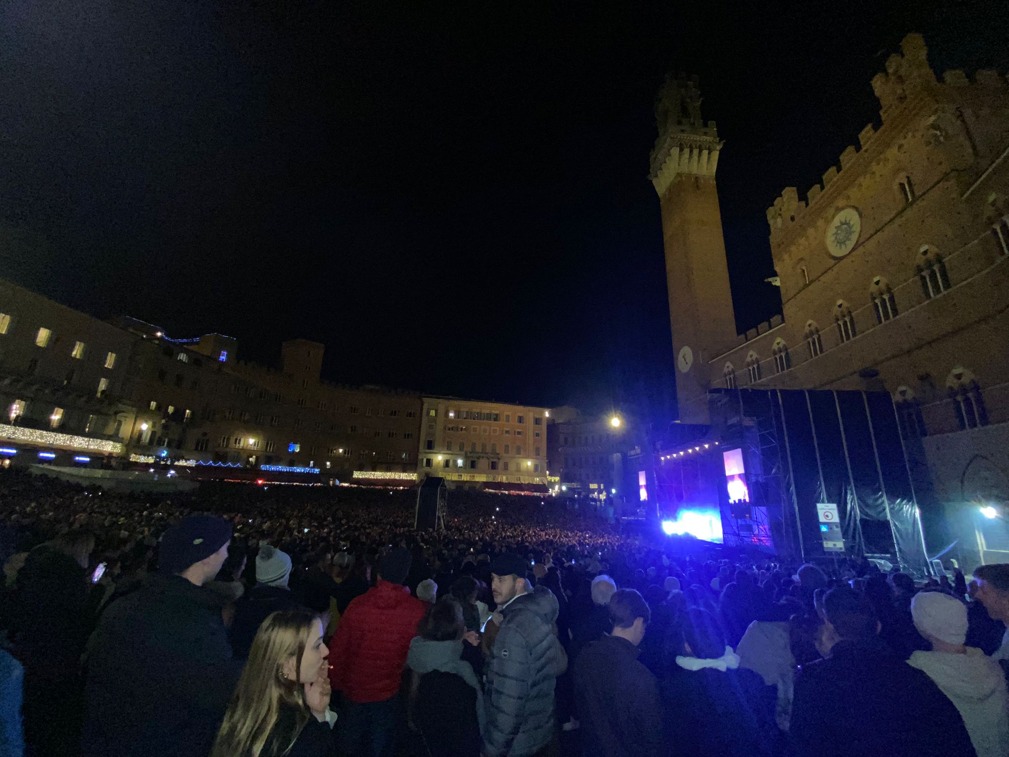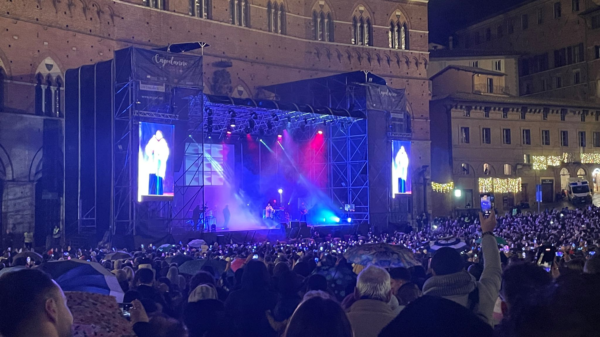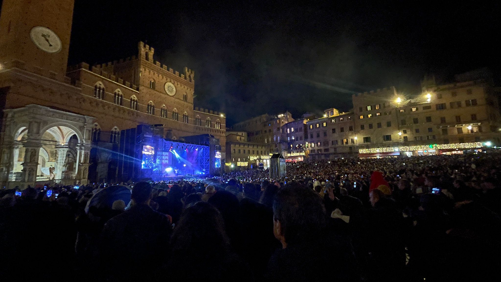 Tantissime persone in Piazza del Campo la notte di San Silvestro per festeggiare il capodanno 2024 con la musica di Emma Marrone. Riviviamo nei nostri scatti alcuni momenti della magica serata