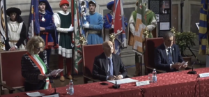 “Dialogo, appartenenza e responsabilità sono tre parole guida da tenere strette nella capacita di difenderle e saperle raccontare. Andare avanti e adattarsi ai tempi non deve essere confuso con superficialità e disattenzione. Questo illustra la lectio magistralis di Antonio Preziosi. I temi della comunicazione e dell’informazione sono sempre più rilevanti anche nel contesto delle contrade. Il lavoro del giornalista è sempre più delicato. I giornalisti sono i nostri occhi e orecchie sul mondo per scoprire la verità. Ringrazio coloro che ci aiutano in questo. Incoraggio i giornalisti a proseguire nel loro lavoro con l’auspicio che la verità e la trasparenza possano sempre guidarvi nel rispetto della nostra storia e della nostra città”.