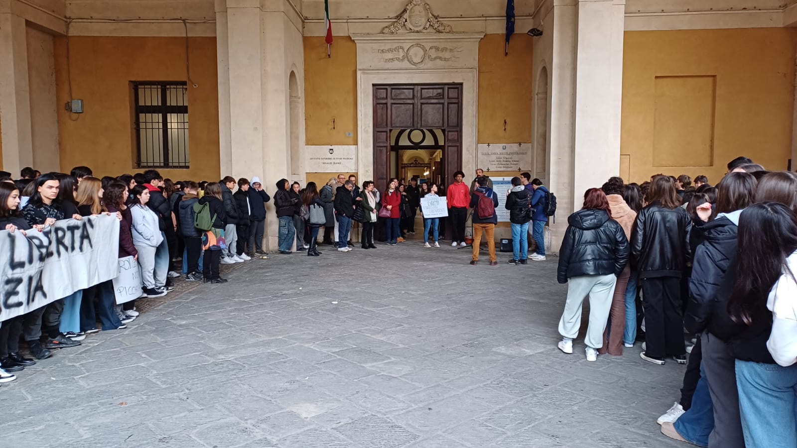 A ritrovarsi nel cortile interno della scuola anche gli studenti e alcuni professori del Liceo Galileo Galilei (IL VIDEO). Un momento per riflettere, per esprimere il proprio pensiero e il proprio disappunto rispetto a quanto accaduto a Firenze e Pisa. I 18 studenti feriti, e le immagini e i video dei manganelli dei poliziotti circolate da subito online hanno suscitato malumori in molte scuole d’Italia e anche al Galilei gli studenti e i docenti si sono voluti ritrovare insieme in luogo condiviso della scuola, e nonostante la pioggia la partecipazione è stata notevole.