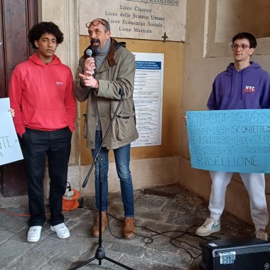 “Oggi siamo qui a perchè in quanto studenti ci siamo sentiti chiamati in causa – spiega il rappresentante d’istituto del Liceo Piccolomini -, perchè non è accettabile quanto accaduto a Pisa e a Firenze. La violenza per sopprimere un pensiero è davvero un atto vile, queste cose si dovrebbero sostenere e non far morire sul nascere. Ci siamo sentiti tutti minacciati, perchè come è successo a Pisa e Firenze poteva succedere a Siena. Quella manifestazione doveva essere magari contenuta se fosse andata oltre ai limiti, ma non certo nel modo in cui è stato fatto, con una violenza gratuita ingiustificabile. Fa impressione vedere persone che dovrebbero garantire la nostra sicurezza rincorrere e manganellare dei miei coetanei, per una manifestazione anche se non autorizzata, è una cosa inammissibile”.
