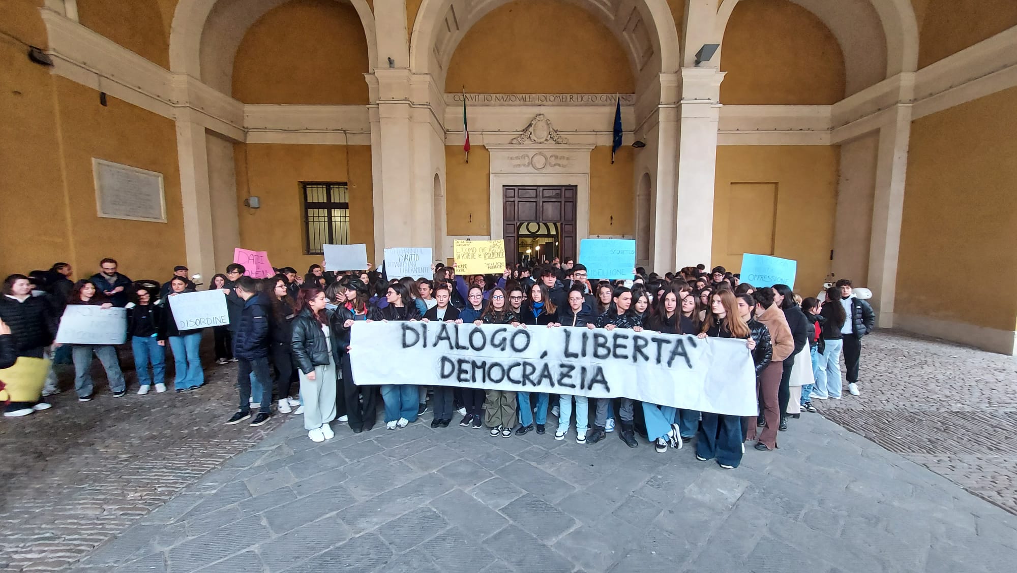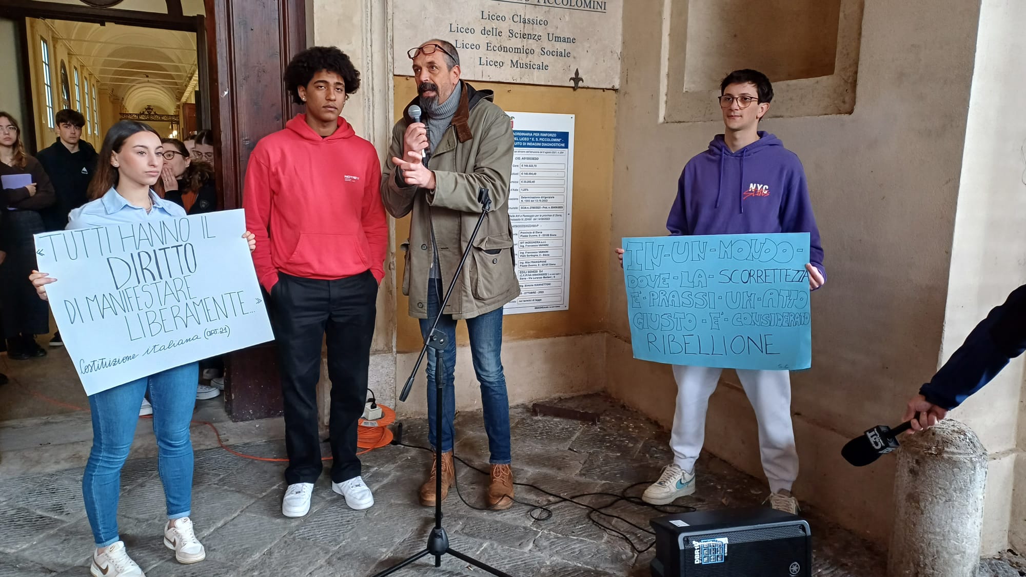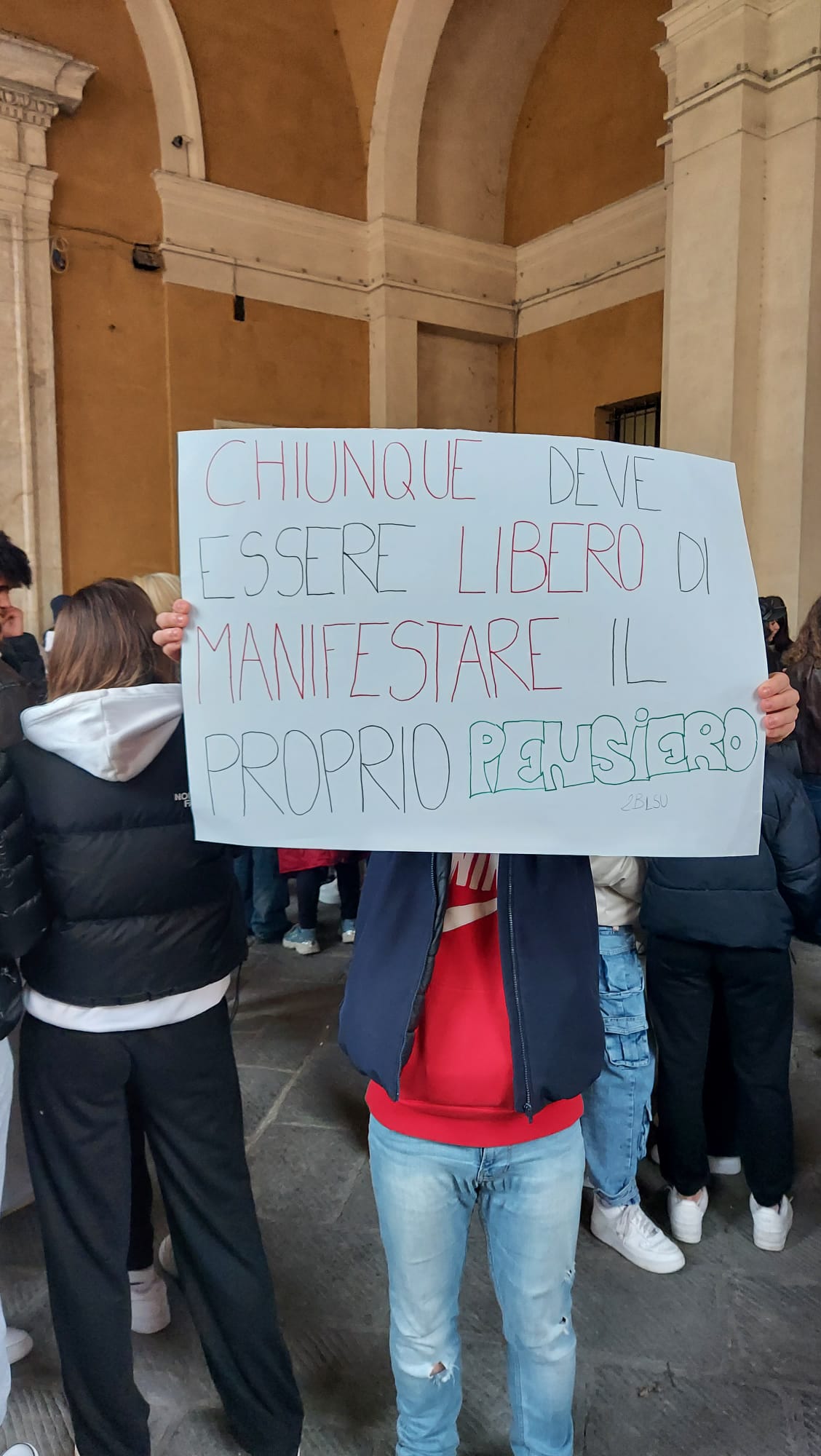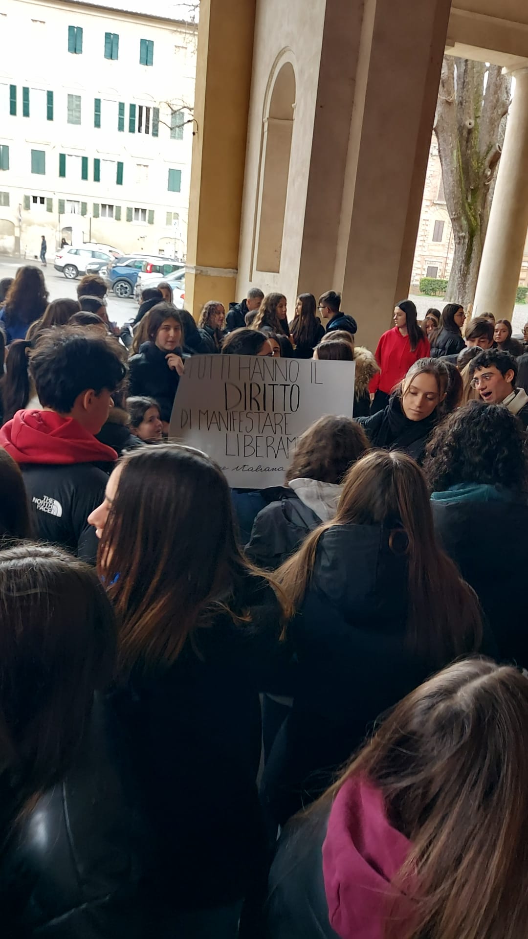 Sit in stamattina di fronte al Piccolomini di Siena al quale hanno preso parte numerosi studenti e professori, dopo i fatti accaduti durante la manifestazione pro Palestina venerdì scorso a Pisa e Firenze. “Chiunque deve essere libero di manifestare il proprio pensiero”, “Tutti hanno il diritto di manifestare liberamente”, “Manganelli = fallimenti”, “Dialogo, Libertà, Democrazia”, il testo di alcuni degli striscioni esposti dai ragazzi.