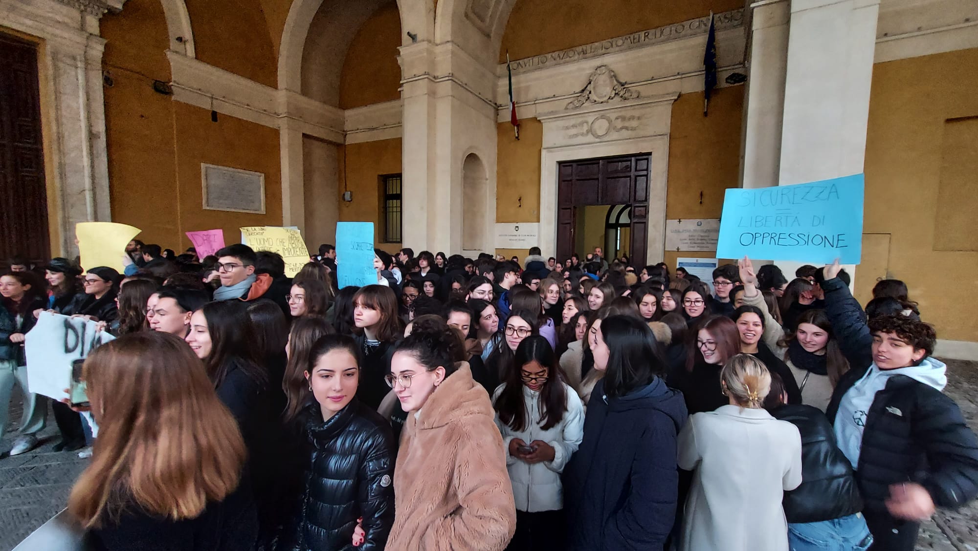 “I ragazzi che sono stati inseguiti e manganellati dalla Polizia potevano essere i nostri studenti ed è per questo che siamo qui a far sentire la nostra voce – aggiunge Daniele Lovetere docente del Liceo delle Scienze Umane -. Crediamo che quello che è successo sia molto grave, c’è stata una sproporzione assoluta nella reazione della Polizia nei confronti di una manifestazione pacifica”.