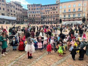 Musica, animatori mascherati, trampolieri e postazioni con giochi questo pomeriggio in piazza del campo per festeggiare l’ultimo giorno di Carnevale. Per martedì grasso infatti il Comune ha organizzato il tradizionale evento dedicato ai bambini. la pioggia del primo pomeriggio ha poi lasciato spazio al bel tempo che ha così permesso ai più piccoli e alle famiglie di divertirsi in Piazza del Campo tra balli e giochi. “Una festa esclusivamente dedicata ai bambini, ci sono tante famiglie e ragazzi che partecipano, il tempo ci ha voluto bene a parte una breve pioggia” commenta l’assessore alle politiche sociali del Comune di Siena Micaela Papi.