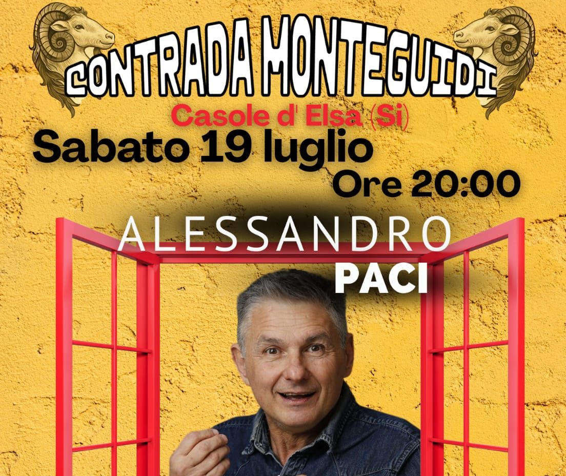 La località di Monteguidi ospiterà questa sera alle ore 20.00 uno spettacolo di intrattenimento che vedrà protagonista l’attore e comico Alessandro Paci. L’evento è in programma all’interno della contrada, offrendo un momento di leggerezza e spettacolo al pubblico presente.