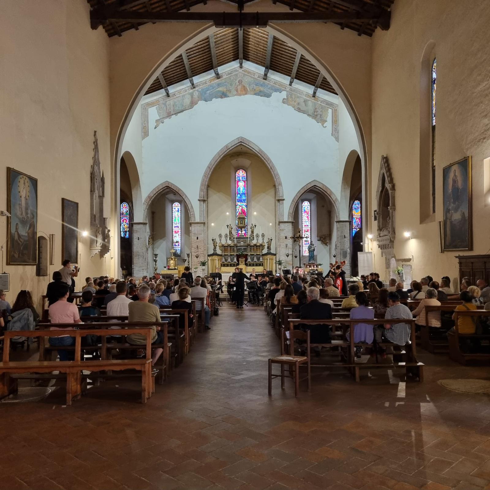 Nella bella cornice della chiesa romanica casolese, applausi a scena aperta per i giovani studenti senesi.