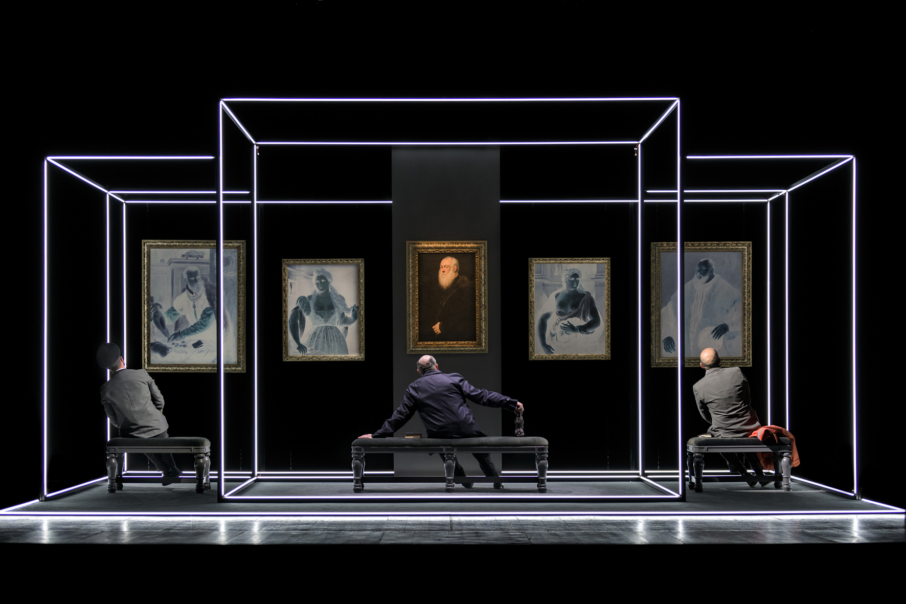 Lo spettacolo. Federico Tiezzi firma la regia di uno spettacolo ispirato al romanzo omonimo di Bernhard e adattato per il palcoscenico da Fabrizio Sinisi. La storia raccontata è apparentemente lineare: da più di trent’anni un musicologo si siede ogni due giorni a contemplare un quadro di Tintoretto esposto nella Sala Bordone della Pinacoteca di Vienna. Questa sorta di rito incuriosisce un giovane scrittore ed entrambi finiscono per essere osservati da un custode del museo. Un diagramma semplice, che tuttavia trasforma lo spettacolo in un vero e proprio studio sulla funzione dell’arte, le nevrosi della modernità e la solitudine.