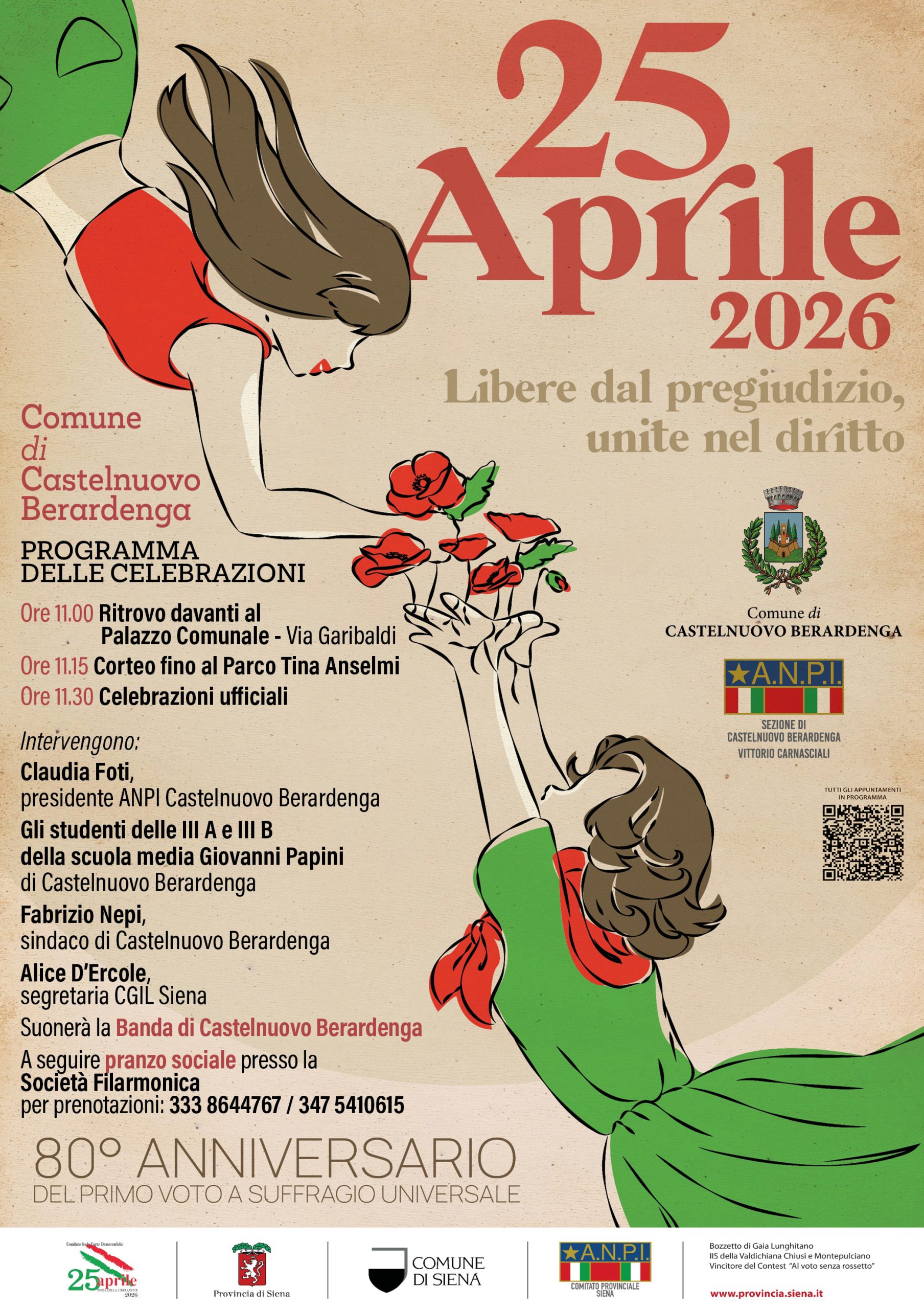 Interverranno Claudia Foti, presidente ANPI Castelnuovo Berardenga, gli studenti delle classi III A e III B della scuola media Giovanni Papini, il sindaco Fabrizio Nepi e Alice D’Ercole, segretaria CGIL Siena.