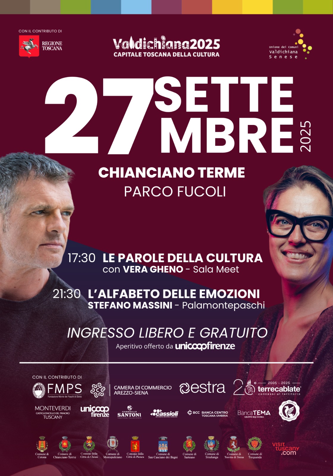 Sabato 27 settembre 2025 Chianciano Terme diventa palcoscenico d’eccezione per due grandi protagonisti della scena culturale italiana: la sociolinguista Vera Gheno e il drammaturgo Stefano Massini, autore oggi più rappresentato al mondo e unico italiano ad aver conquistato ben cinque Tony Award, gli “Oscar del teatro”.