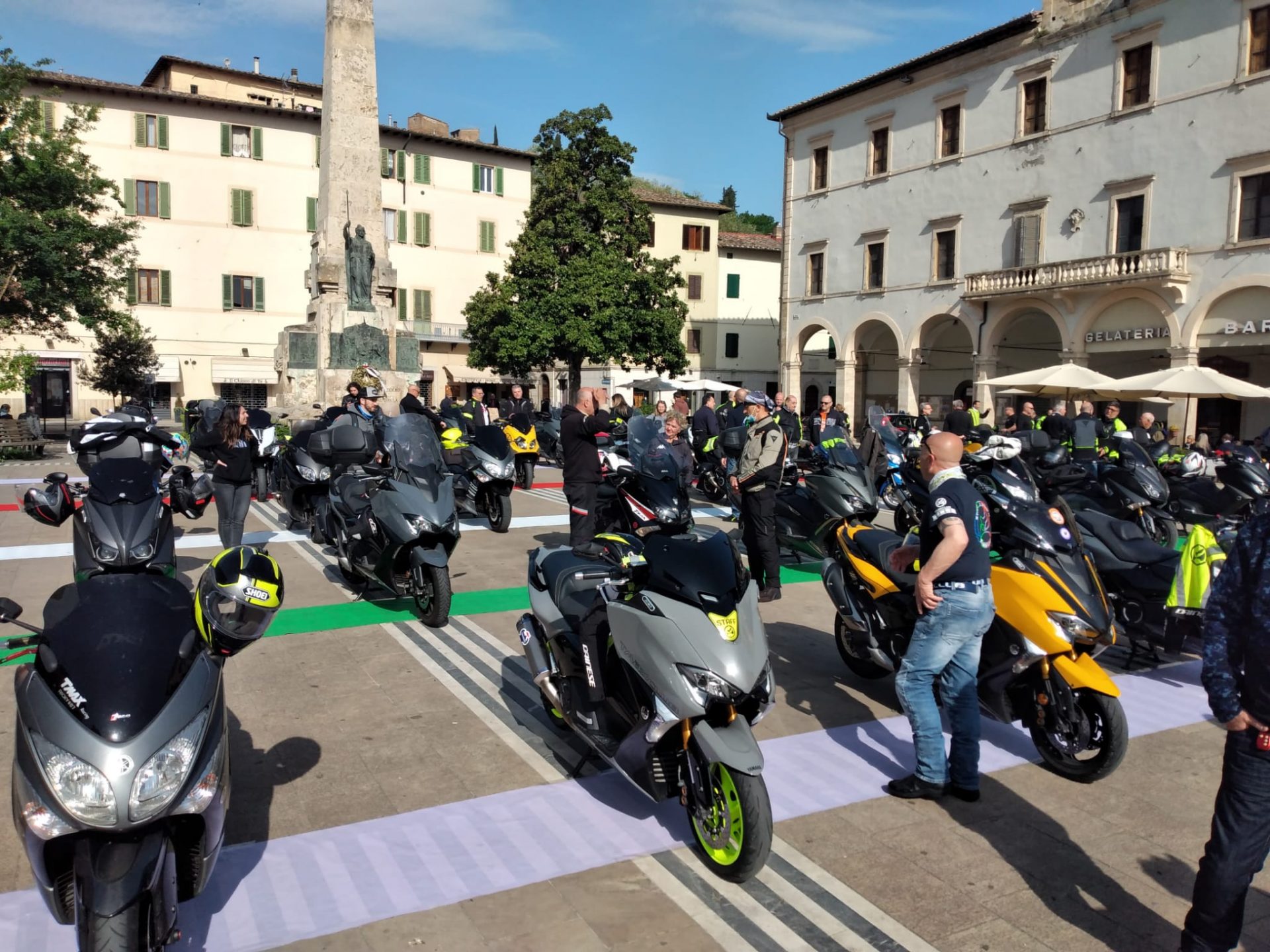 Una delle piazze più celebri della Valdelsa, piazza Arnolfo di Cambio a Colle di Val d’Elsa ha ospitato la partenza del 2° Raduno Ufficiale Tmaxclub asd Yamaha Z3 Toscana “Il Chianti e la leggenda del Gallonero” nel 20° anniversario del Club, con la carovana di scooteristi da tutta Italia, oltre 60 i partecipanti, che nella giornata di domenica si è poi snodata per le strade del Chianti.