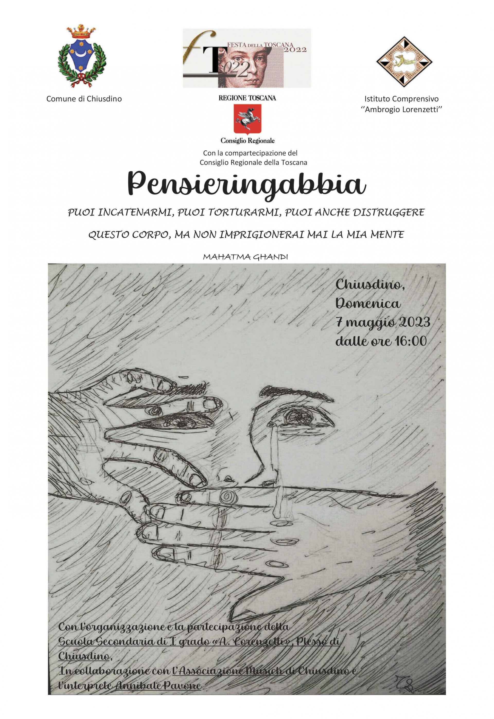 Domani, a partire dalle ore 16, a Chiusdino, tra gli eventi conclusivi della Festa della Toscana 2022 si svolge “Pensieringabbia”, progetto corale scaturito dalla collaborazione tra il Comune di Chiusdino, la scuola media facente parte dell’Istituto comprensivo Ambrogio Lorenzetti e l’associazione Musich laboratori musicali e che beneficia del contributo espressamente stanziato dal Consiglio Regionale.