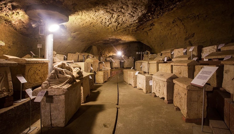 La scrittura etrusca non è facile da decifrare, sia per i contenuti limitati ritrovati nei reperti archeologici dove si leggono solo nomi e numeri, sia per i caratteri che risultano essere piuttosto complessi. Si tratta in ogni caso di una scrittura affascinante anche solo per la rappresentazione grafica. Quello che sappiamo con certezza è che gli etruschi scrivevano da destra verso sinistra in modo continuo, senza lasciare spazi tra una parola e l’altra. La sezione epigrafica del Museo Civico “La Città Sotterranea” è un unicum in Italia con 500 iscrizioni su urne cinerarie e tegole tombali che ha permesso uno studio approfondito su questa lingua oltre alla ricostruzione di una vera e propria anagrafica etrusca.