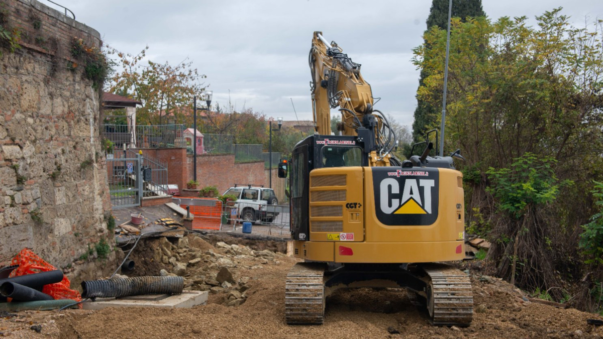 A Chiusi Città proseguono gli interventi volti a effettuare i lavori di ripristino di via Longobardi dove attualmente insiste una voragine provocata dal cedimento del manto stradale. Venerdì 19 novembre la ditta Geoma di Arezzo ha effettuato le indagini geoelettriche e sismiche e lunedì 22 novembre la Ditta Fagiolari di Città della Pieve ha svolto un primo intervento di messa in sicurezza dell’area attraverso la sistemazione delle condotte danneggiate e la chiusura della voragine.