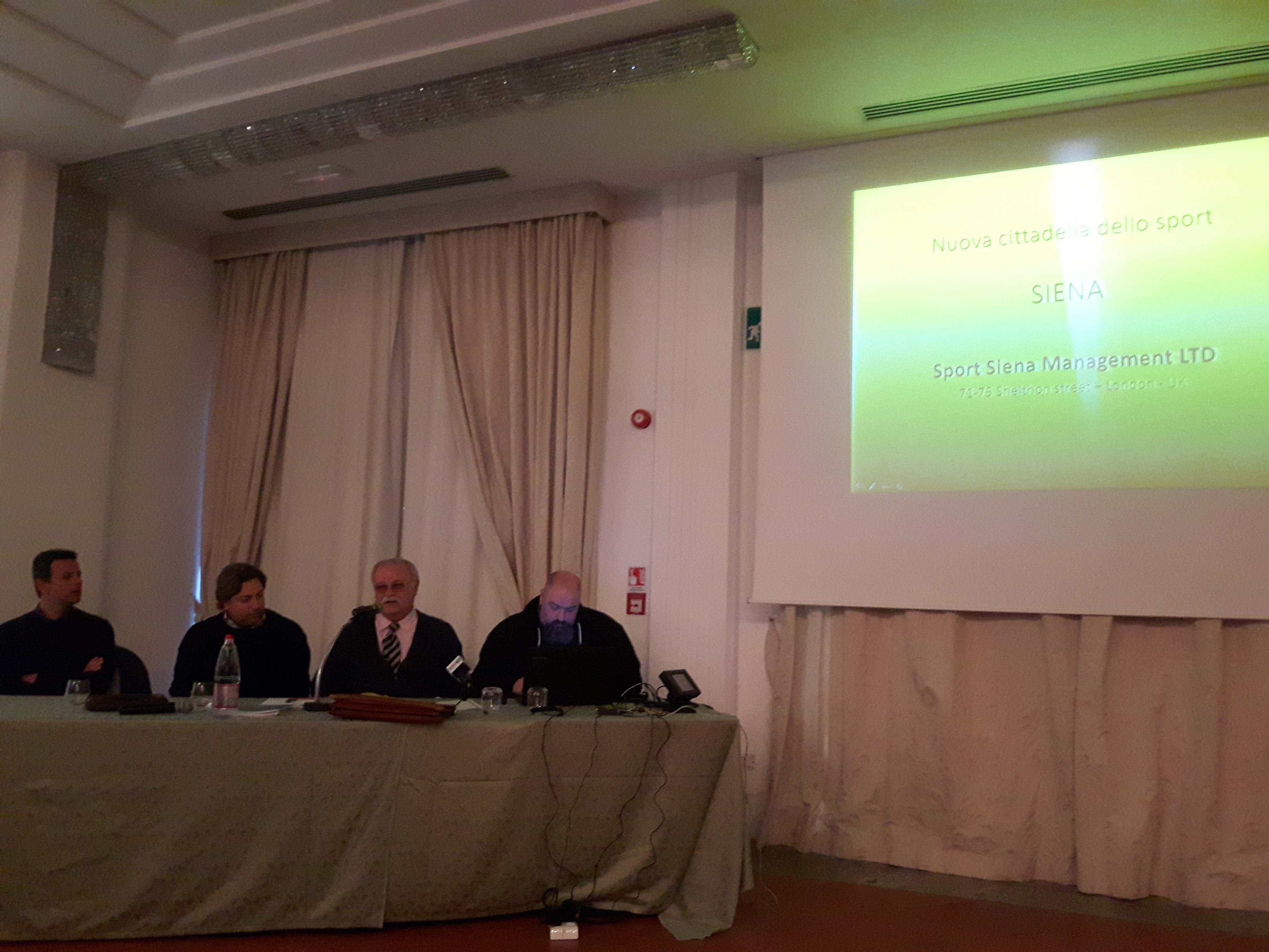 E’ questo l’ambizioso progetto mostrato, all’Hotel Garden, dalla Sport Siena Management Ltd alla cittadinanza, che se tutto va bene potrebbe realizzarsi entro il 2023: 60 nuovi posti di lavoro, eco-sostenibilità, e la volontà di rilanciare l’area nord della città, l’economia e i trasporti (verrebbe creata una strada dalla rotonda di viale Giovanni Paolo II a Villa Patrizia). L’intesa col proprietario di uno dei terreni privati compresi nell’area è già stata trovata e si spera di chiudere entro il mese l’accordo con la Polisportiva, mentre per i primi di giugno si cerca l’ok del Comune, con cui, si dice, i dialoghi sono proficui. E c’è la volontà di lavorare anche per salvare la prima squadra, non appena si capirà il destino dell’attuale società.