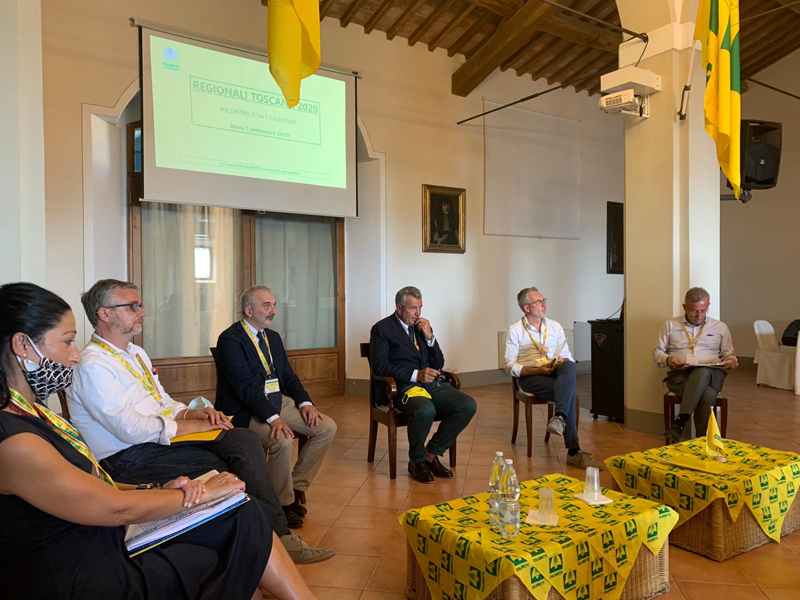 Semplificazione, l’istituzione di un assessorato regionale all’agroalimentare, il contenimento degli ungulati, le politiche strategiche sulla salvaguardia del territorioe dell’ambiente. Sono alcuni dei temi di confronto affrontati nell’incontro organizzato da Coldiretti Siena – il primo che affronta temi specifici- con i sei candidati alle elezioni regionali della provincia di Siena – Laura Almerico e Rossanna Zari della Lega, Eros Trabalzini di Fratelli d’Italia, Fabio Massimi Castellani di Forza Italia, Simone Bezzini del Partito Democratico e Stafano Scaramelli di Italia Viva -.