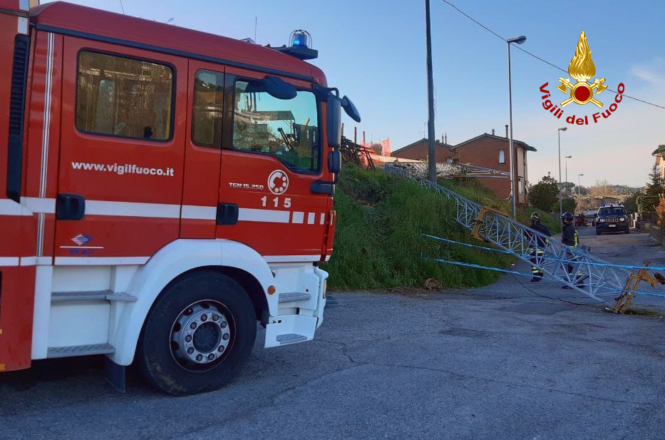 I vigili del fuoco del comando di Siena e del distaccamento di Poggibonsi stanno intervenendo, da poco prima delle ore 17.00, a Colle di Val d’Elsa, via Scarlini, per il crollo di una gru edile che è finita in parte sulla sede stradale, interessando anche dei cavi elettrici.