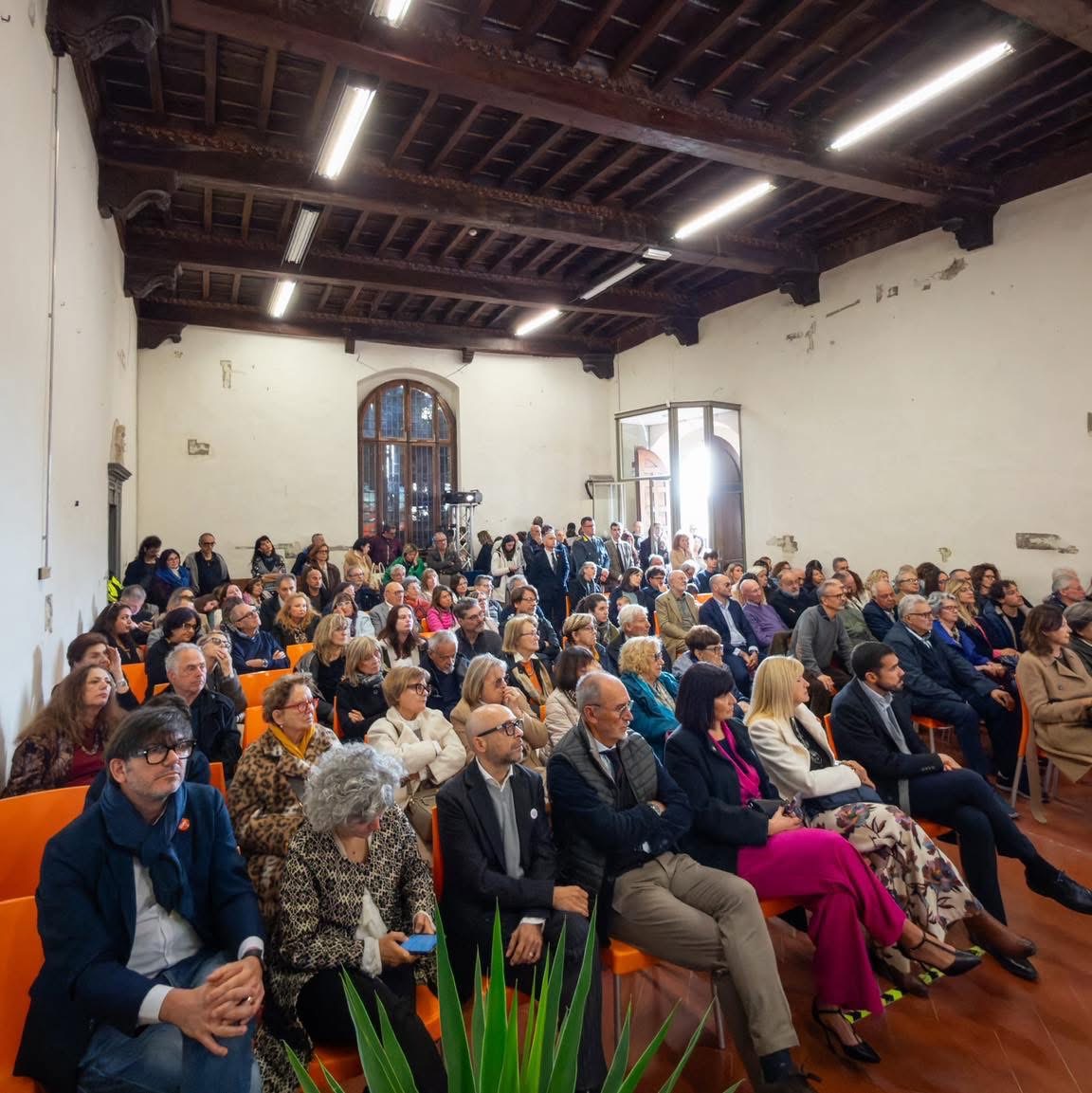Questa mattina la cerimonia con la restituzione alla città di uno spazio identitario e simbolico, dedicato alla storia e al patrimonio archeologico di Colle. Presenti, oltre a Piero Pii, Sindaco di Colle di Val d’Elsa, Eugenio Giani, Presidente Regione Toscana, Gabriele Nannetti, Soprintendente ABAP per le Province di Siena, Grosseto e Arezzo e Alessandro Ricceri, Presidente Fondazione Musei Senesi, Daniele Tozzi, Assessore alla Cultura di Colle di Val d’Elsa, Enrico Maria Giuffrè, Funzionario archeologo SABAP e Giacomo Baldini, Direttore dei Musei Civici. Il progetto, realizzato da Gabriele Maria Pulselli su progetto scientifico e museografico del direttore Giacomo Baldini, ha trasformato il Palazzo Pretorio – cardine urbano tra Via del Castello e Piazza del Duomo – in un polo culturale che, insieme al Giardino delle Arti e alle Stanze della Memoria, intreccia archeologia, trasformazioni urbane, memoria e arte contemporanea: da qui il concetto, di crossover, ovvero incroci, ma soprattutto contaminazioni.