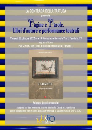 Venerdì 28 ottobre alle ore 19:00 presso il Complesso Museale della Contrada della Tartuca prosegue la rassegna culturale “Pagine e Parole. Libri d’autore e performance teatrali”.