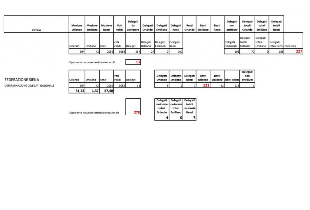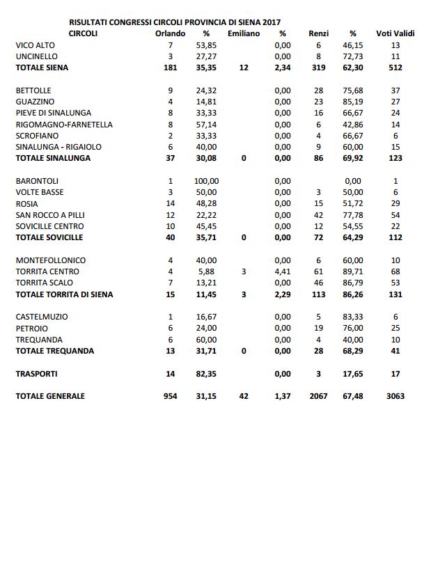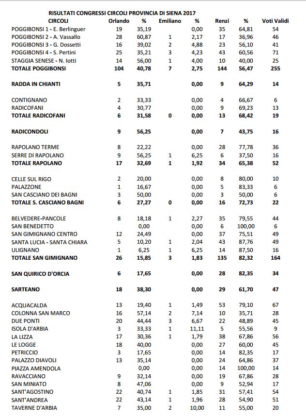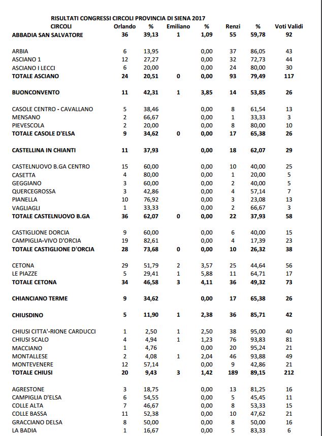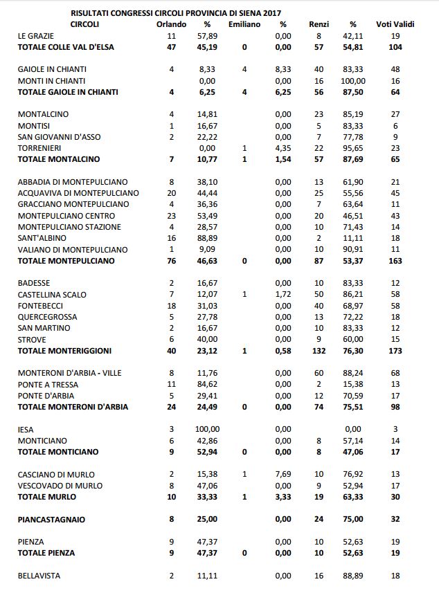 Il voto circolo per circolo in tutta la provincia di Siena.
