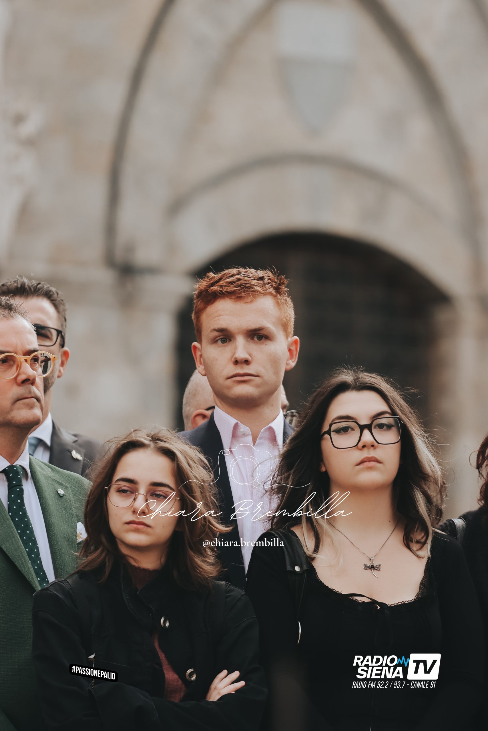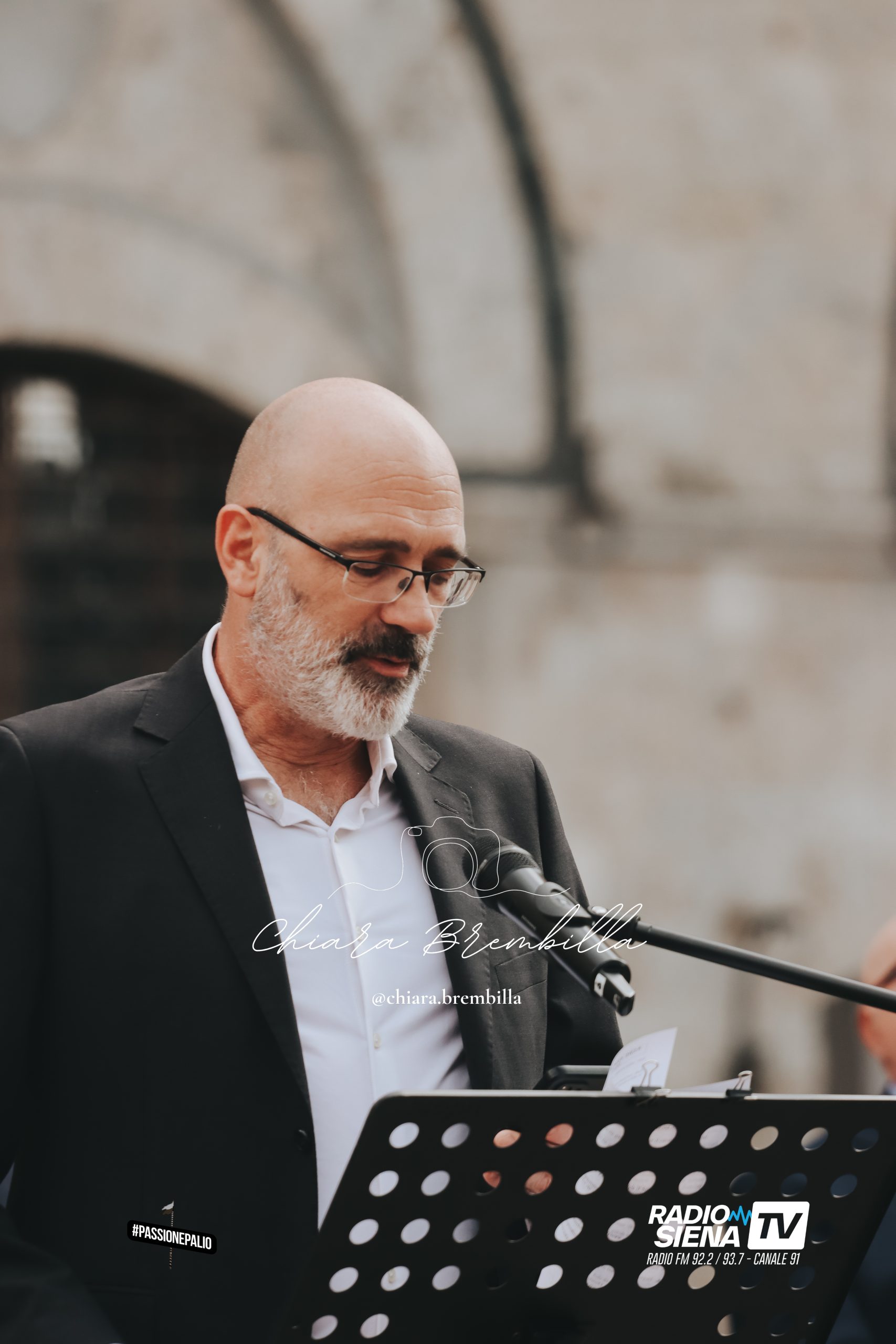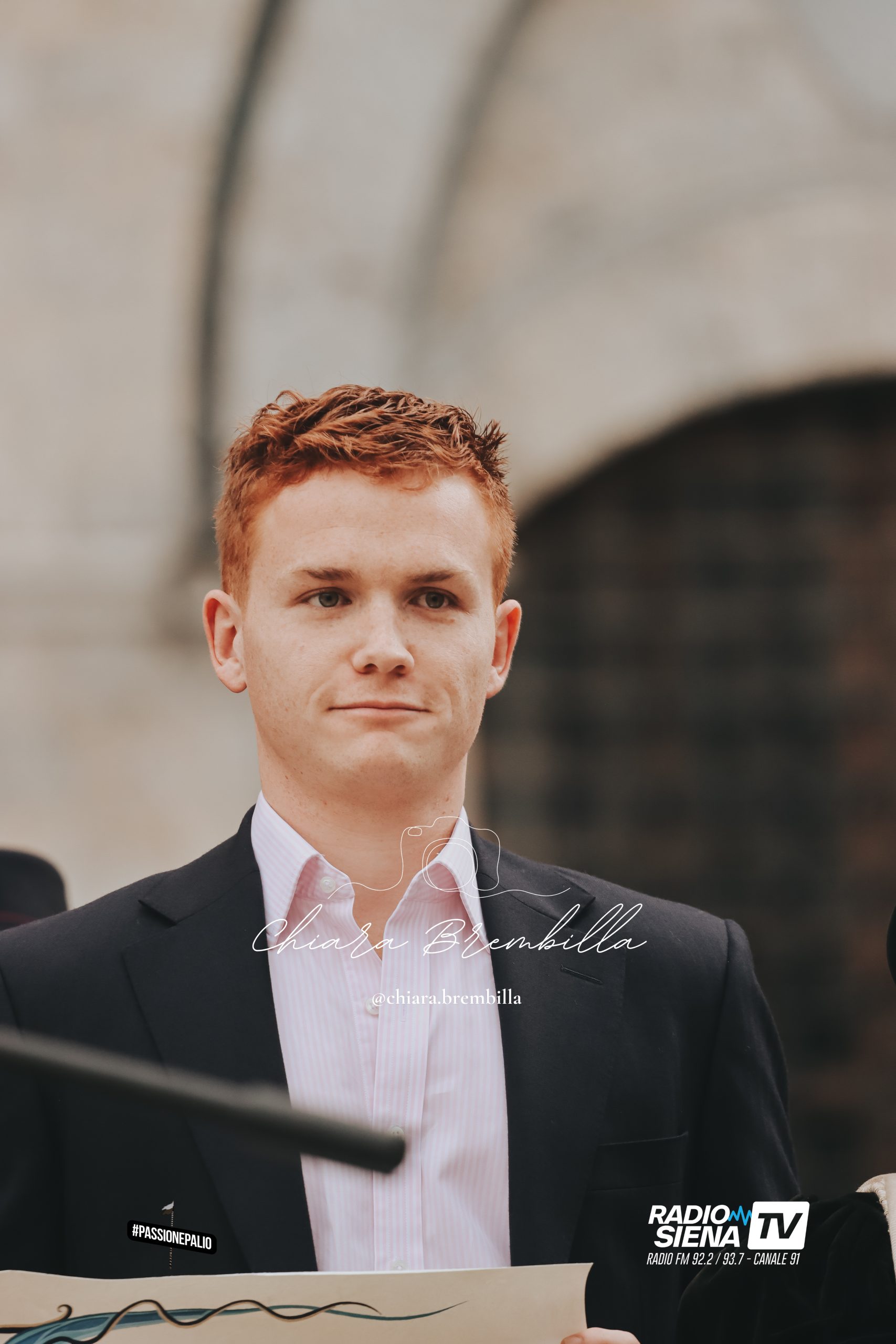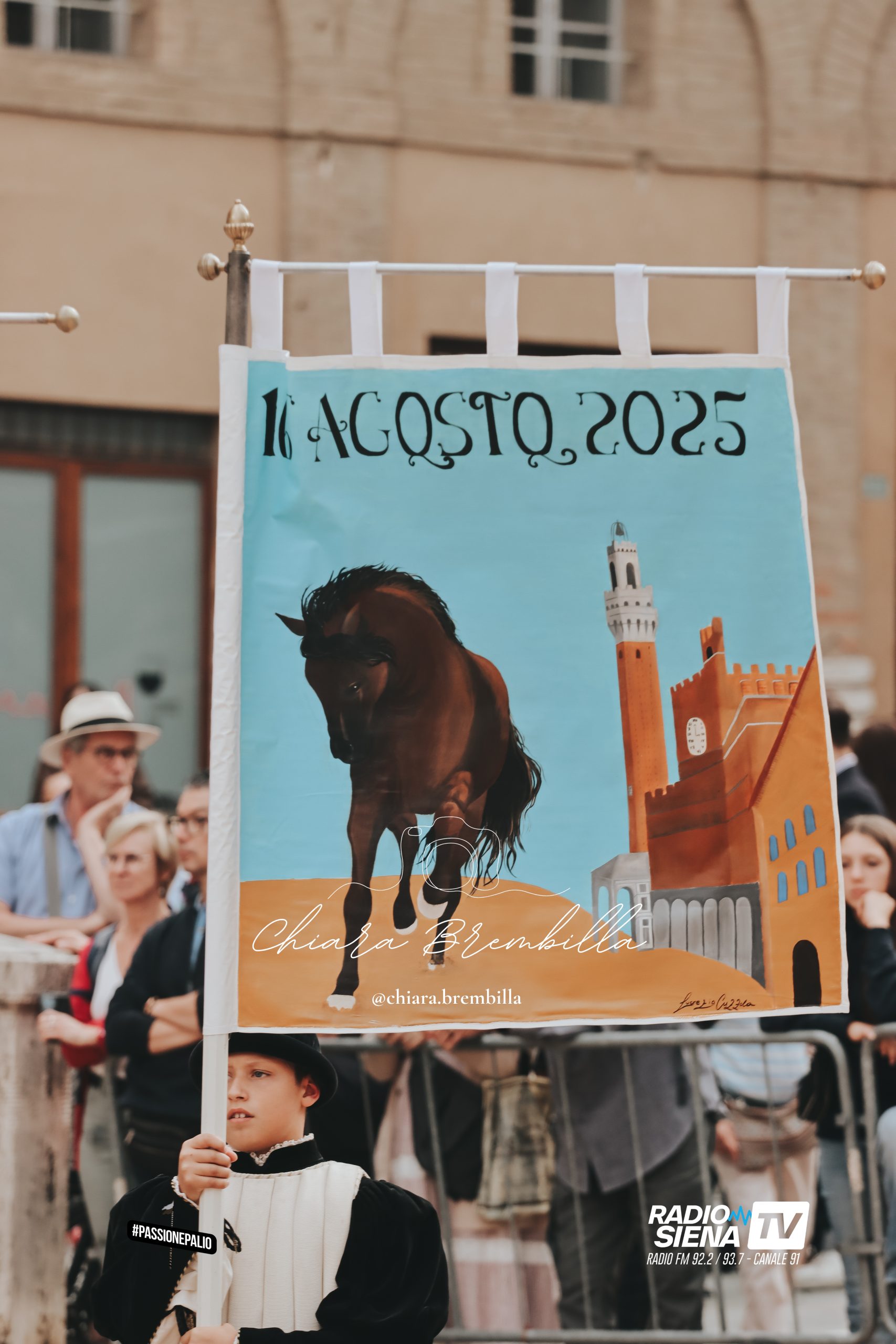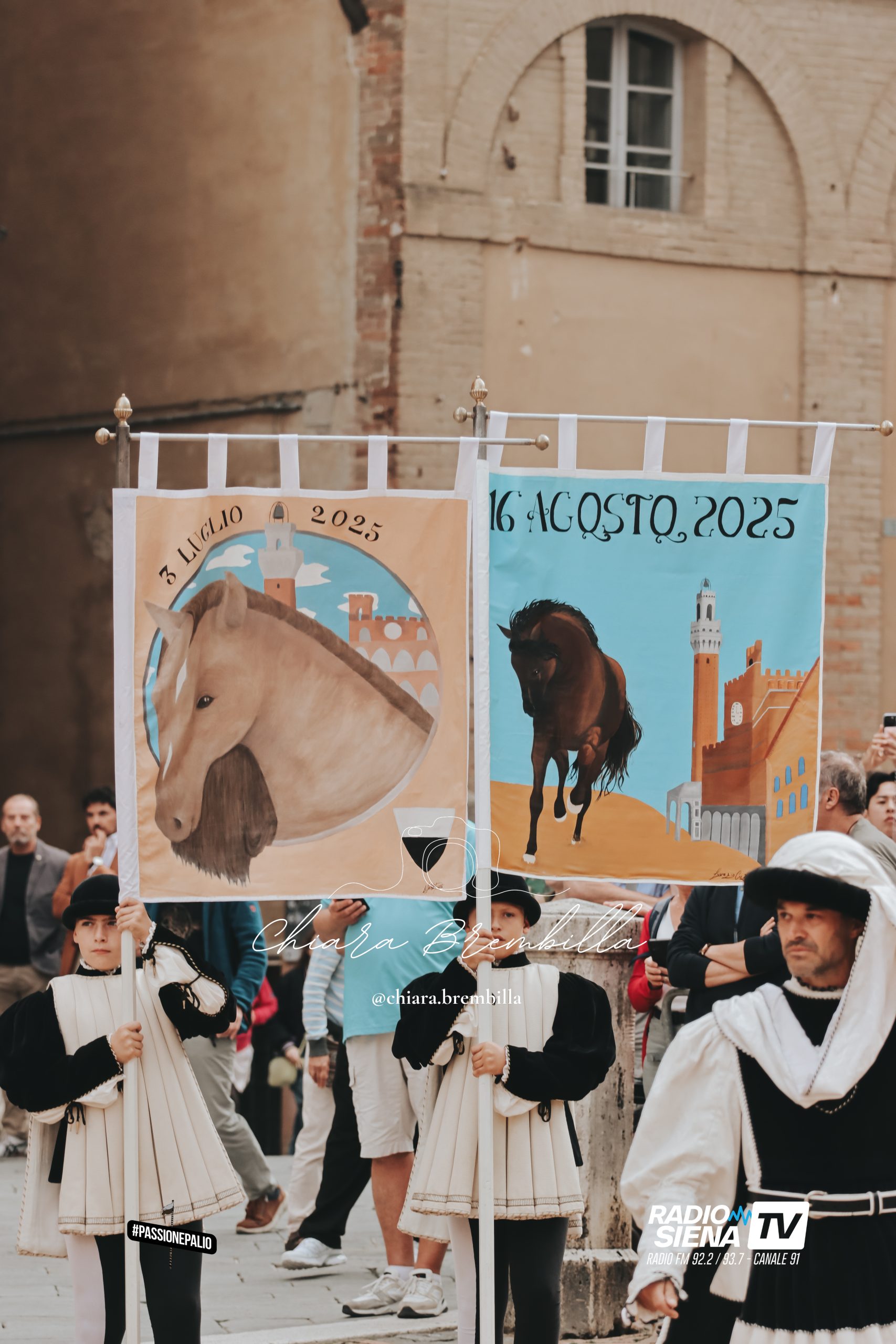 Durante l’evento sono stati consegnati anche i “bandierini” ai proprietari dei cavalli vincitori dei Palii del 2025: Marco Tansini, proprietario di Diodoro, che ha vinto all’esordio sul tufo il Palio del 3 luglio per la Nobile Contrada dell’Oca, montato da Giovanni Atzeni detto Tittia e Harry Arthur Louis Westerman, proprietario di Anda e Bola, castrone baio di nove anni che, alla sua terza esperienza in Piazza, ha trionfato nella carriera di agosto per la Contrada del Valdimontone, montato da Giuseppe Zedde detto Gingillo.