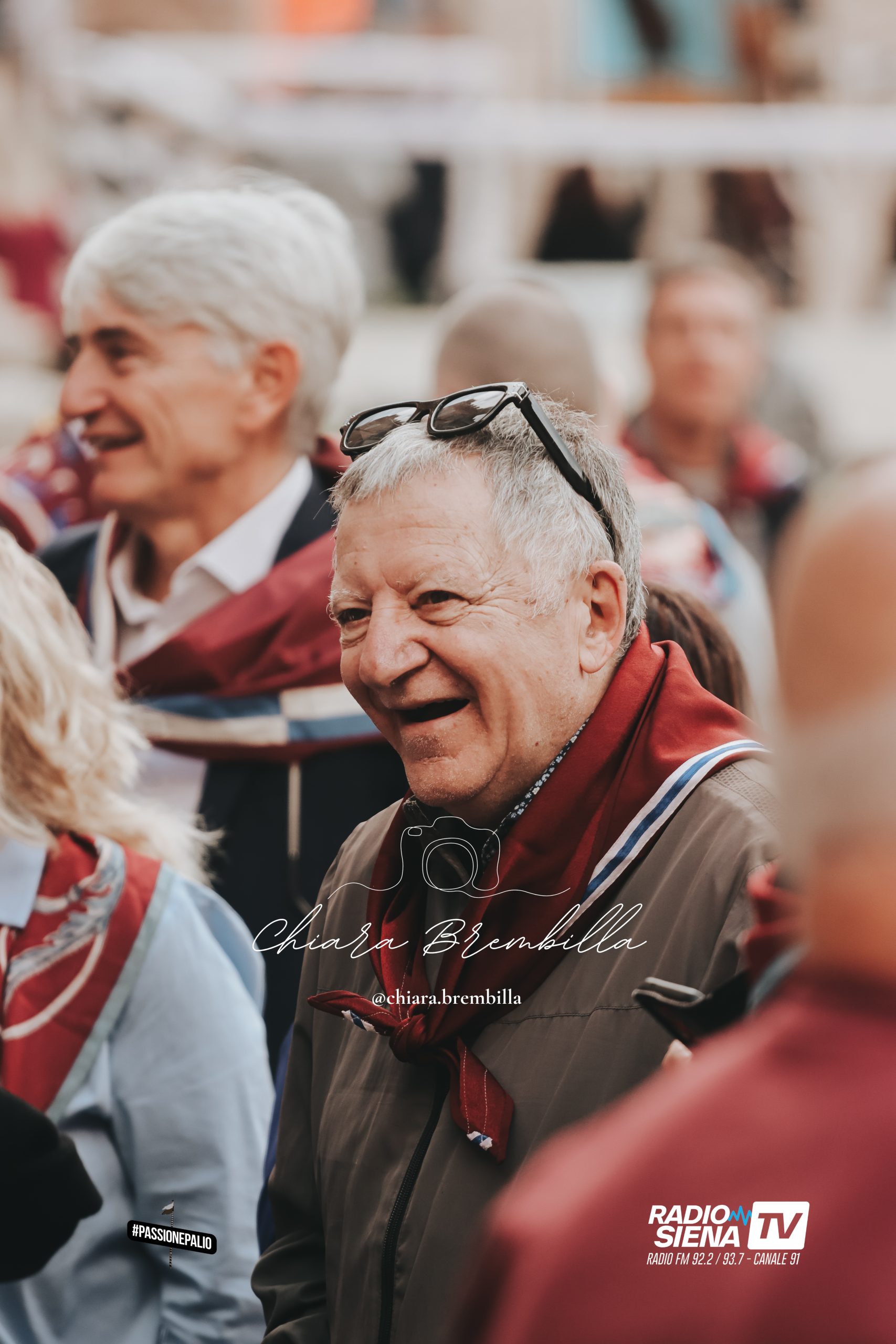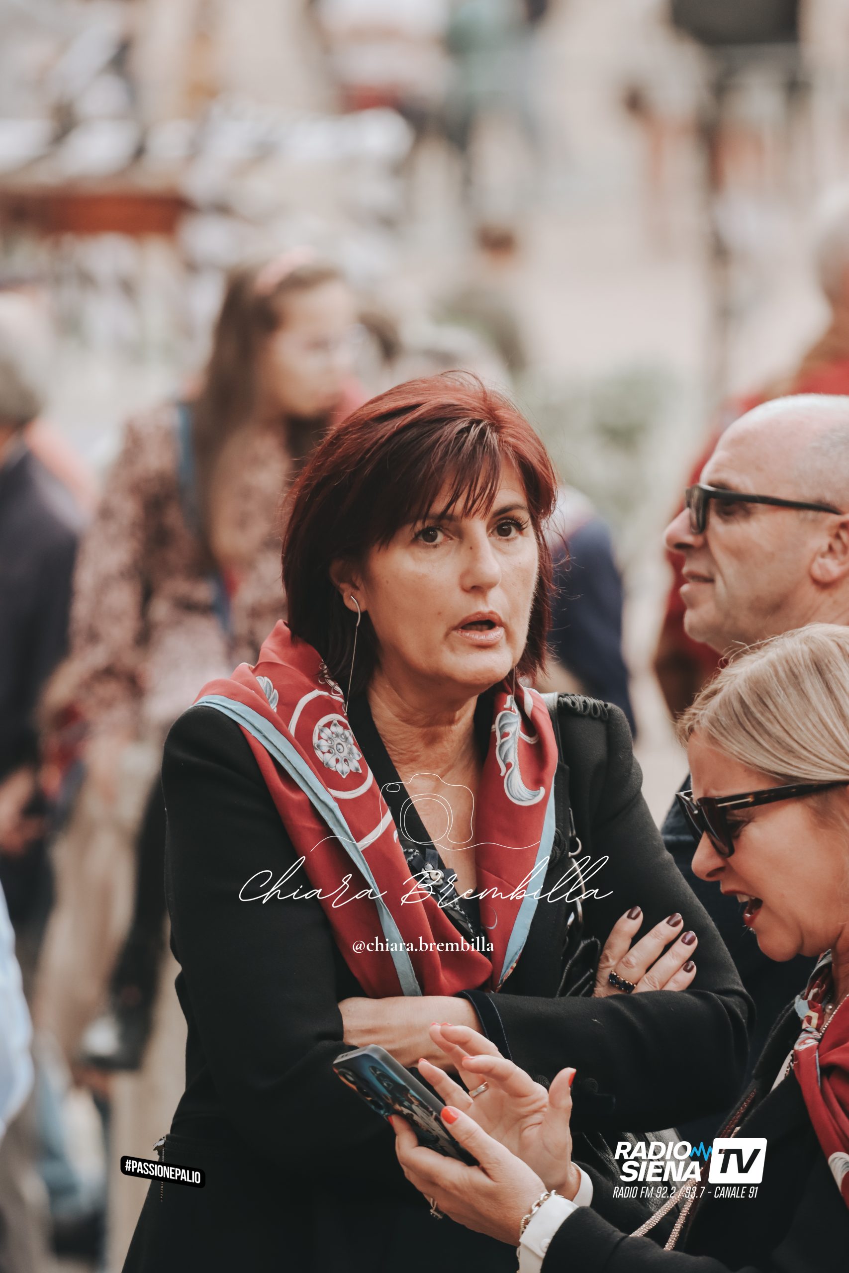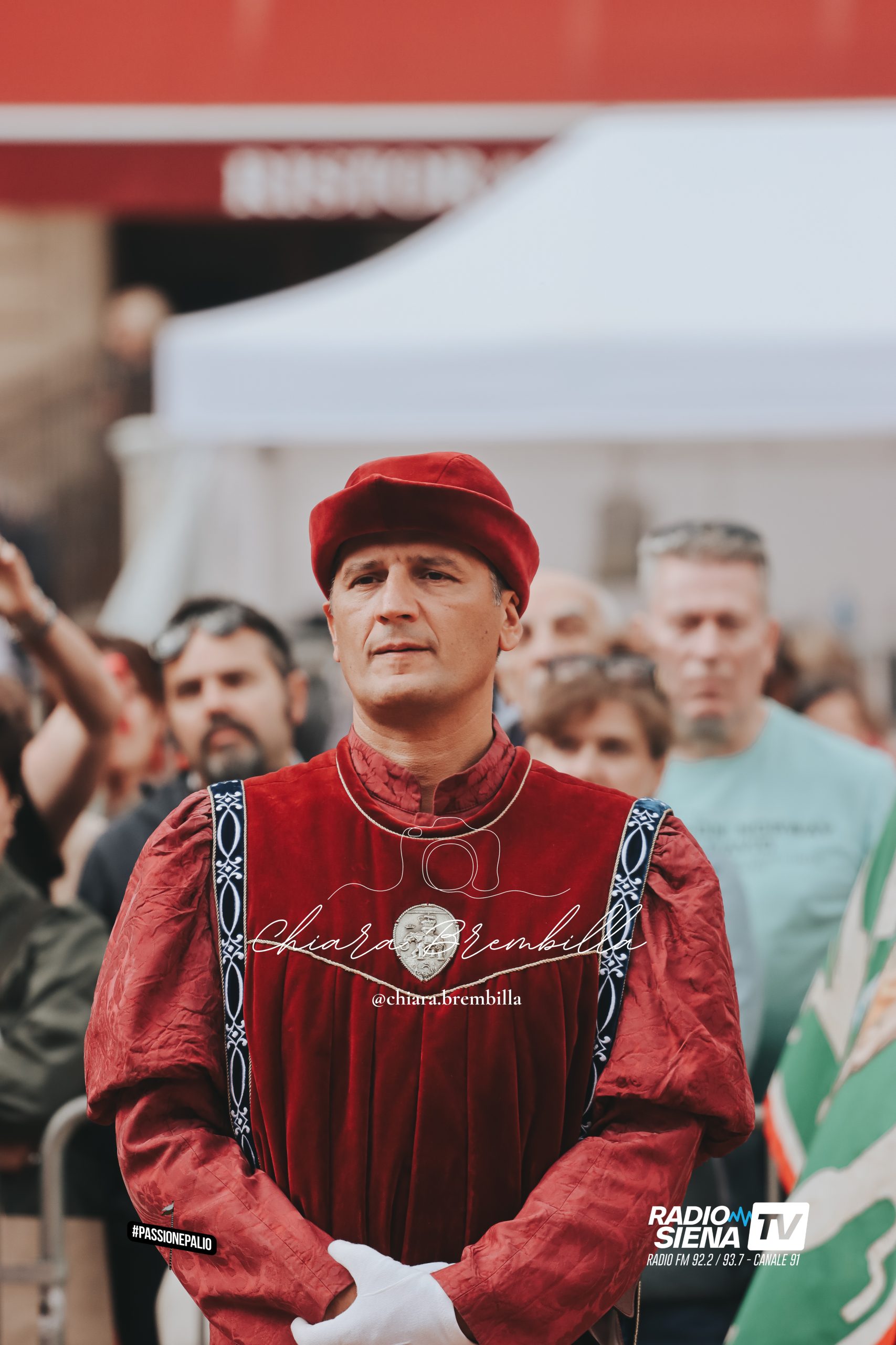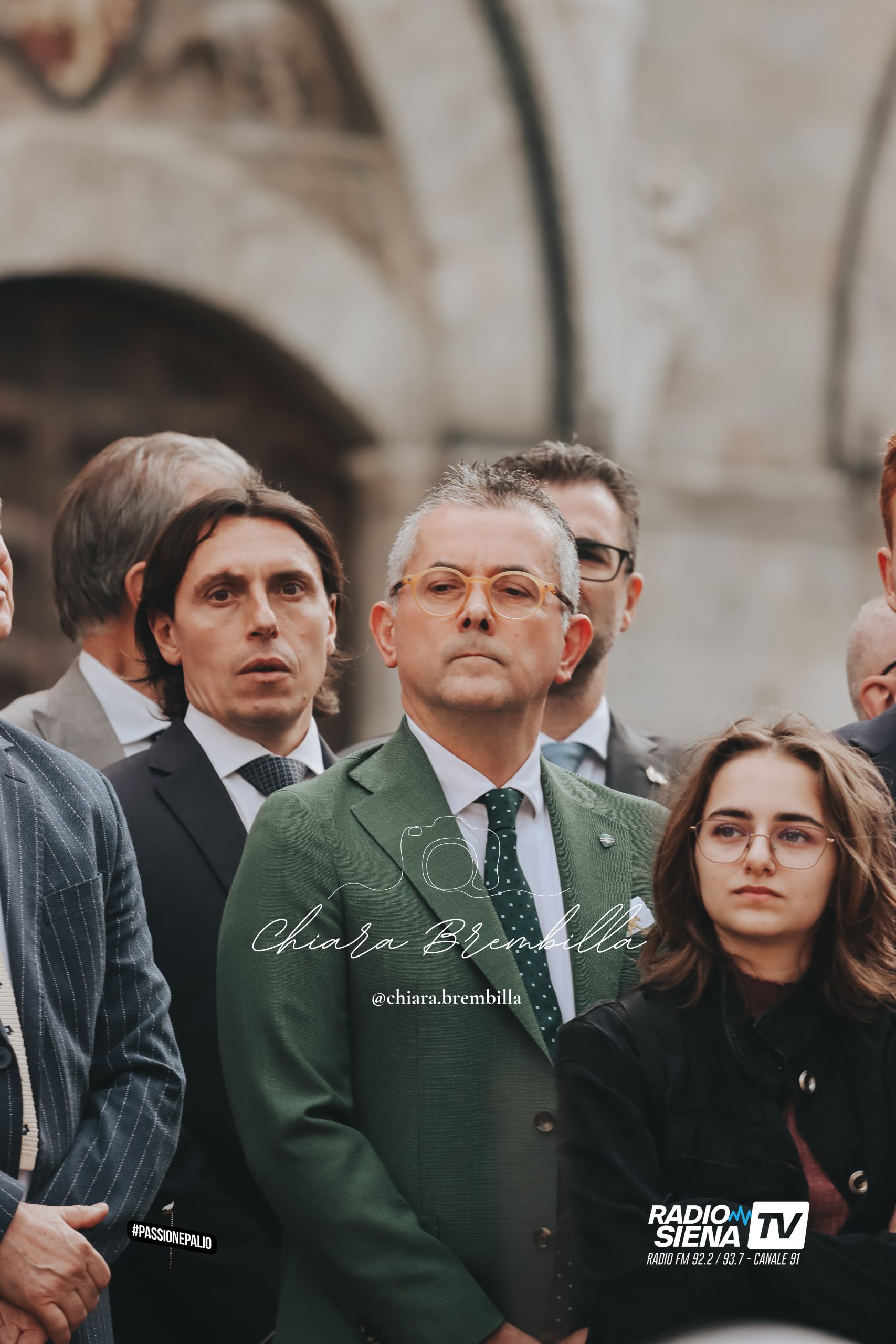 Durante l’evento sono stati consegnati anche i “bandierini” ai proprietari dei cavalli vincitori dei Palii del 2025: Marco Tansini, proprietario di Diodoro, che ha vinto all’esordio sul tufo il Palio del 3 luglio per la Nobile Contrada dell’Oca, montato da Giovanni Atzeni detto Tittia e Harry Arthur Louis Westerman, proprietario di Anda e Bola, castrone baio di nove anni che, alla sua terza esperienza in Piazza, ha trionfato nella carriera di agosto per la Contrada del Valdimontone, montato da Giuseppe Zedde detto Gingillo.