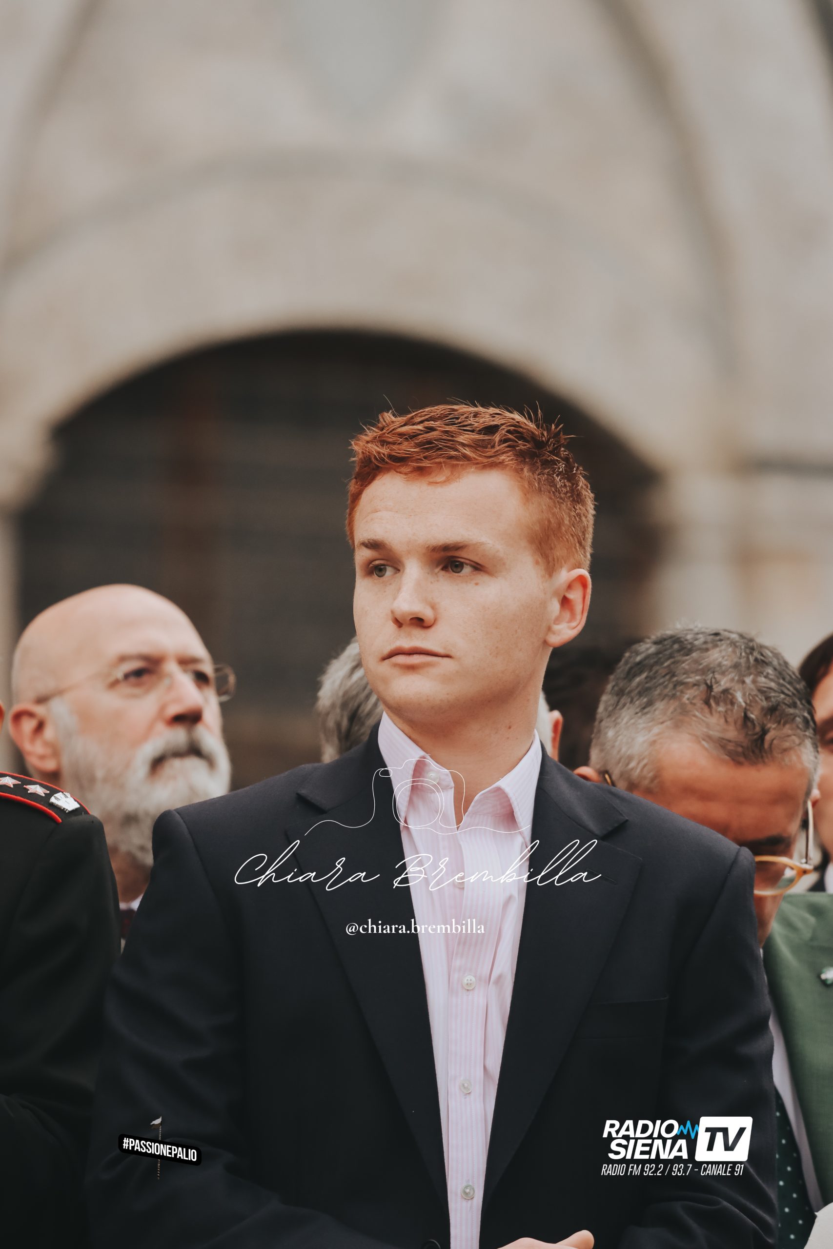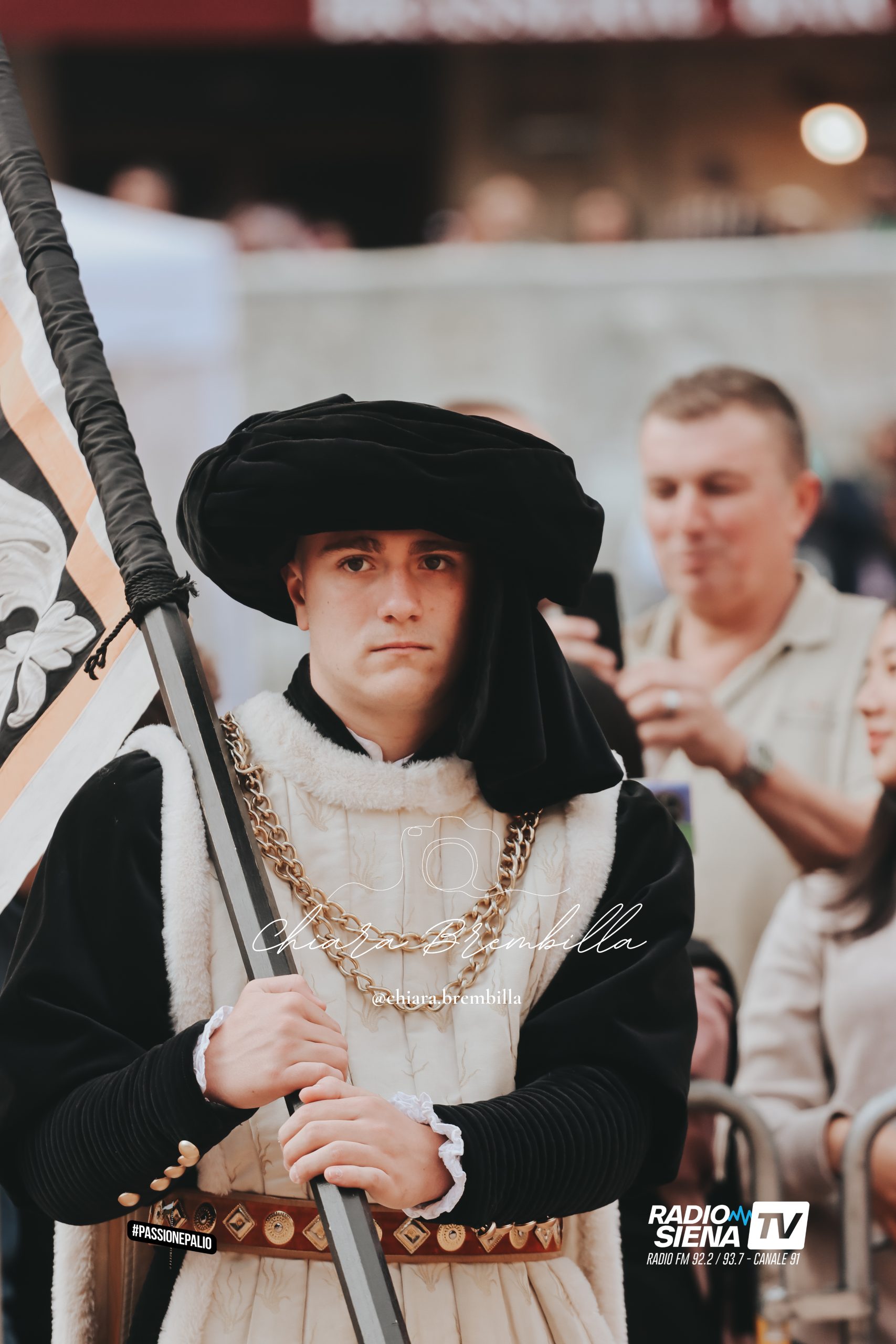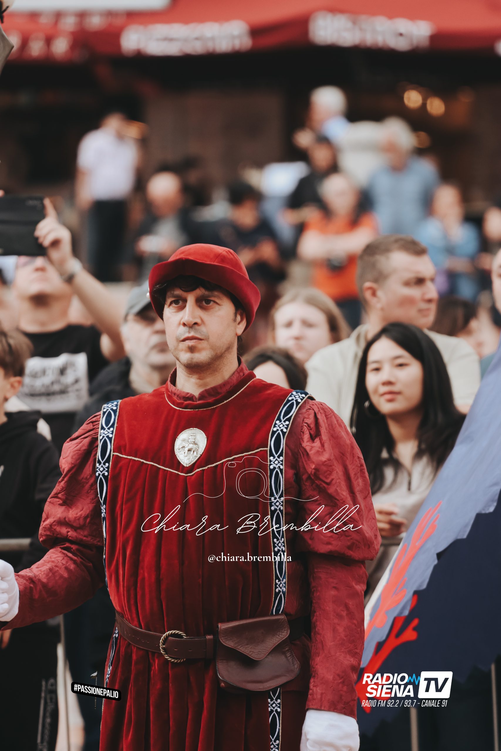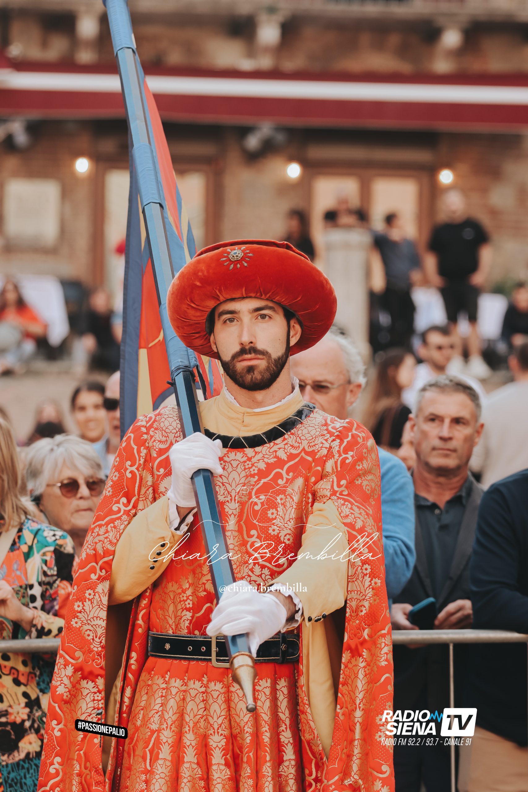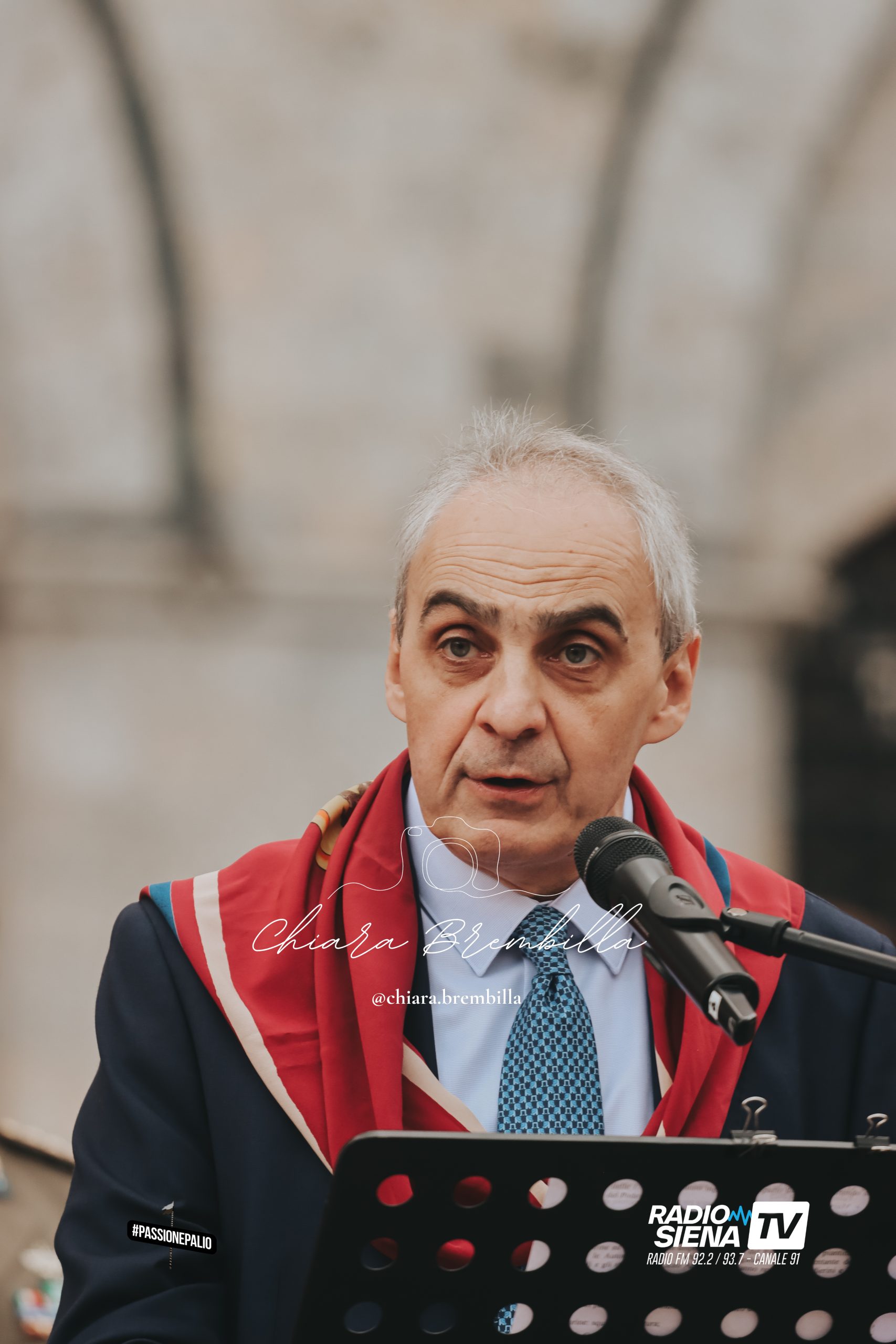 Durante l’evento sono stati consegnati anche i “bandierini” ai proprietari dei cavalli vincitori dei Palii del 2025: Marco Tansini, proprietario di Diodoro, che ha vinto all’esordio sul tufo il Palio del 3 luglio per la Nobile Contrada dell’Oca, montato da Giovanni Atzeni detto Tittia e Harry Arthur Louis Westerman, proprietario di Anda e Bola, castrone baio di nove anni che, alla sua terza esperienza in Piazza, ha trionfato nella carriera di agosto per la Contrada del Valdimontone, montato da Giuseppe Zedde detto Gingillo.