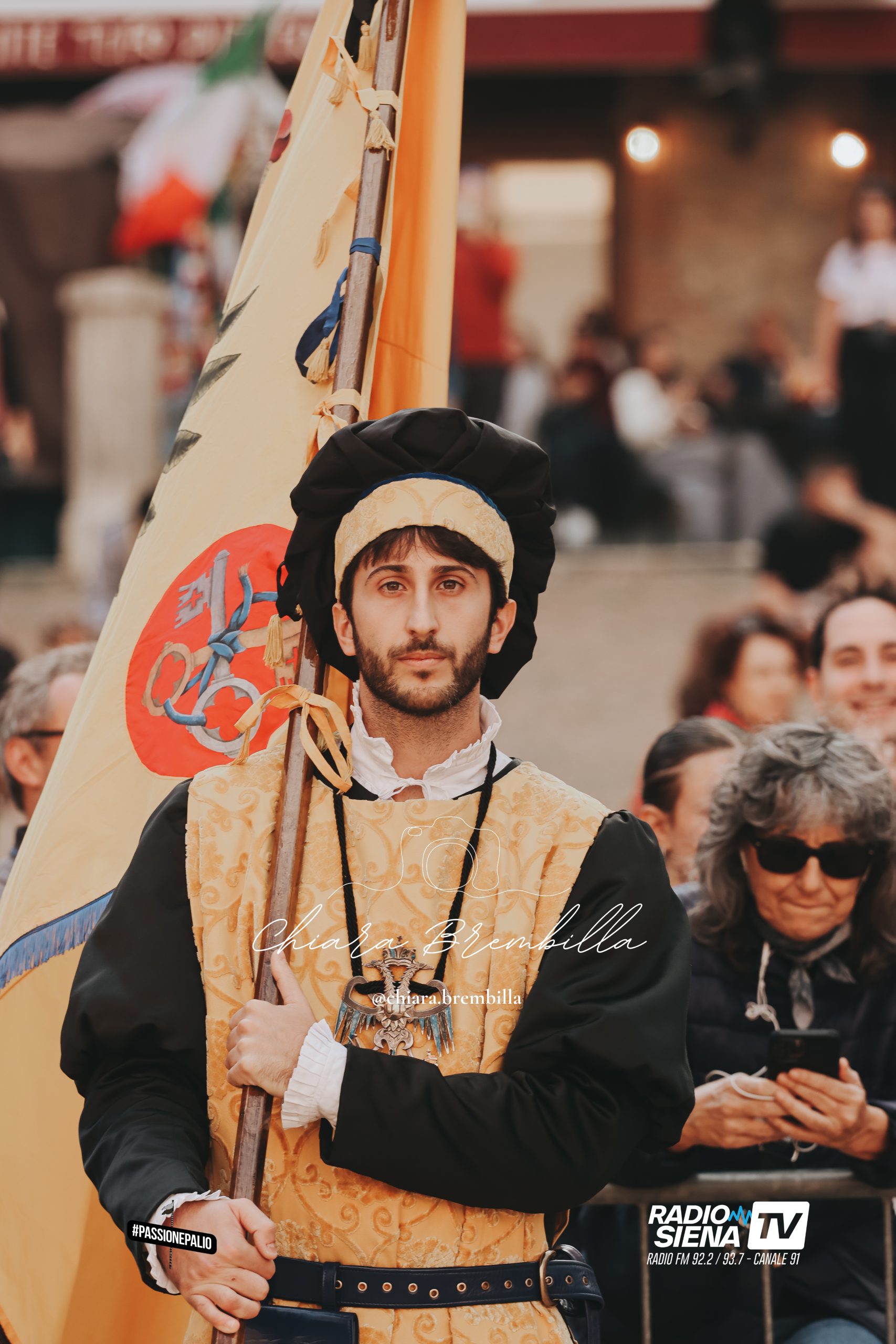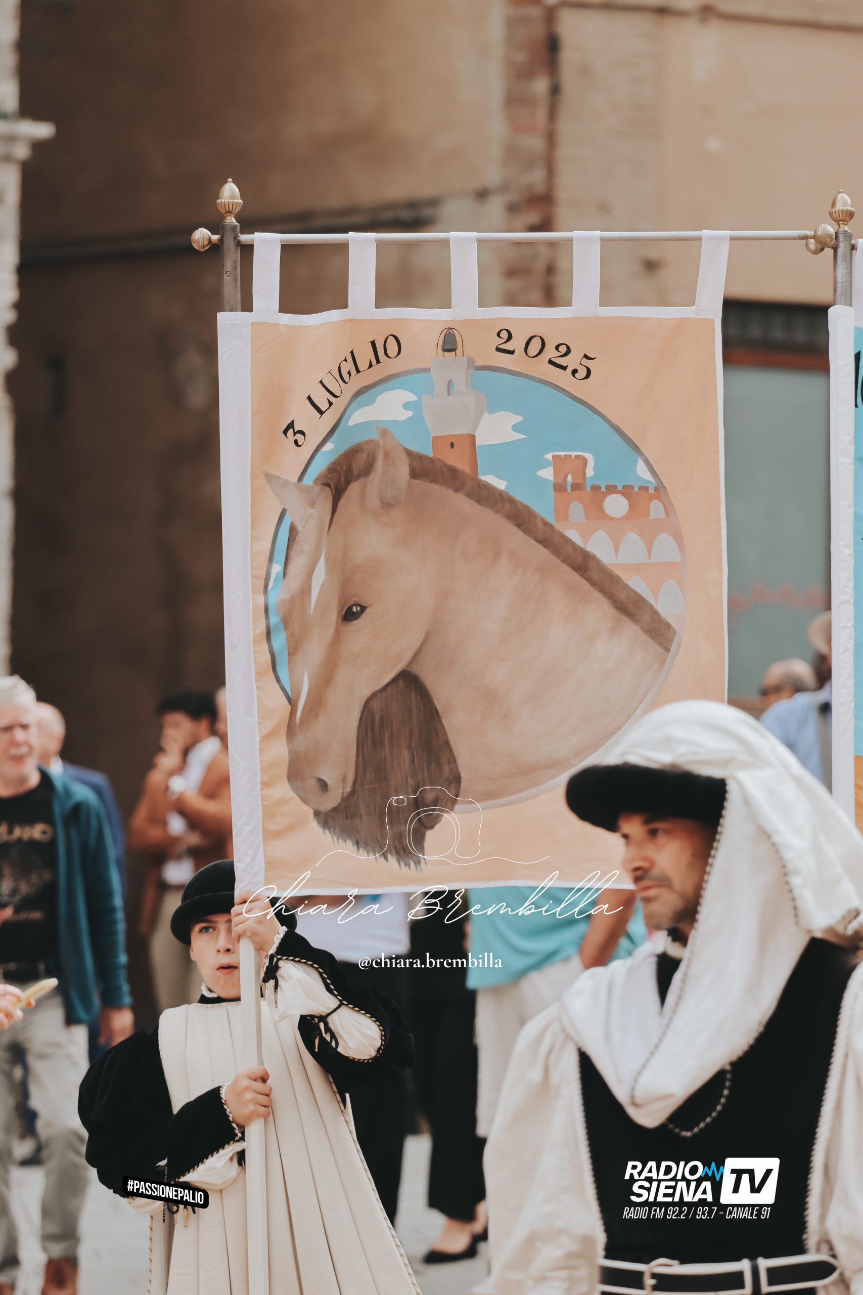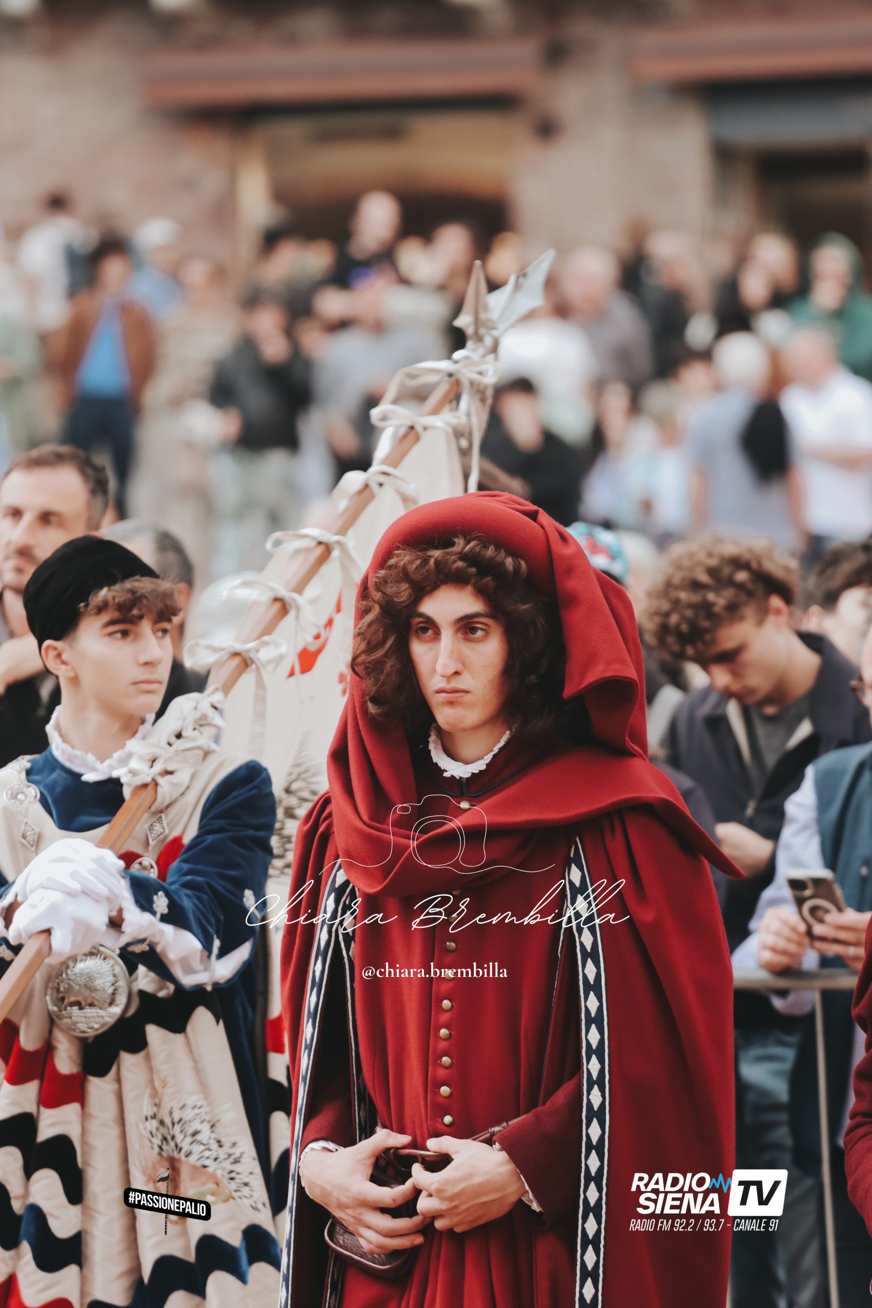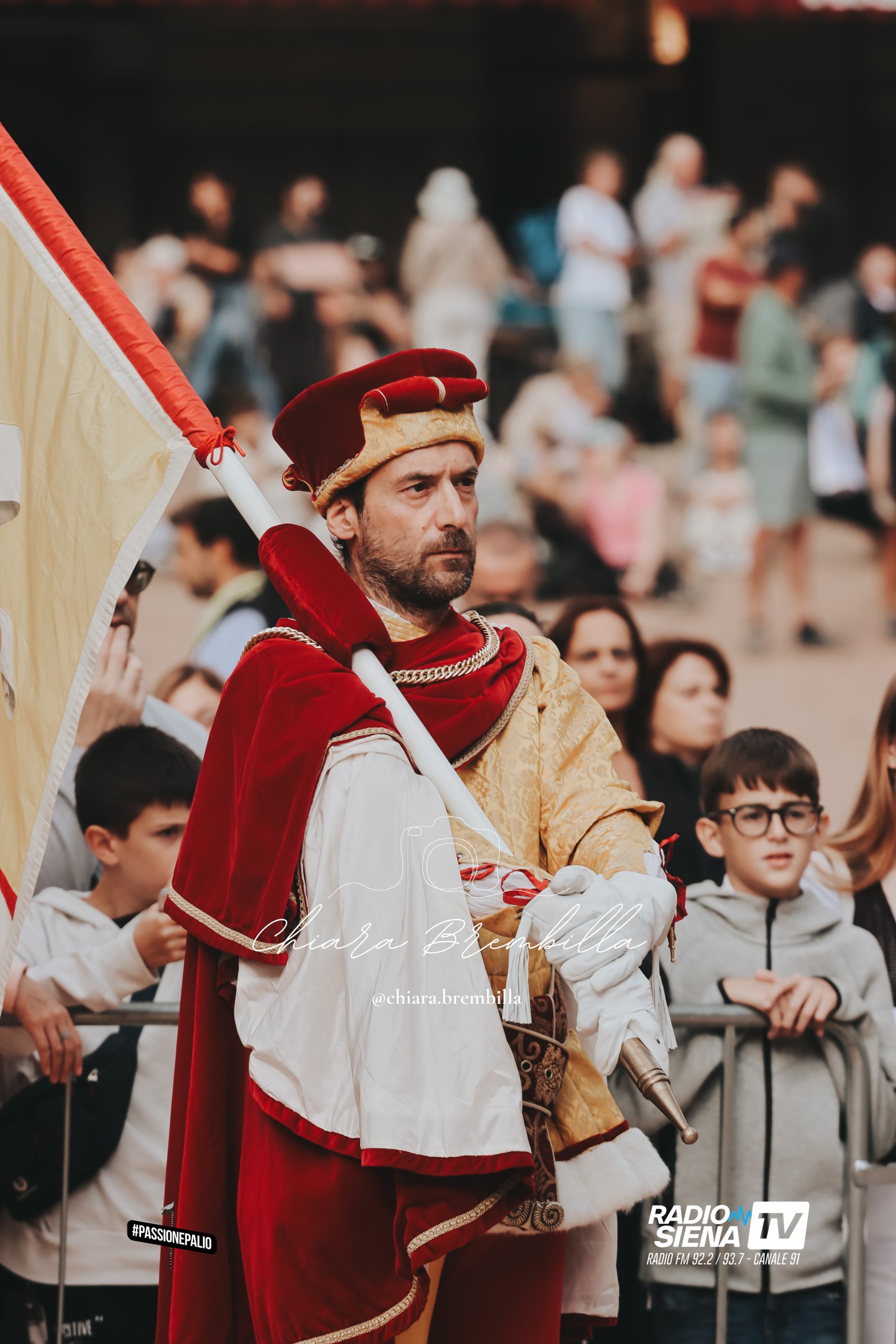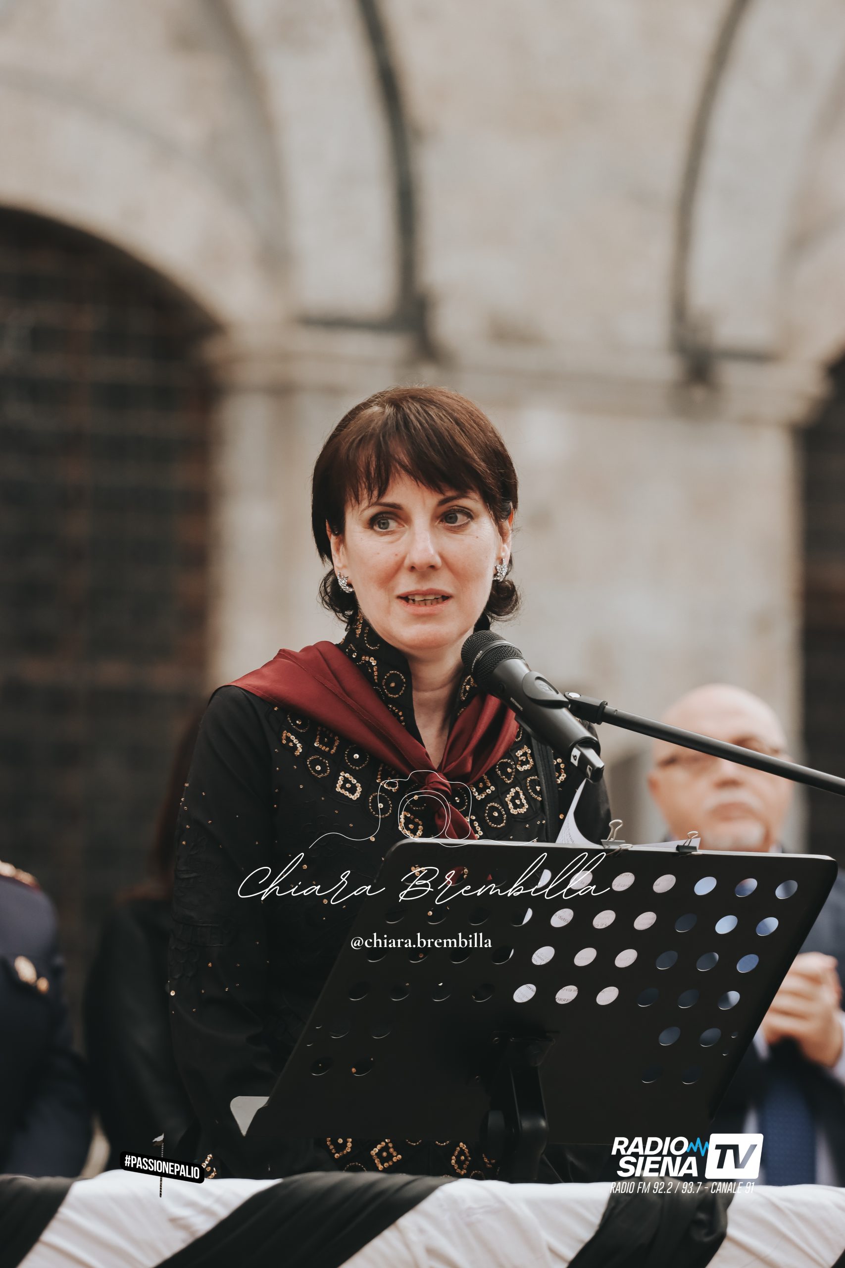 Durante l’evento sono stati consegnati anche i “bandierini” ai proprietari dei cavalli vincitori dei Palii del 2025: Marco Tansini, proprietario di Diodoro, che ha vinto all’esordio sul tufo il Palio del 3 luglio per la Nobile Contrada dell’Oca, montato da Giovanni Atzeni detto Tittia e Harry Arthur Louis Westerman, proprietario di Anda e Bola, castrone baio di nove anni che, alla sua terza esperienza in Piazza, ha trionfato nella carriera di agosto per la Contrada del Valdimontone, montato da Giuseppe Zedde detto Gingillo.
