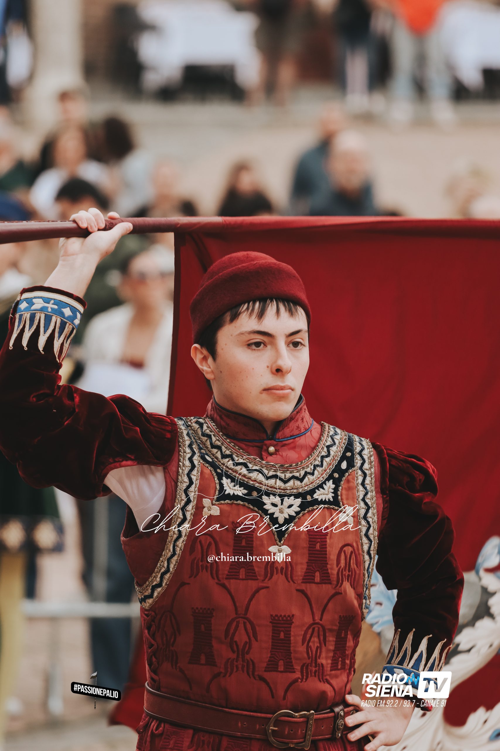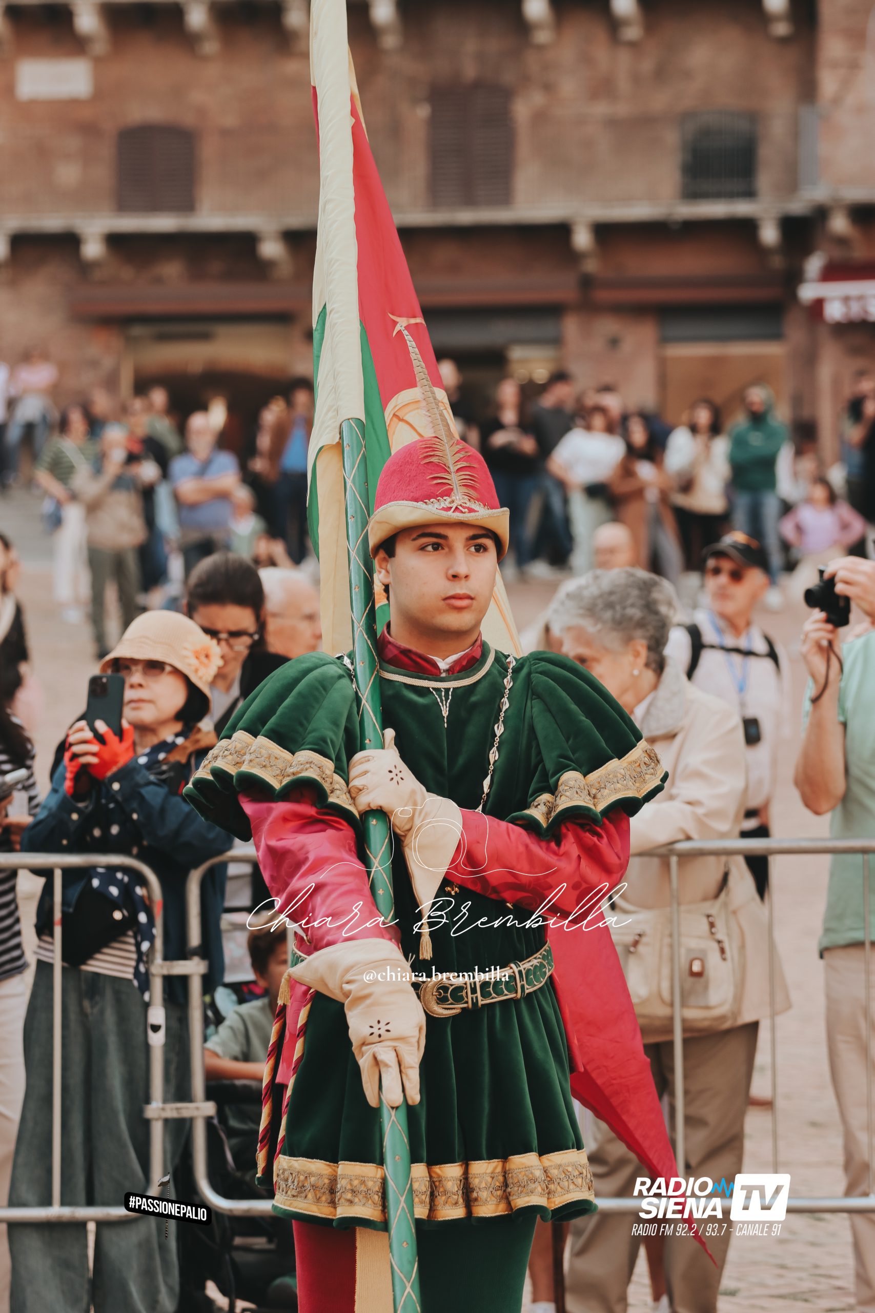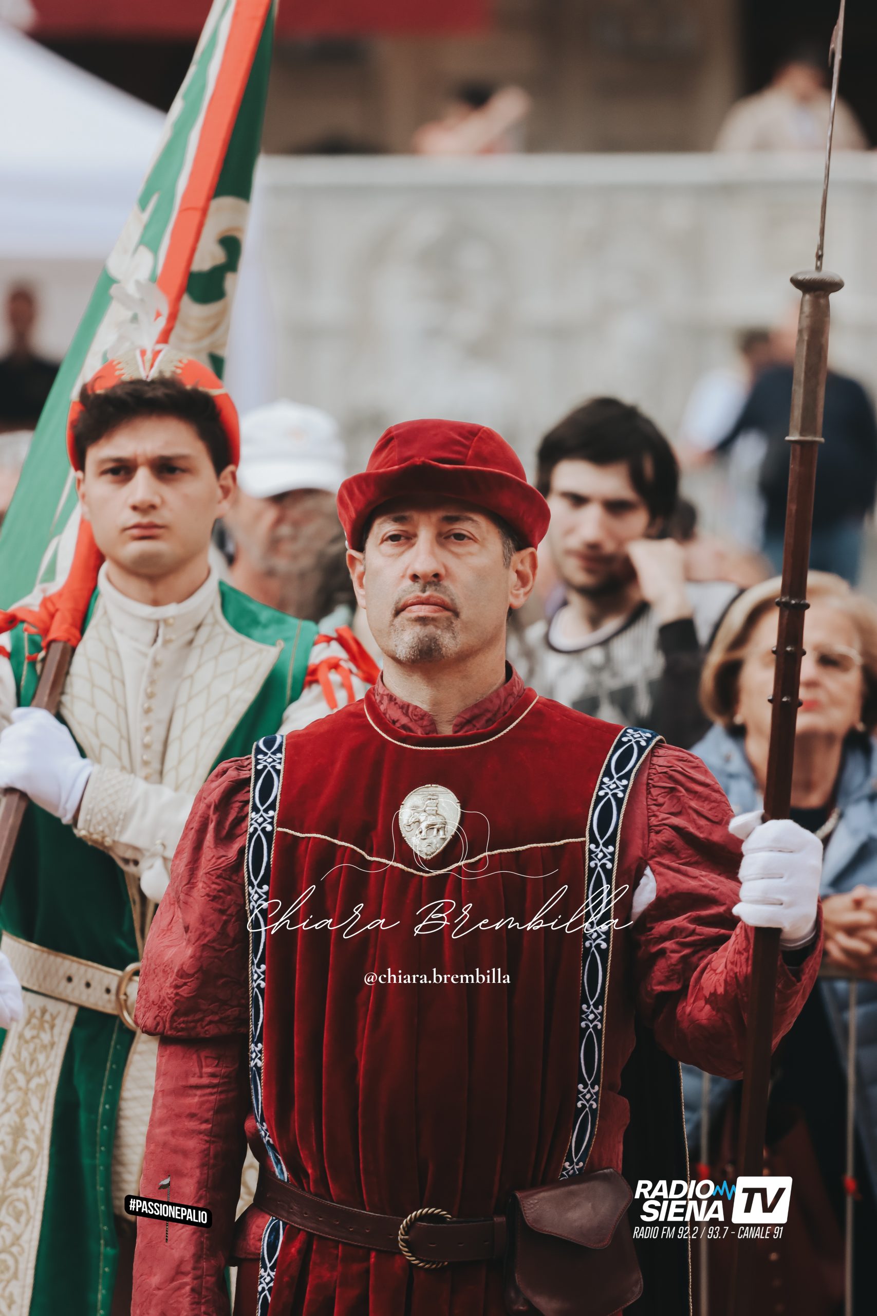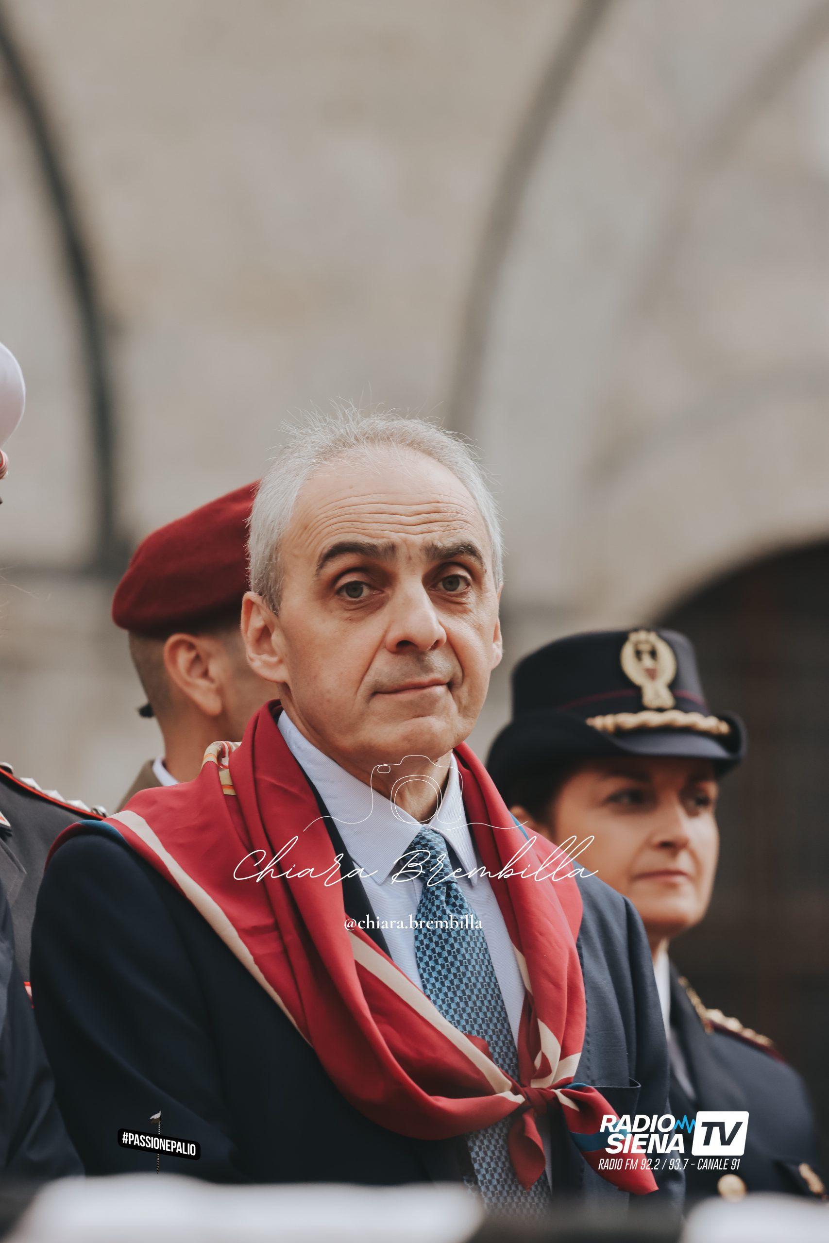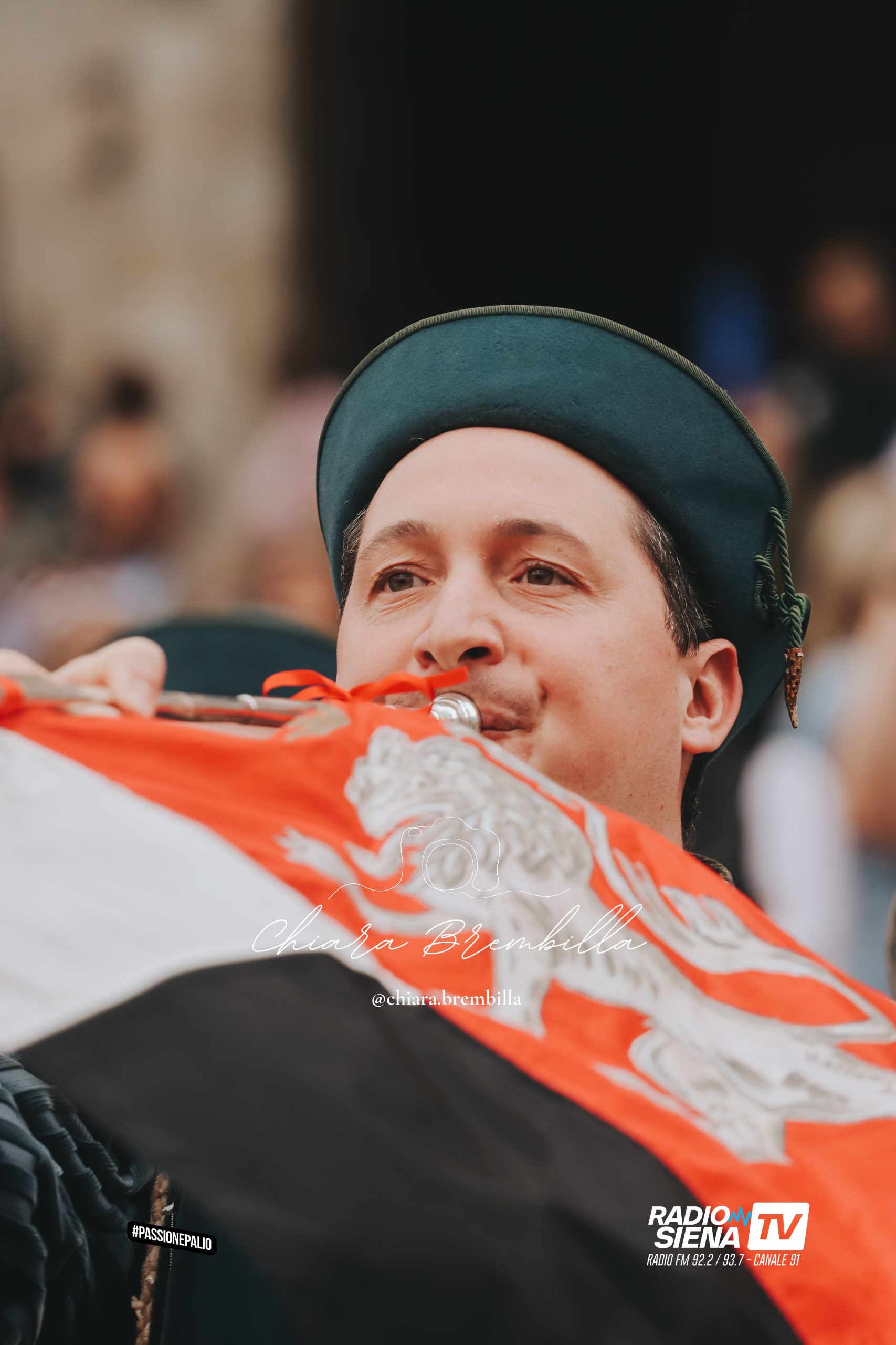 Durante l’evento sono stati consegnati anche i “bandierini” ai proprietari dei cavalli vincitori dei Palii del 2025: Marco Tansini, proprietario di Diodoro, che ha vinto all’esordio sul tufo il Palio del 3 luglio per la Nobile Contrada dell’Oca, montato da Giovanni Atzeni detto Tittia e Harry Arthur Louis Westerman, proprietario di Anda e Bola, castrone baio di nove anni che, alla sua terza esperienza in Piazza, ha trionfato nella carriera di agosto per la Contrada del Valdimontone, montato da Giuseppe Zedde detto Gingillo.