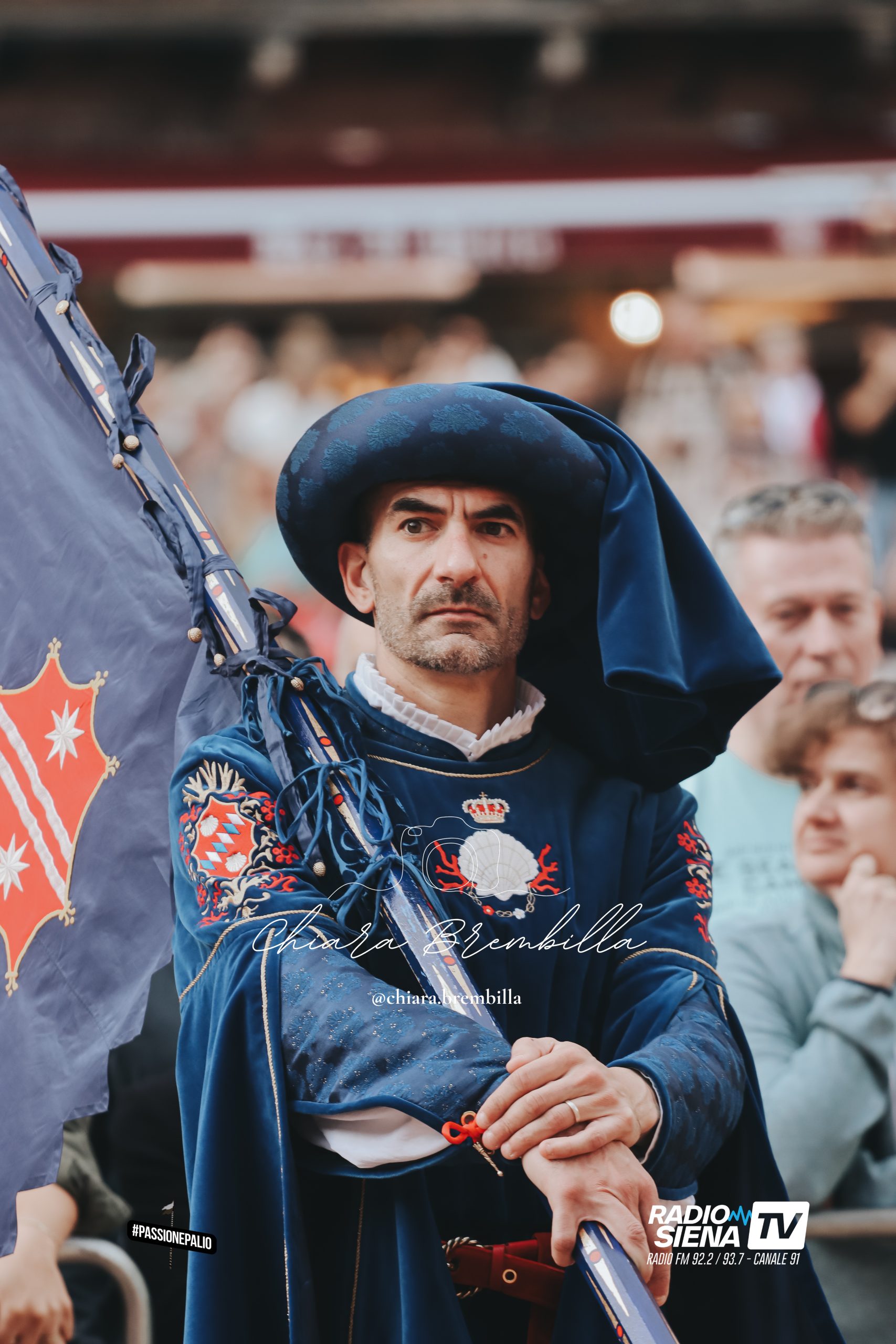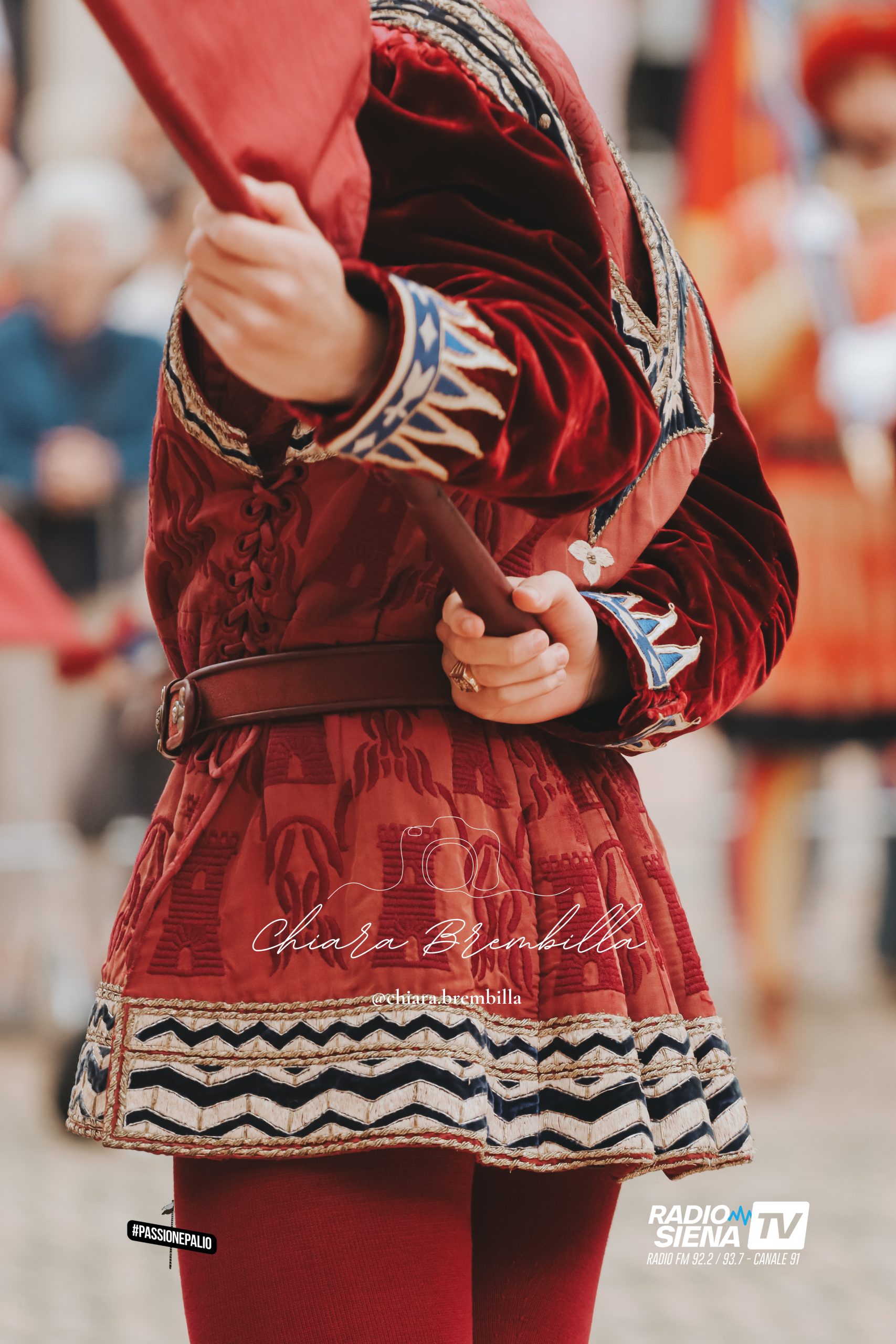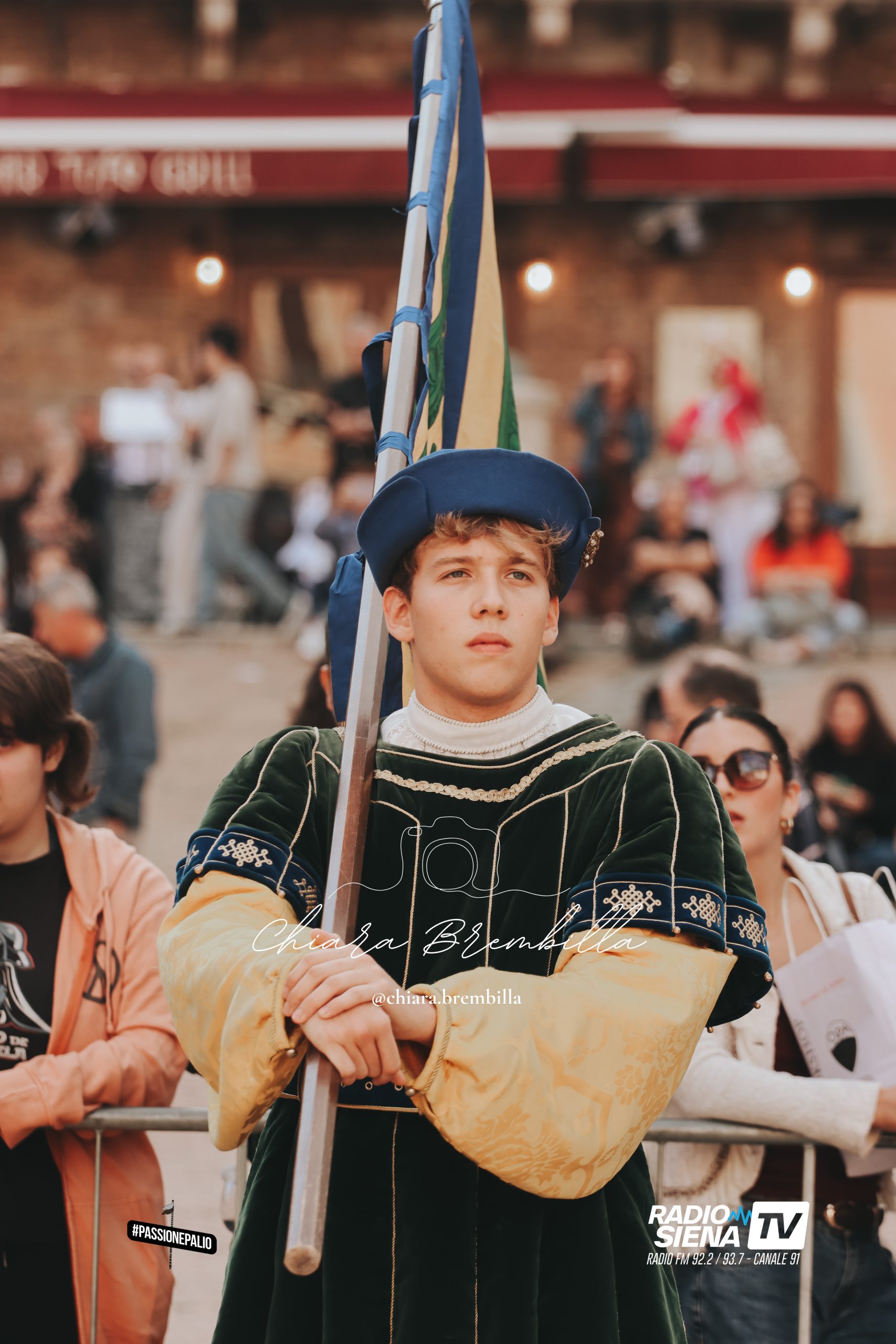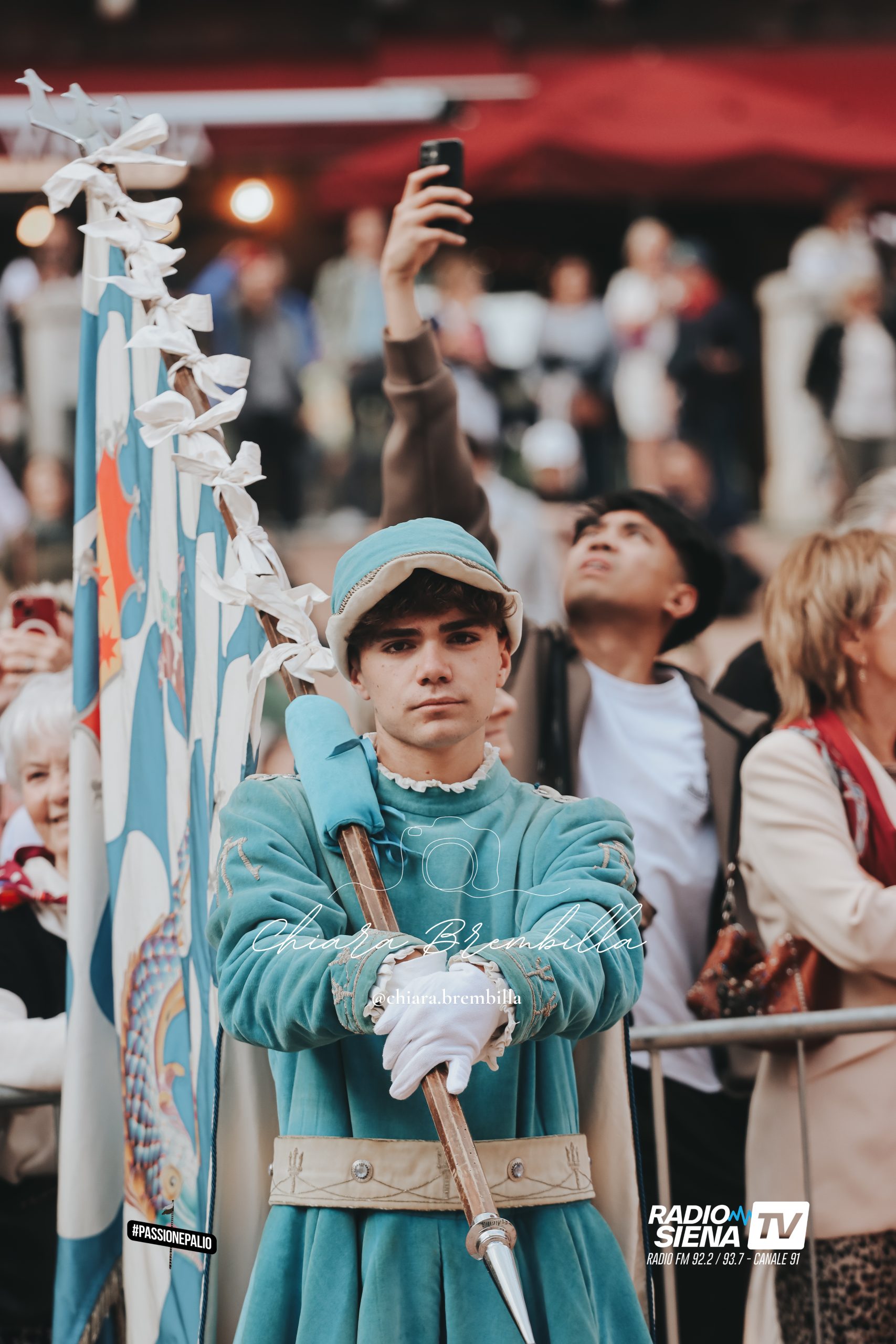 Durante l’evento sono stati consegnati anche i “bandierini” ai proprietari dei cavalli vincitori dei Palii del 2025: Marco Tansini, proprietario di Diodoro, che ha vinto all’esordio sul tufo il Palio del 3 luglio per la Nobile Contrada dell’Oca, montato da Giovanni Atzeni detto Tittia e Harry Arthur Louis Westerman, proprietario di Anda e Bola, castrone baio di nove anni che, alla sua terza esperienza in Piazza, ha trionfato nella carriera di agosto per la Contrada del Valdimontone, montato da Giuseppe Zedde detto Gingillo.