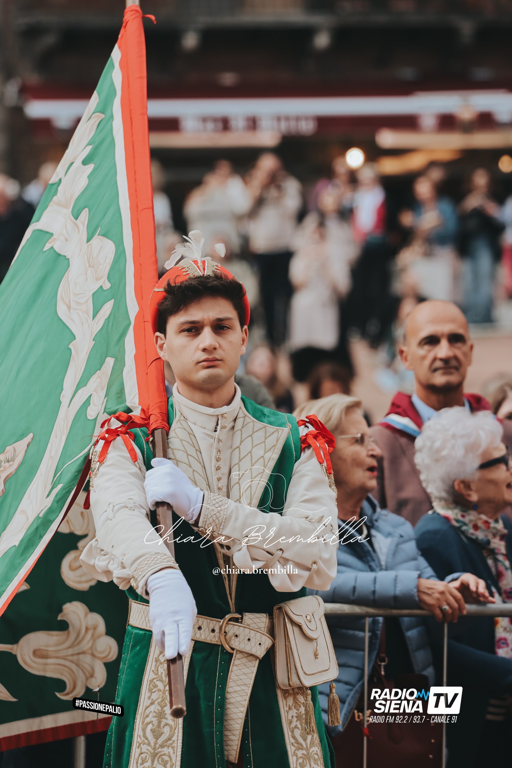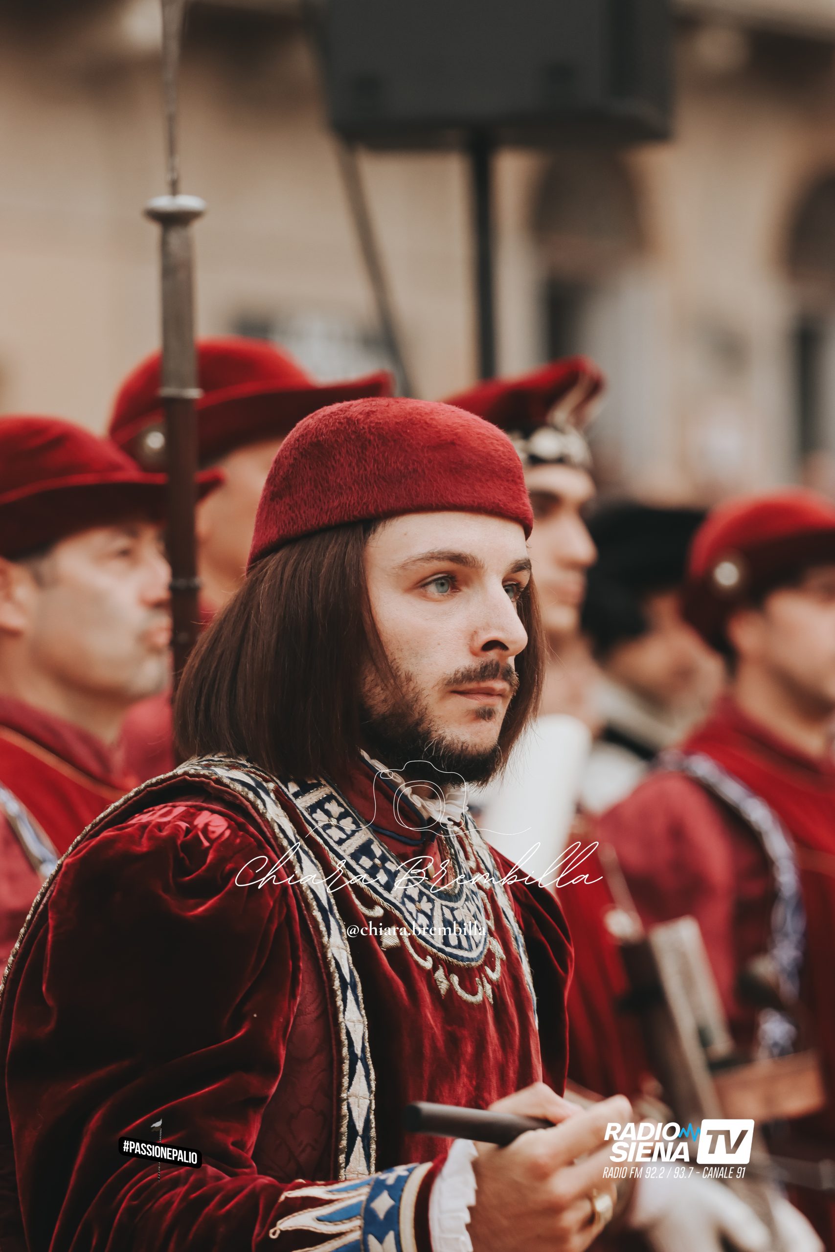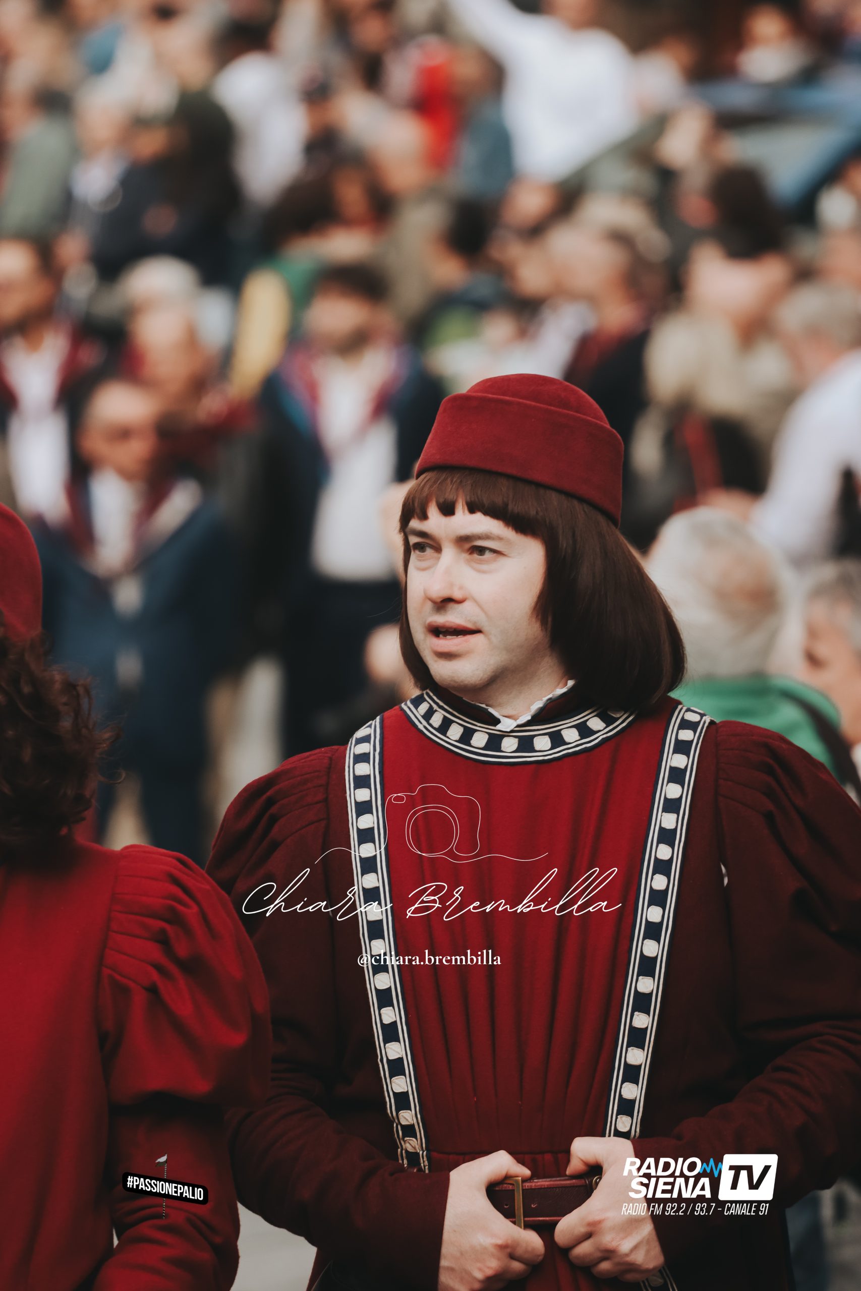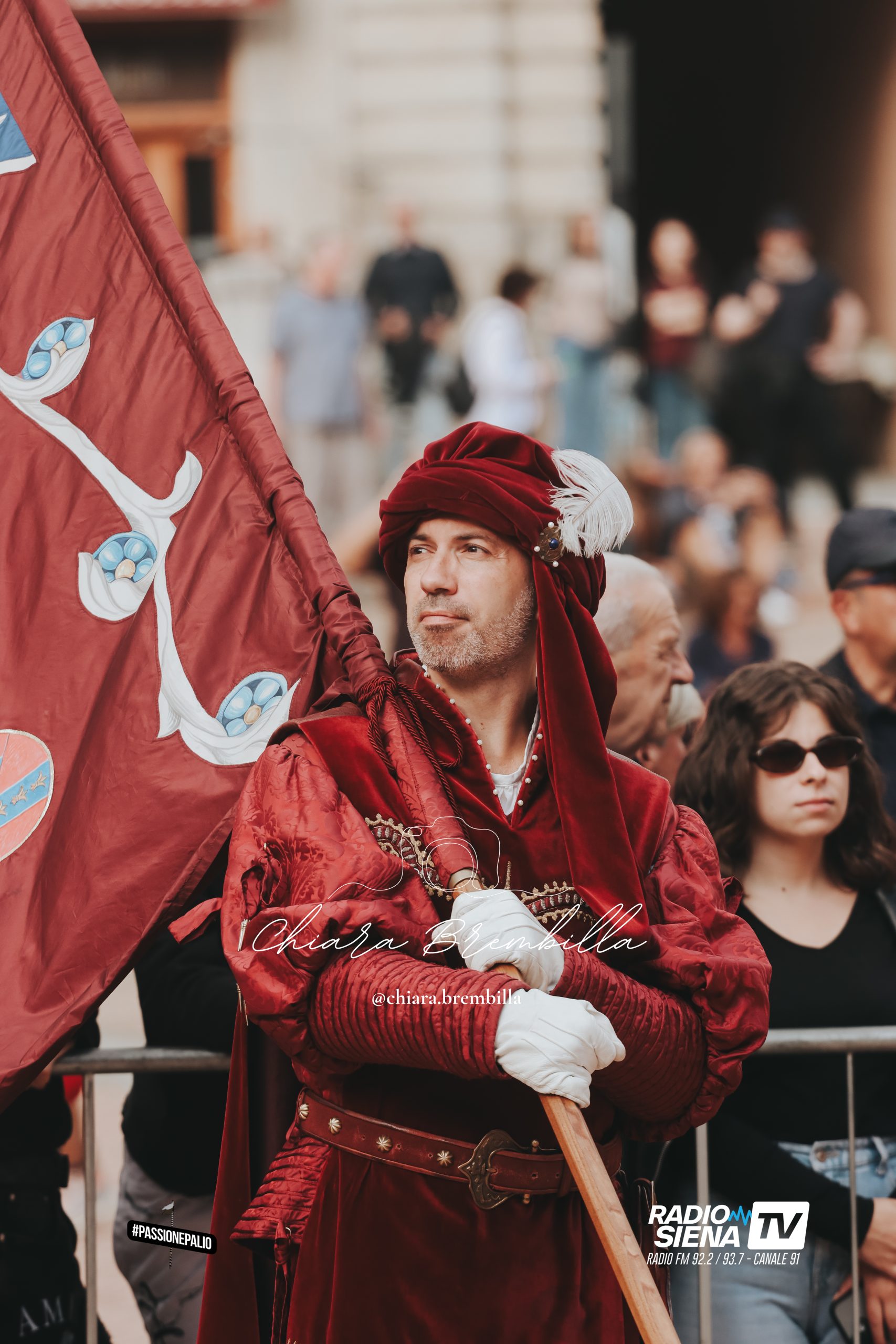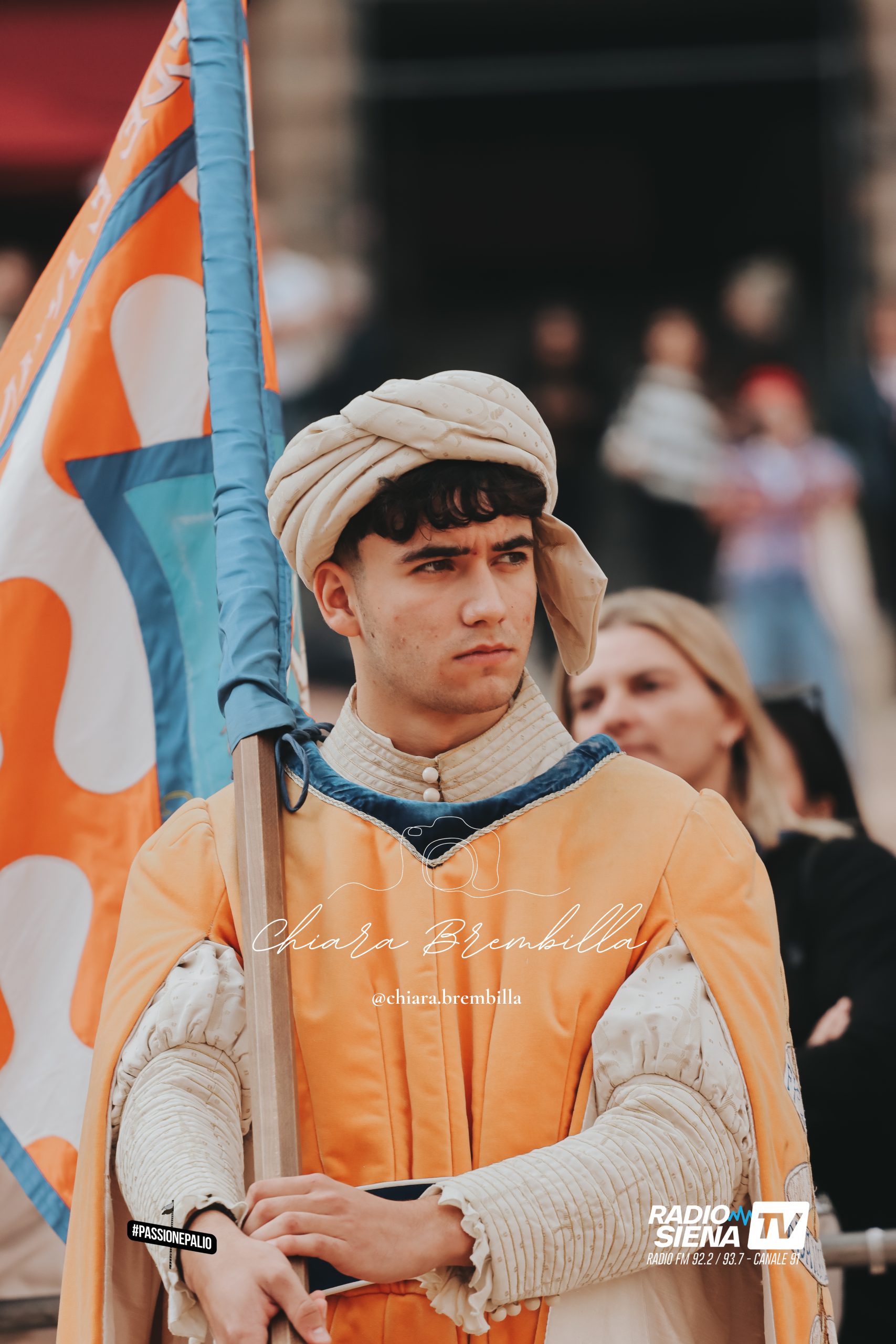 Durante l’evento sono stati consegnati anche i “bandierini” ai proprietari dei cavalli vincitori dei Palii del 2025: Marco Tansini, proprietario di Diodoro, che ha vinto all’esordio sul tufo il Palio del 3 luglio per la Nobile Contrada dell’Oca, montato da Giovanni Atzeni detto Tittia e Harry Arthur Louis Westerman, proprietario di Anda e Bola, castrone baio di nove anni che, alla sua terza esperienza in Piazza, ha trionfato nella carriera di agosto per la Contrada del Valdimontone, montato da Giuseppe Zedde detto Gingillo.