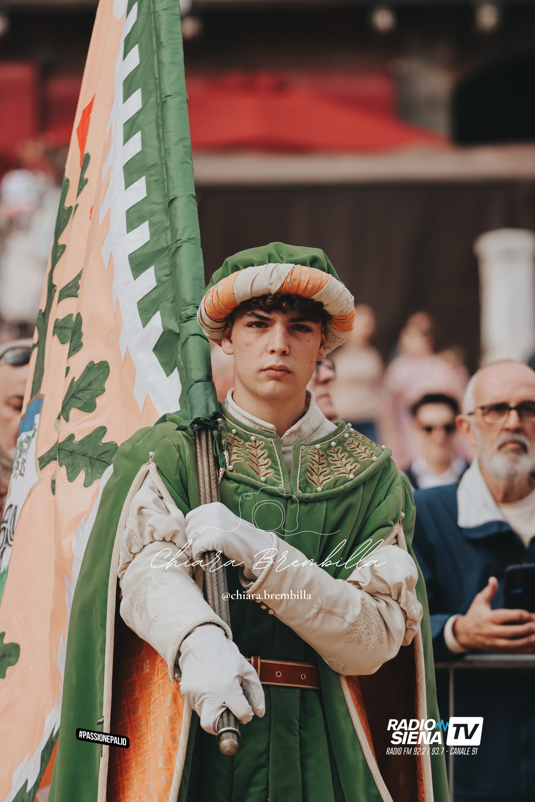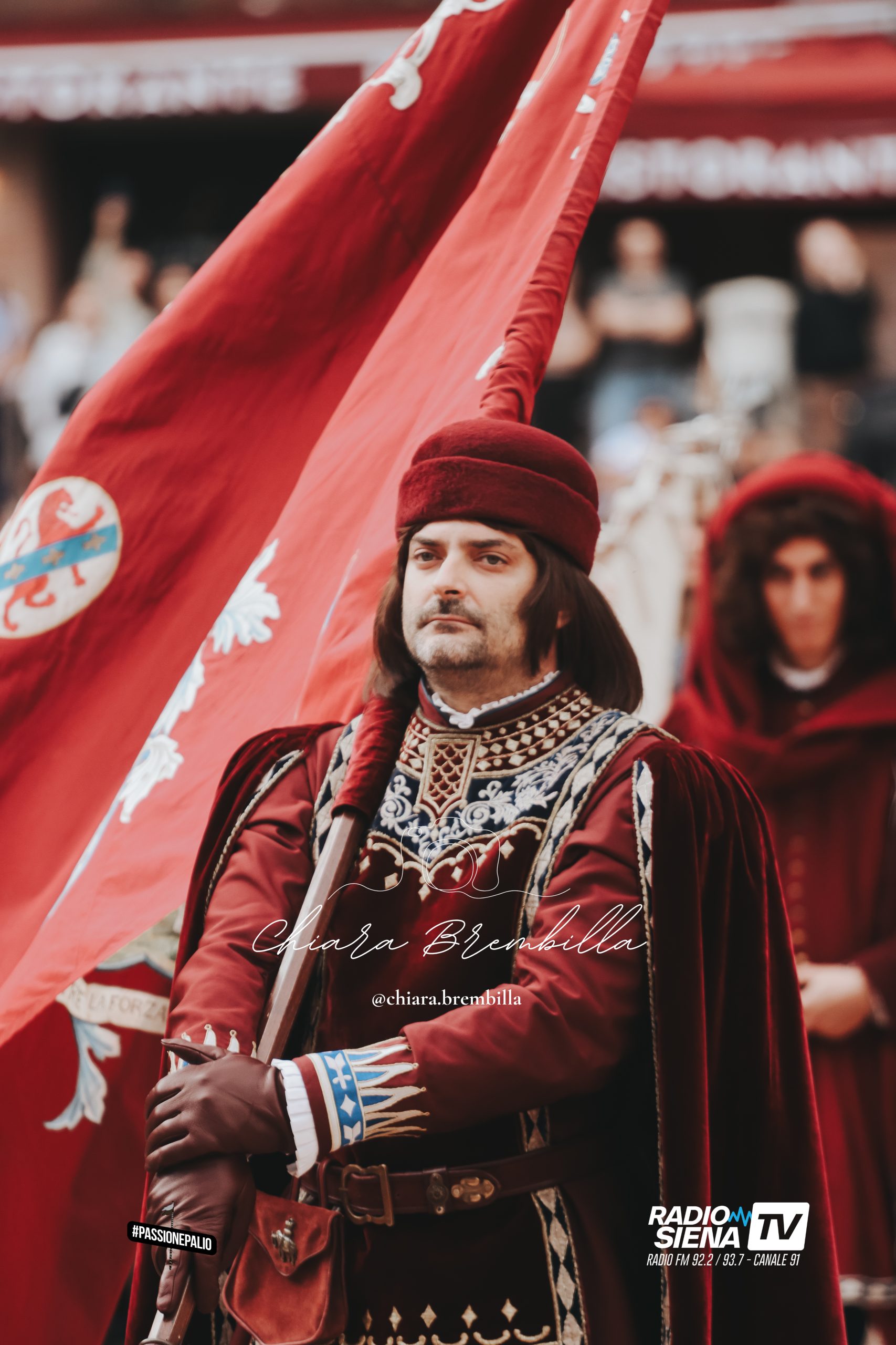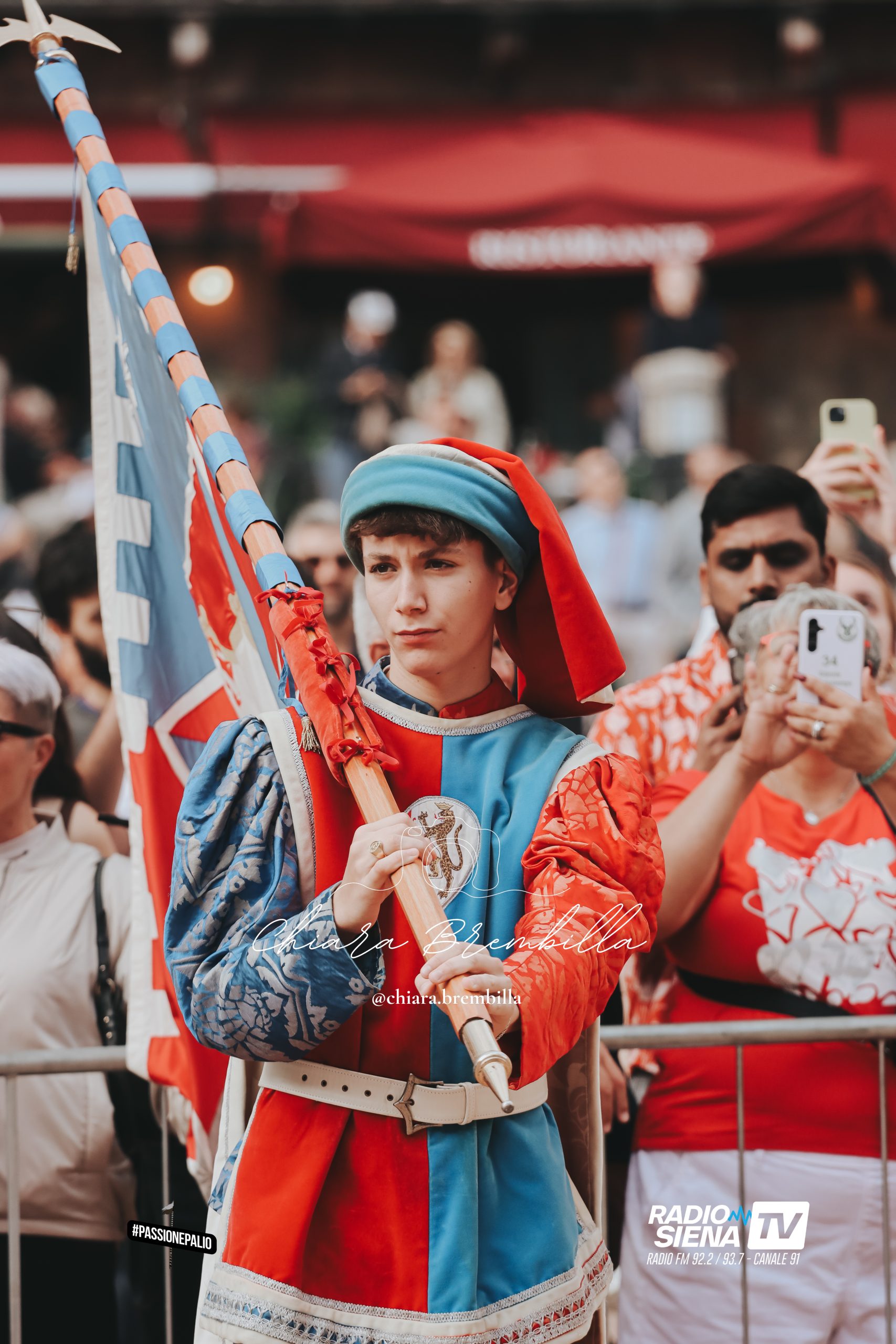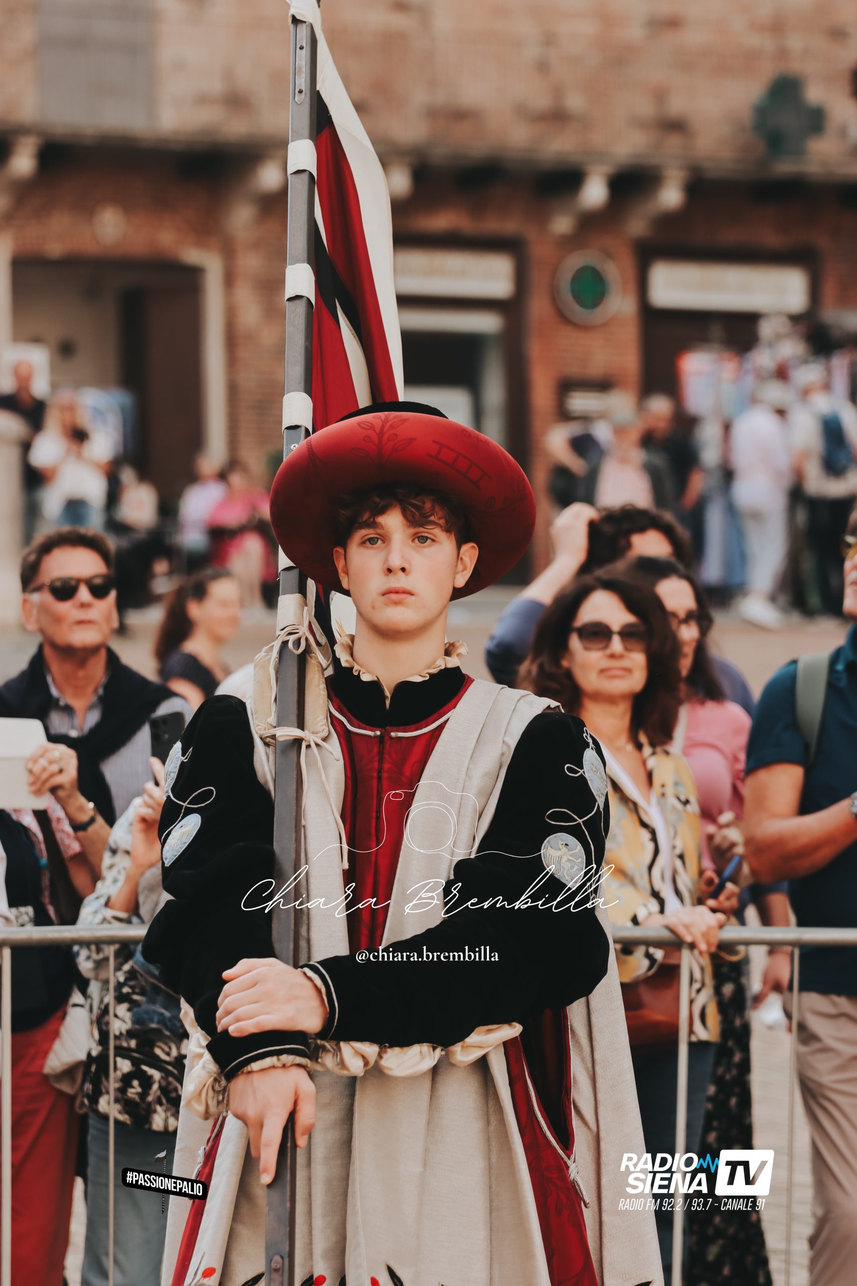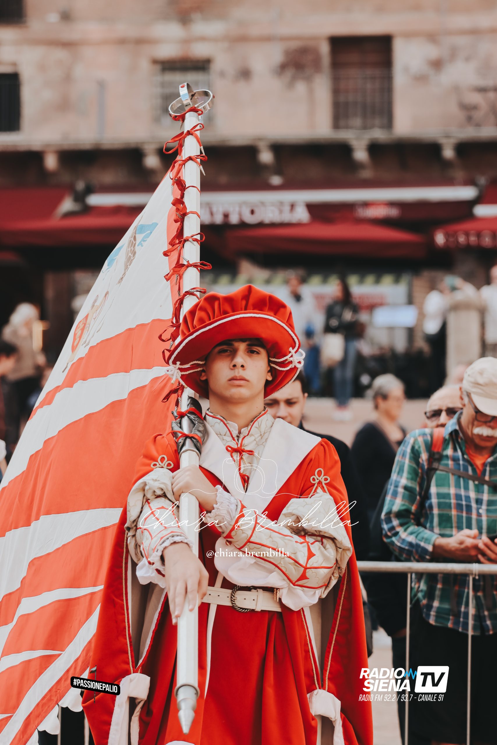 Durante l’evento sono stati consegnati anche i “bandierini” ai proprietari dei cavalli vincitori dei Palii del 2025: Marco Tansini, proprietario di Diodoro, che ha vinto all’esordio sul tufo il Palio del 3 luglio per la Nobile Contrada dell’Oca, montato da Giovanni Atzeni detto Tittia e Harry Arthur Louis Westerman, proprietario di Anda e Bola, castrone baio di nove anni che, alla sua terza esperienza in Piazza, ha trionfato nella carriera di agosto per la Contrada del Valdimontone, montato da Giuseppe Zedde detto Gingillo.