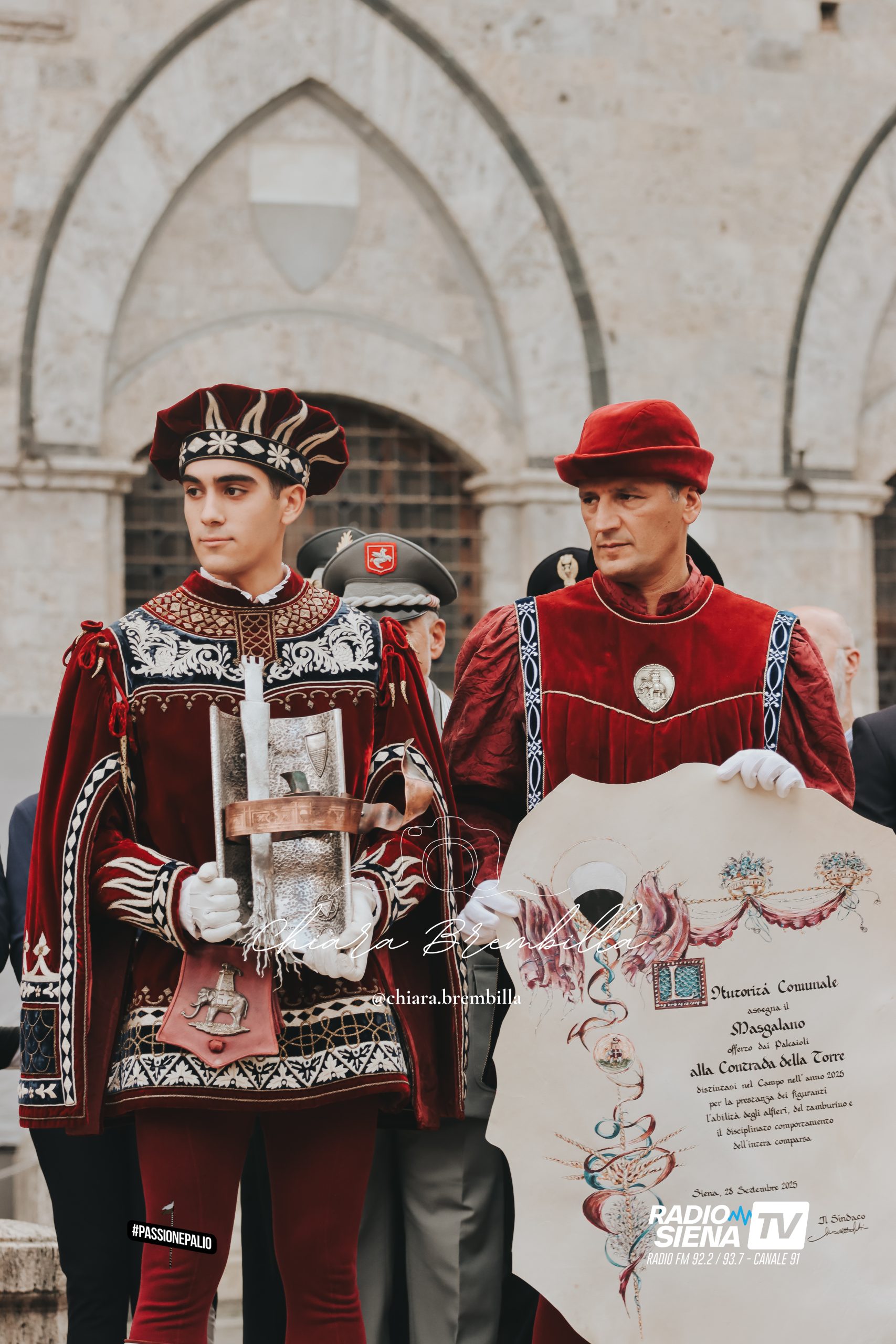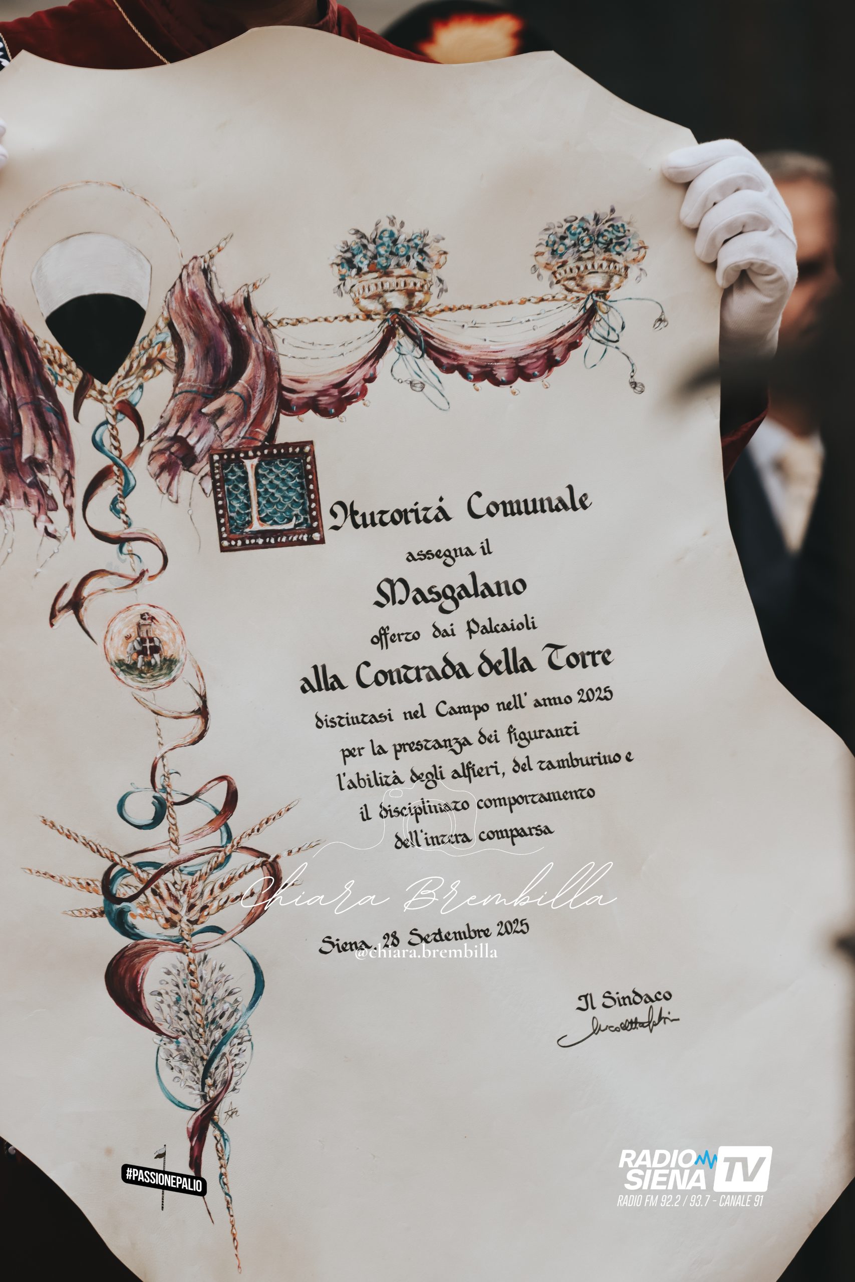 Si è svolta ieri, domenica 28 settembre 2025, la cerimonia di consegna del Masgalano 2025 alla Contrada della Torre.