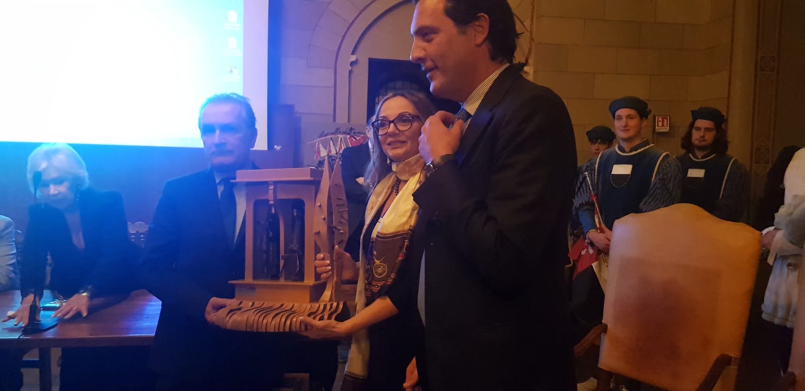 Si è tenuta ieri la cerimonia della trentanovesima edizione del “Premio Celli”, nella Sala delle Lupe di Palazzo Pubblico, durante la quale Laura Celli ha consegnato il riconoscimento al poeta e latinista Alessandro Fo, presentato dall’attrice Paola Lambardi, e Caterina Celli a Diego Nepi Molineris, direttore Sviluppo e Marketing del Coni, introdotto dal giornalista sportivo Massimo Caputi. A riprendere la cerimonia le telecamere di Siena Tv, che manderà in onda le immagini nel palinsesto natalizio.