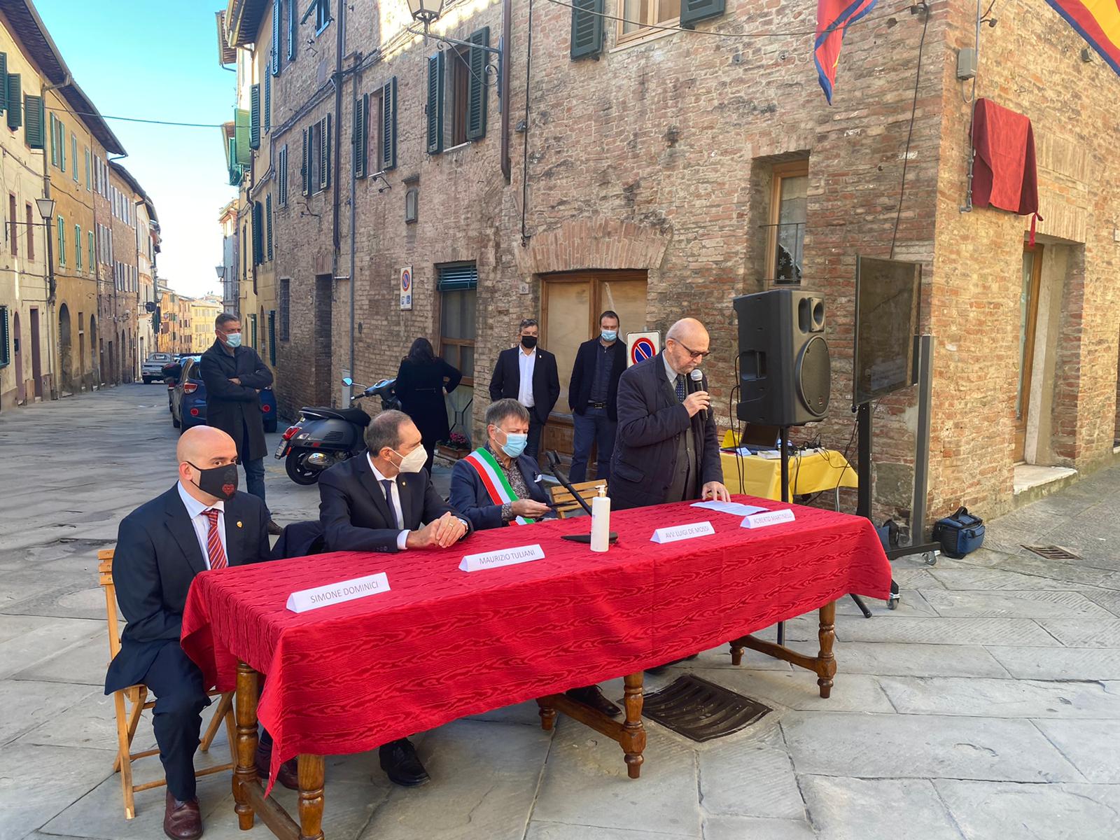 Al taglio del nastro ha partecipato il sindaco di Siena Luigi De Mossi, l’onorando priore della Chiocciola Maurizio Tuliani, il presidente della sezione dei Piccoli chiocciolini Simone Dominici, l’ex priore Roberto Martinelli ed i familiari di Zalaffi.