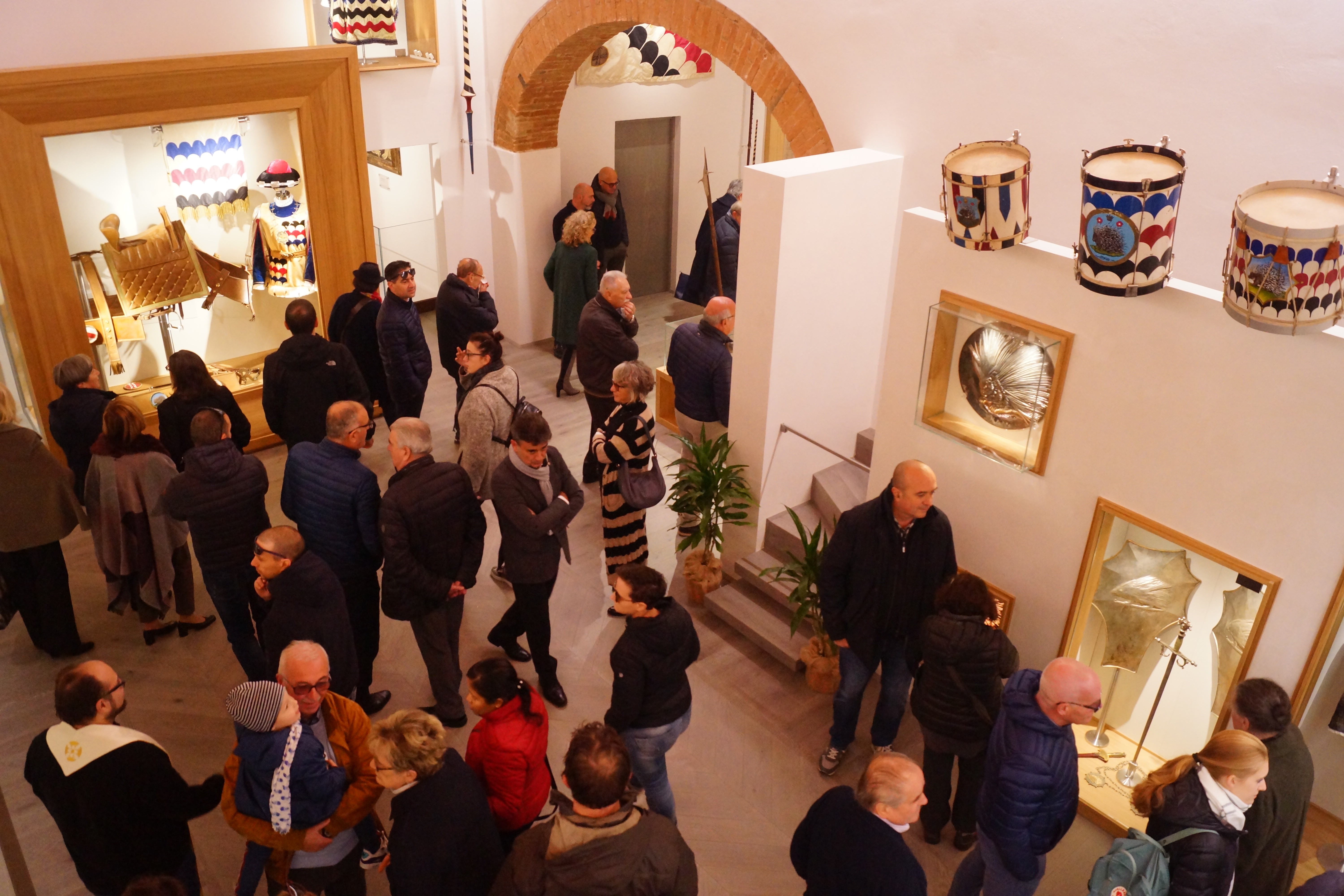 La Contrada Sovrana dell’Istrice inaugura oggi i nuovi spazi museali di Palazzo Pieri Nerli, completando così un lungo processo di studi e di lavori iniziato nel 2008, quando furono acquistati i locali e la corte interna al piano terreno dell’antico edificio in via Camollia. I nuovi ambienti espositivi affiancano quelli già esistenti nella Sede storica di Palazzo Chigi, consentendo così di ovviare al problema della mancanza di idonei spazi espositivi per drappelloni, monture, opere d’arte, oggetti di varia natura dal grande valore storico e testimoniale.