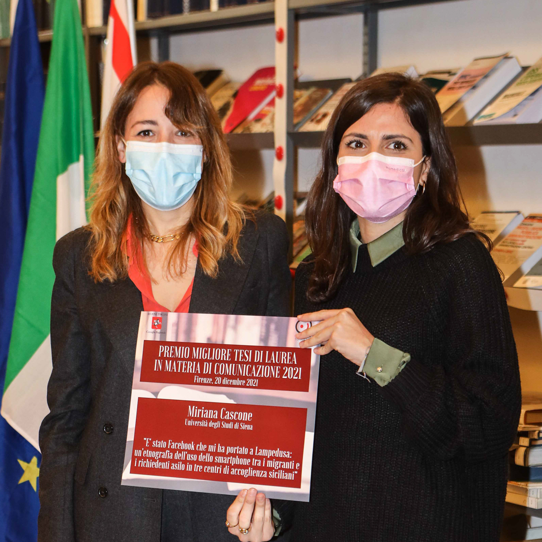 Anche quest’anno arriva un importante riconoscimento agli studi in comunicazione dell’Università di Siena. Il premio del Comitato Regionale per le Comunicazioni della Toscana (Corecom) per la migliore tesi di laurea magistrale in comunicazione, giunto alla quinta edizione, è stato assegnato ad un laureata dell’Università di Siena, Miriana Cascone, per la tesi dal titolo “È stato Facebook che mi ha portato a Lampedusa. Un’etnografia dell’uso dello smartphone tra i migranti e i richiedenti asilo in tre centri di accoglienza italiani”.