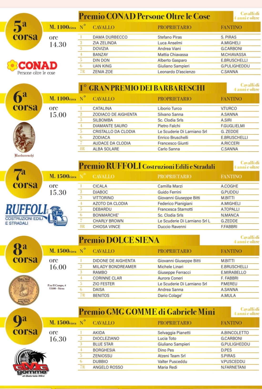 Le corse andranno in onda su Siena TV lunedì alle ore 15 e 22.45.