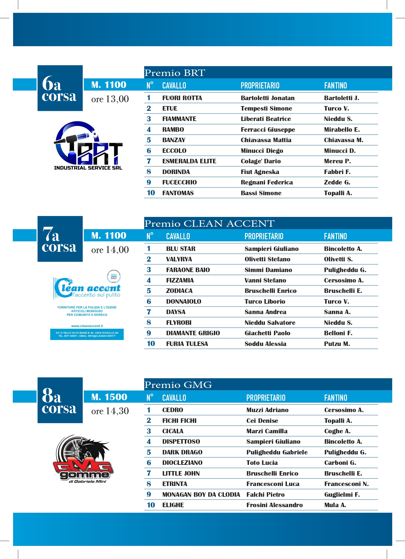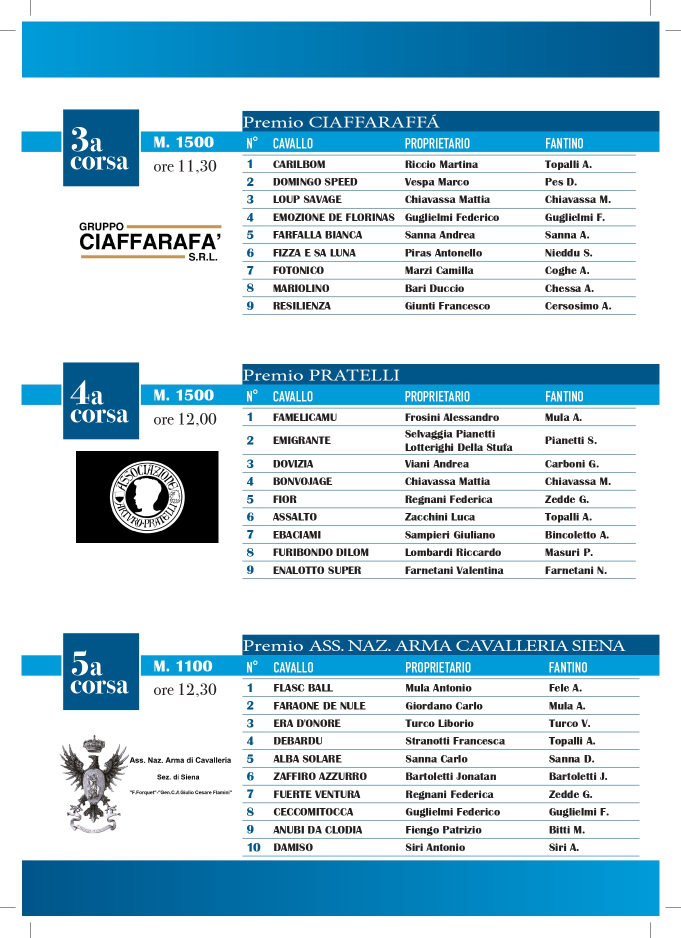 Alle ore 13.30 è prevista una pausa; le corse riprenderanno alle ore 14.00.